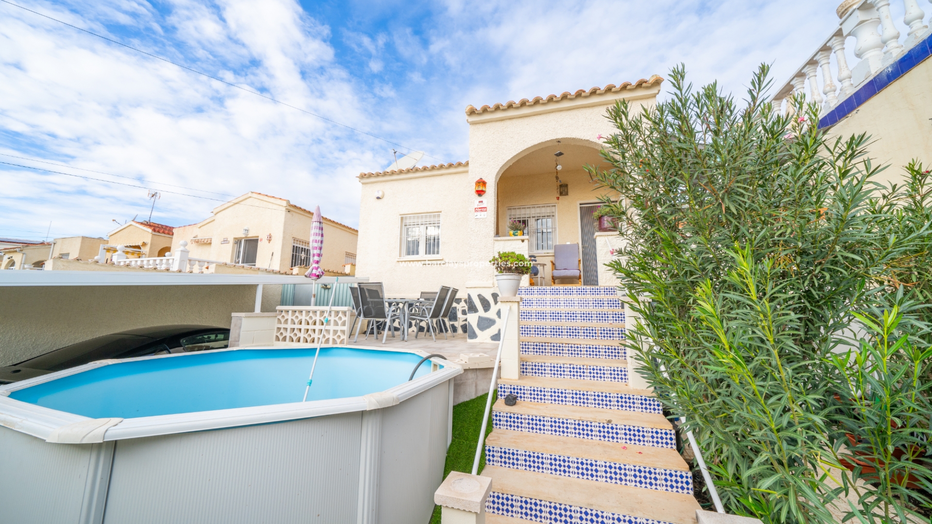 De woning biedt een verhoogd terras bij de ingang, een carport, een bovengronds privé zwembad, ruime opslagruimtes en een buitenkeuken - perfect voor ✅ buitenleven en entertainment.