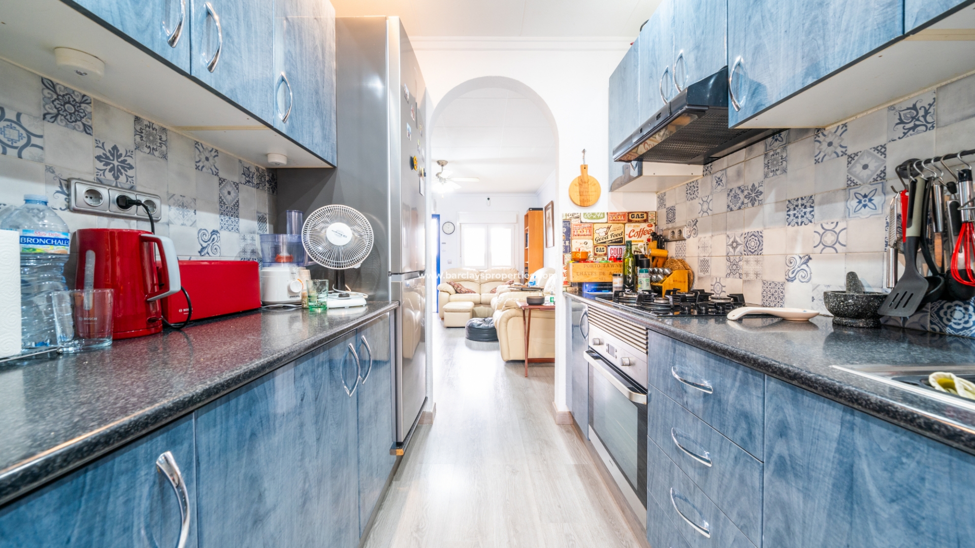 Binnen is de woonkamer uitgerust met laminaatvloeren en airconditioning, wat zorgt voor een gezellige sfeer. De gerenoveerde keuken heeft een gaskookplaat, koelkast, wasmachine en loopt door naar de bijkeuken met toegang tot de achtertuin. De gerenoveerde badkamer heeft een douche, toilet en een wastafelmeubel.