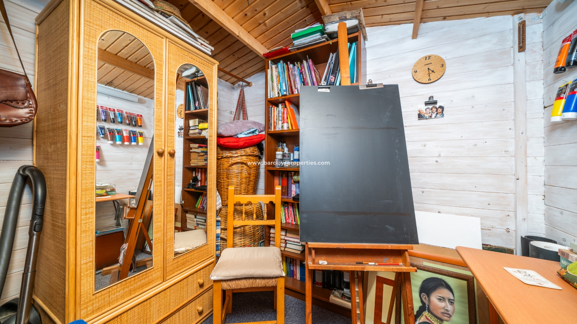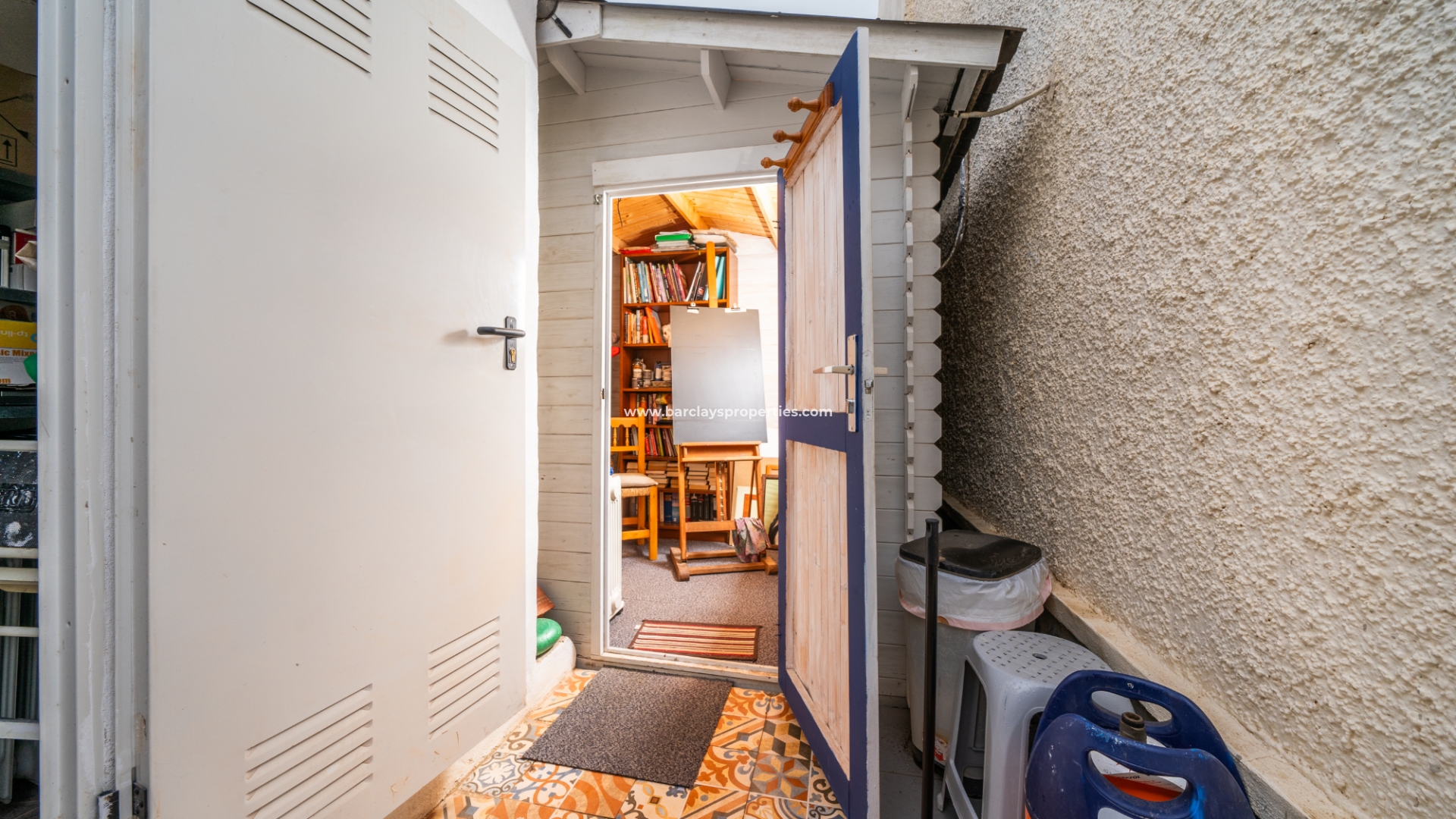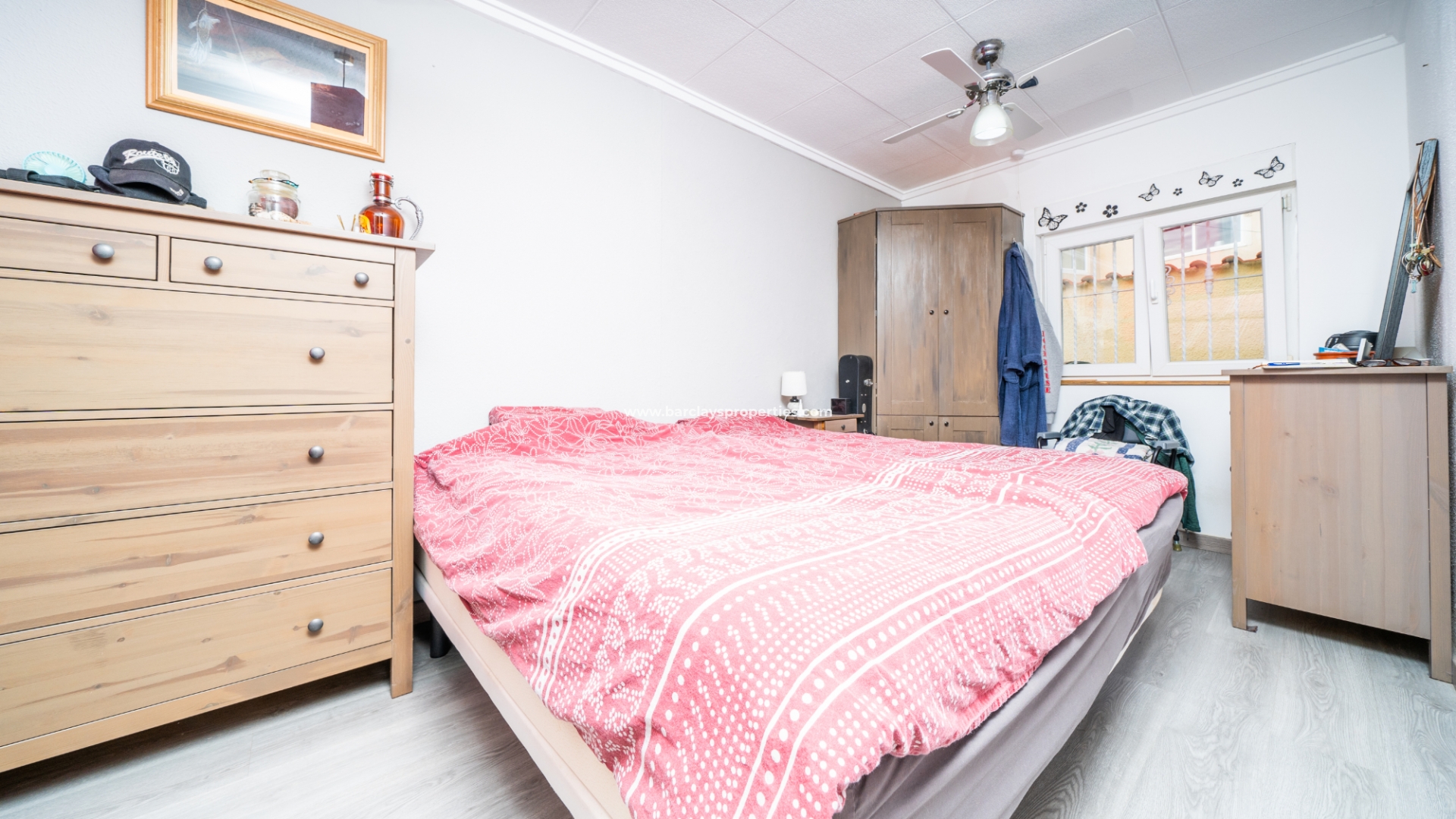 Beide slaapkamers zijn comfortabel ingericht, waarbij de eerste is vergroot en is voorzien van inbouwkasten en een plafondventilator, terwijl de tweede een tweepersoonskamer is met vergelijkbare kenmerken. ✅ Dubbelglasramen verbeteren de energie-efficiëntie en geluidsisolatie. Extra opslagruimte wordt geboden door een schuur en een houten schuur, die momenteel als hobbyruimte met airconditioning wordt gebruikt voor extra comfort. Daarnaast zijn er aan beide zijden van de villa nog twee opslagruimtes.