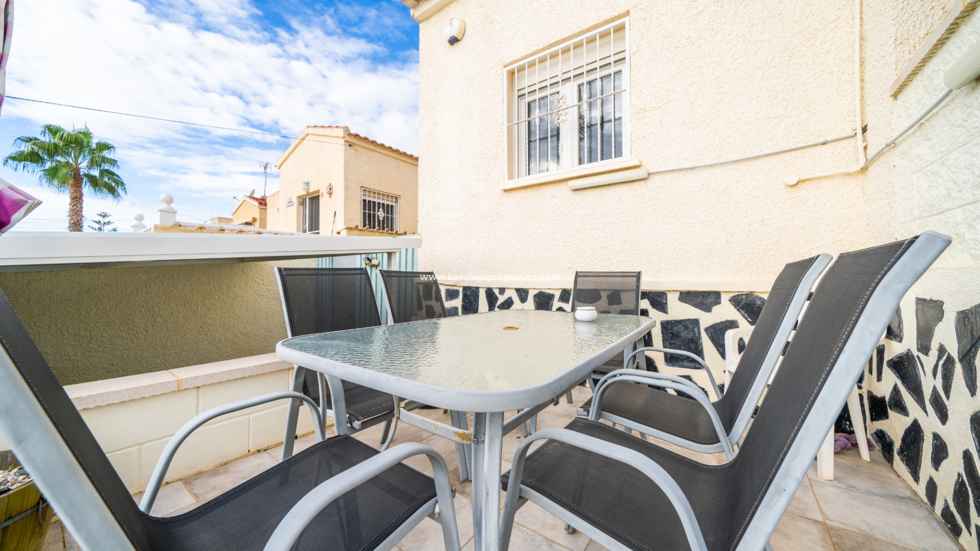 Wij presenteren deze prachtige, uitgebreide vrijstaande villa in Urb. La Marina. De woning beschikt over twee slaapkamers en één badkamer op een perceel van 207 m². De oostelijke oriëntatie zorgt voor veel natuurlijk licht gedurende de dag. De villa is gunstig gelegen, op slechts 3 km van het strand, 25 km van de luchthaven, 1 km van voorzieningen en 10 km van een golfbaan.