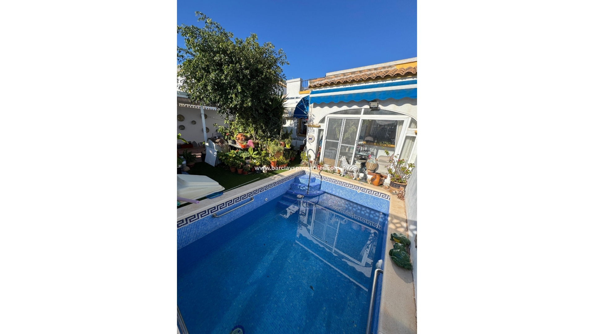 Wij presenteren deze charmante quad-eigendom, model "Julia", in de urbanisatie La Marina, een ideale locatie voor uw droomhuis in Spanje. Het beschikt over twee gemeenschappelijke zwembaden naast een eigen privézwembad 4x2. Het huis is gunstig gelegen op slechts 10 minuten lopen van lokale voorzieningen, en ligt op 3 kilometer van de stranden van het dorp La Marina en op 25 minuten rijden van de luchthaven van Alicante.