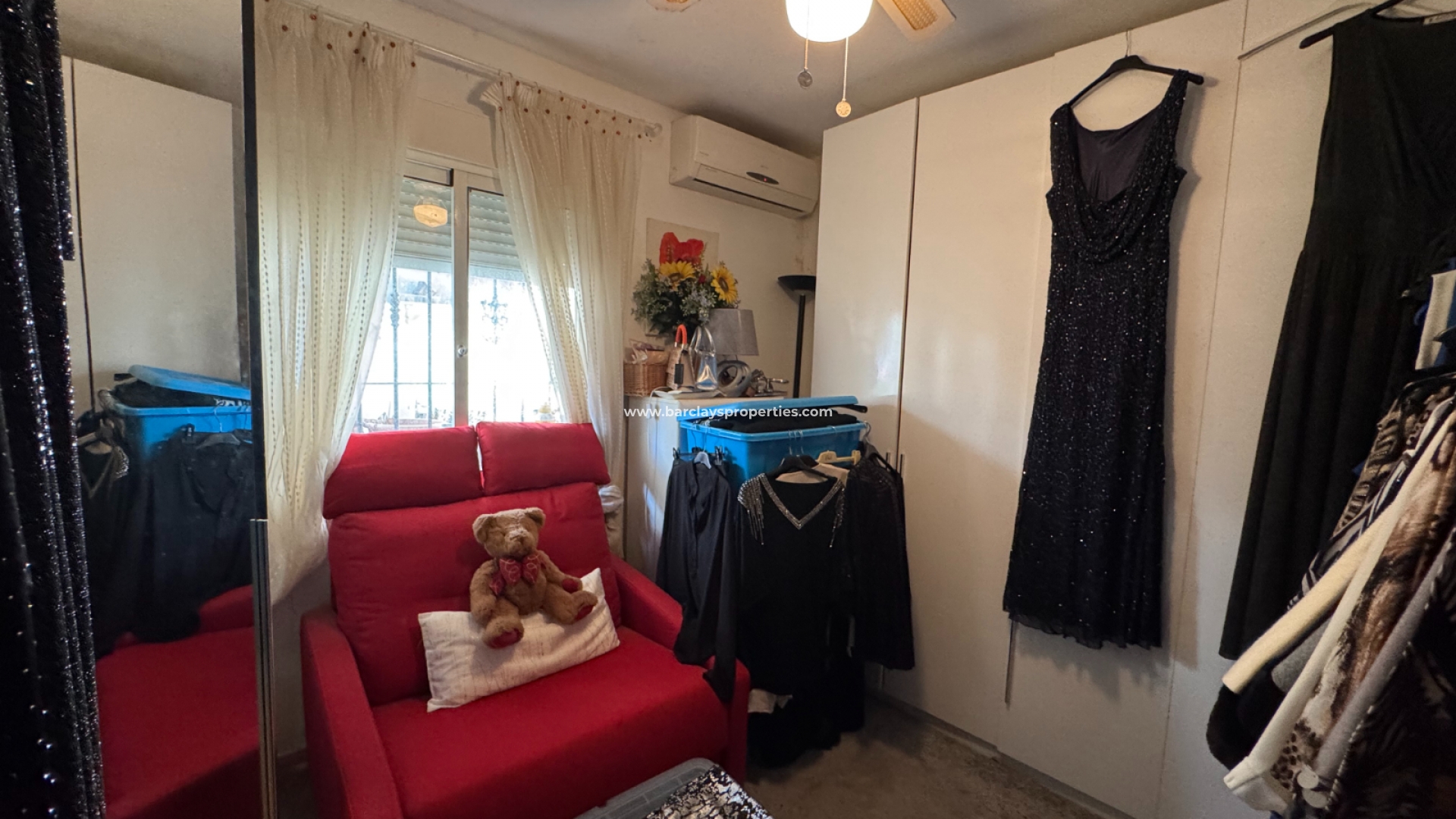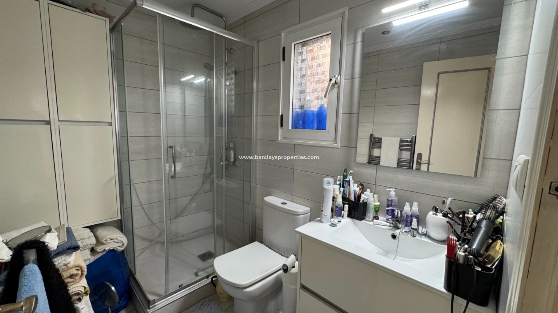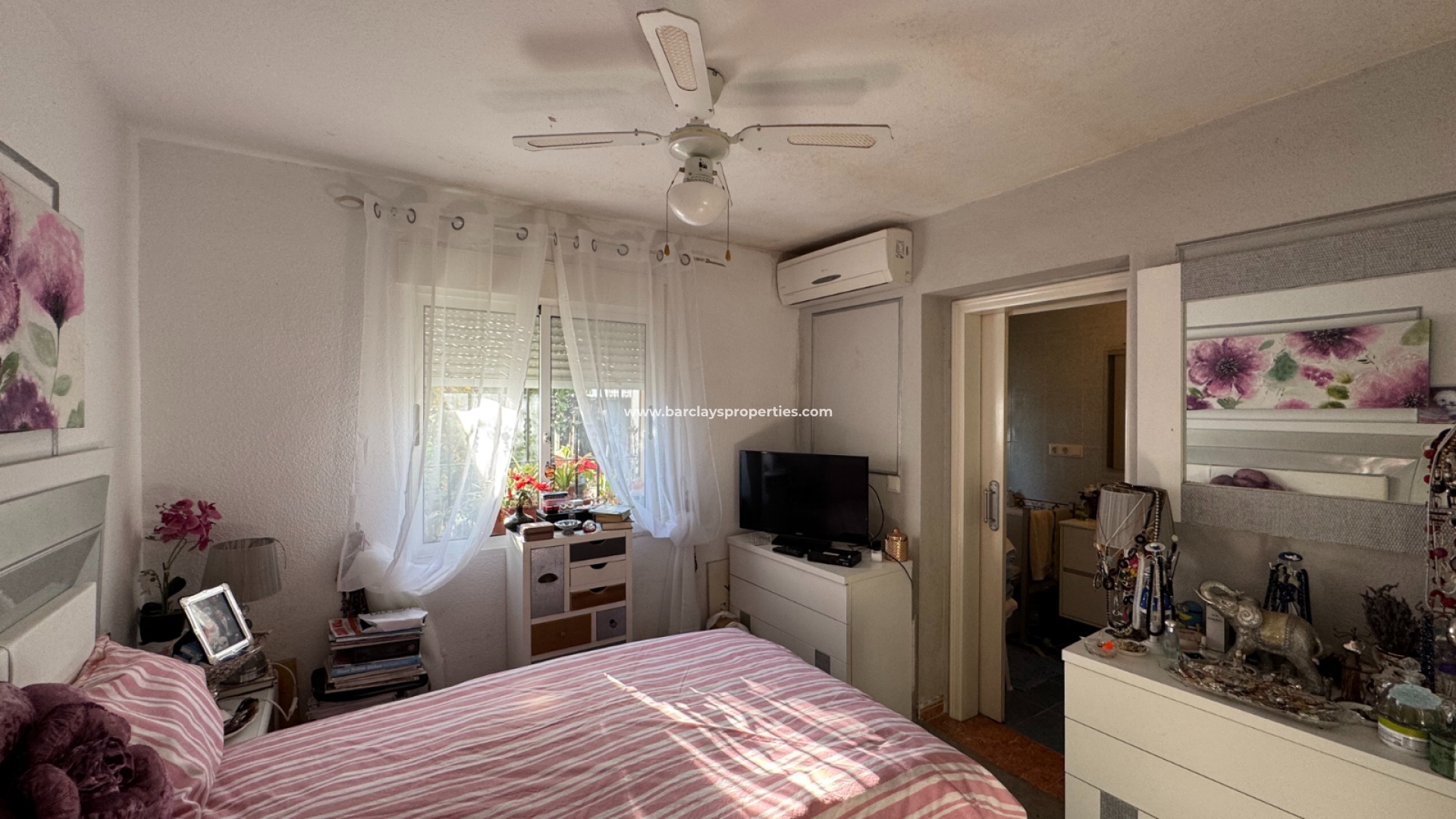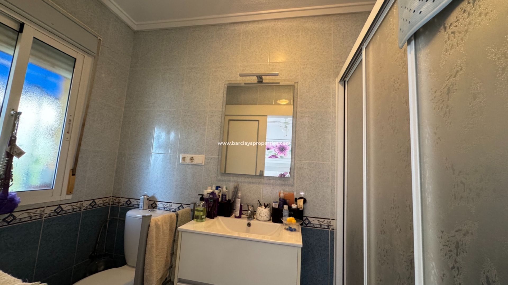 De hoofdslaapkamer heeft inbouwkasten, airconditioning en een plafondventilator. De en-suite badkamer in de hoofdslaapkamer is voorzien van een moderne douche, een wastafelmeubel en een wc. De tweede tweepersoonsslaapkamer heeft inbouwkasten, airconditioning en een plafondventilator, met schuifdeuren die uitkomen op de tuin. De derde tweepersoonsslaapkamer heeft ook airconditioning en een plafondventilator. De badkamer is voorzien van een hoekein douche en een wastafelmeubel en heeft een verwarmde handdoekradiator.