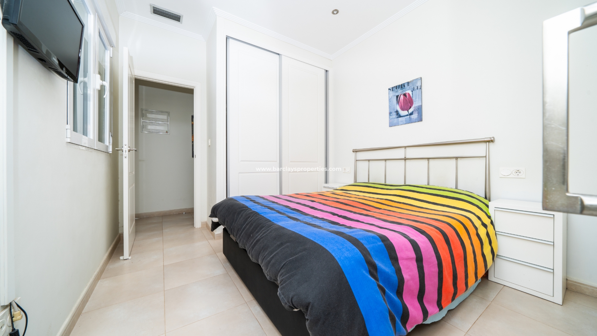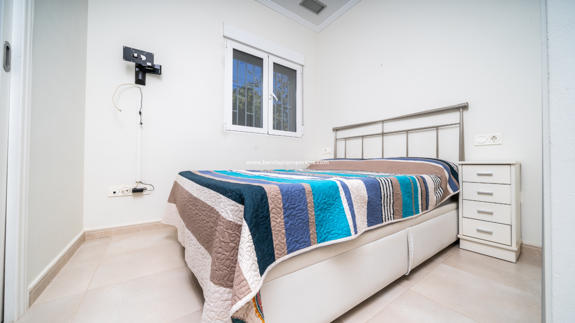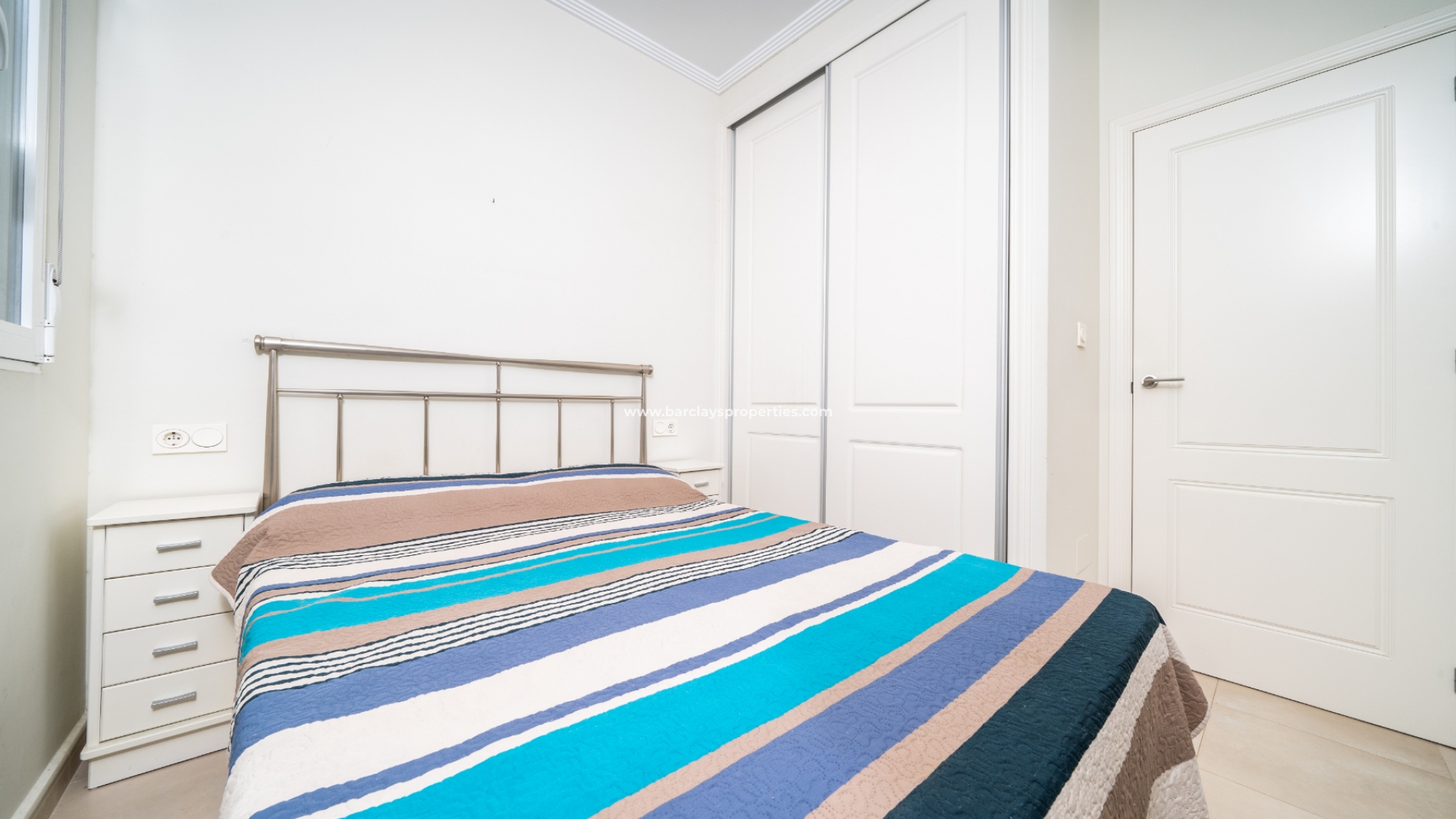 De villa beschikt over twee ruime tweepersoons slaapkamers, elk met ingebouwde kasten en een ensuite badkamer. De master slaapkamer heeft een inloopdouche, bidet en wastafel, terwijl de ensuite badkamer van de tweede slaapkamer een douche en wastafel heeft.