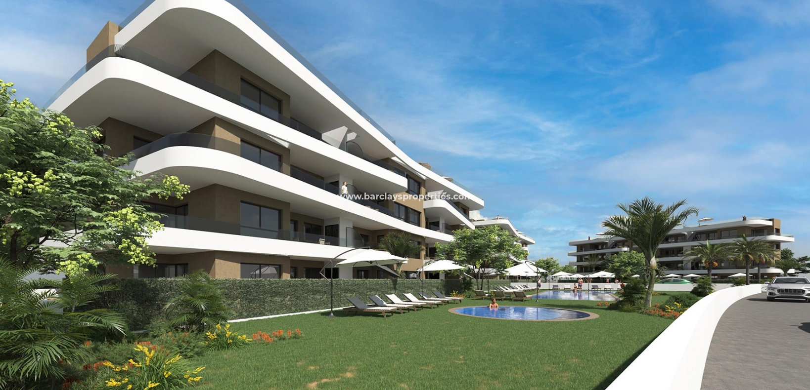 Deze nieuwbouwappartementen te koop in Orihuela Costa herdefiniëren modern mediterraan wonen. Met 2 slaapkamers, 2 badkamers en een ruim oppervlak van 72 m² zijn deze woningen perfect voor stellen, gezinnen of investeerders. Gelegen op slechts 2 km van het strand en 500 meter van voorzieningen, bieden de appartementen een perfecte mix van rust en gemak.