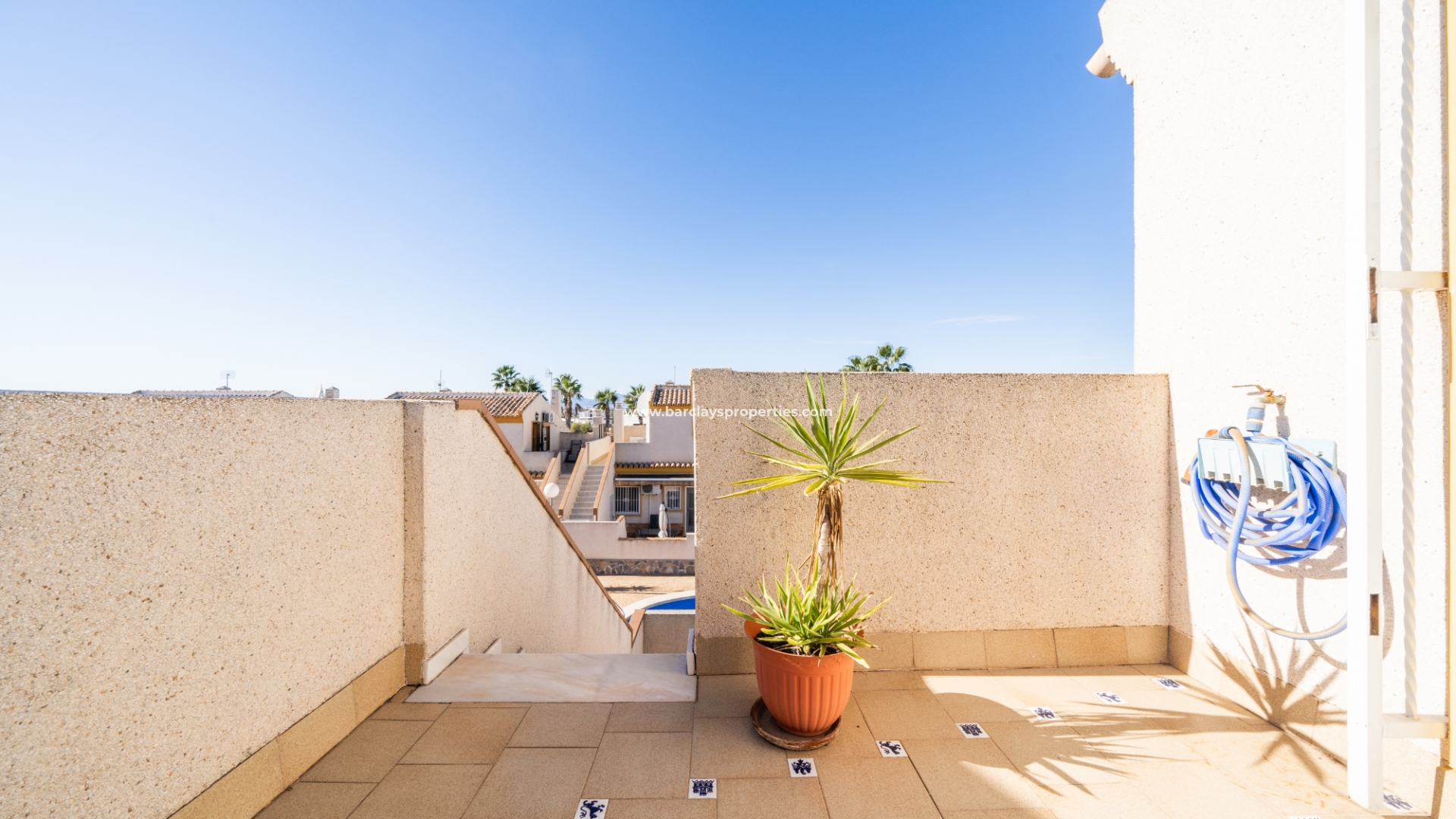Gelegen in ✅ een privé gemeenschap van 16 woningen, kunnen de bewoners genieten van de voordelen van een gemeenschappelijk zwembad, perfect voor ontspanning en sociaal contact. Met een handige parkeerplaats met schuifpoort, een rustige locatie op slechts 7 minuten lopen van winkels, restaurants, banken, supermarkten, opticiens, dokterspraktijken en alle voorzieningen, en zowel voor- als achterterrassen die de hele dag zon bieden, biedt dit huis zowel comfort als praktisch gemak. De ideale locatie: het lokale strand is slechts 5 minuten met de auto en de dichtstbijzijnde luchthaven voor nationale en internationale verbindingen is 25 minuten rijden (Alicante-Elche).