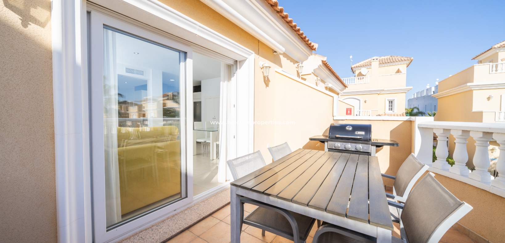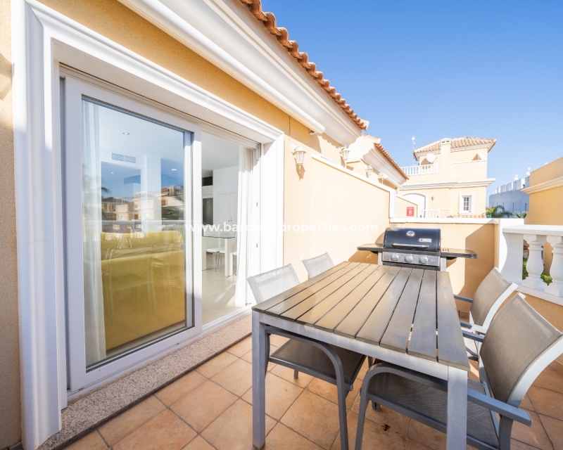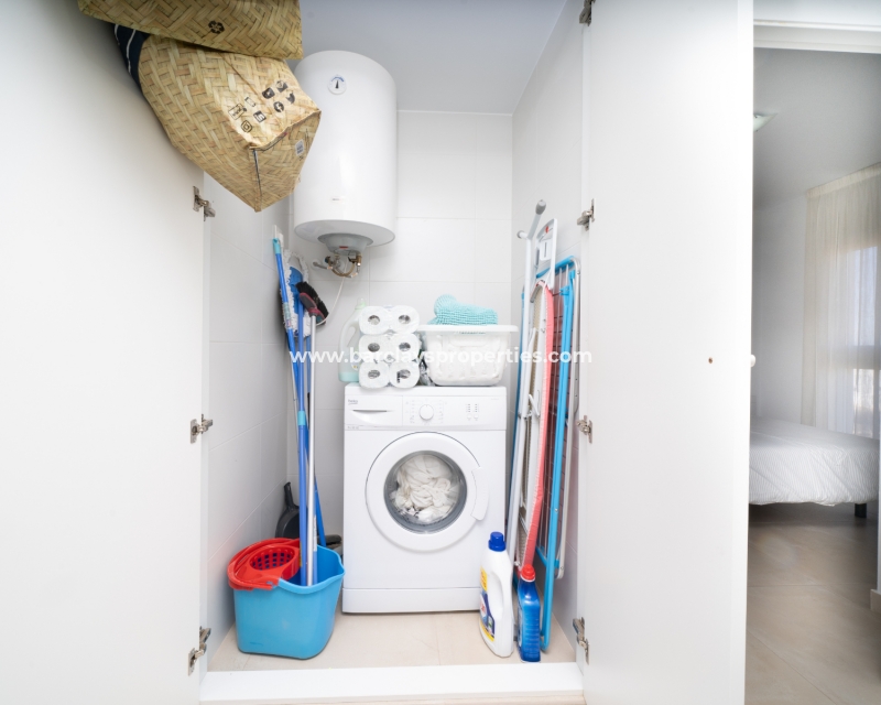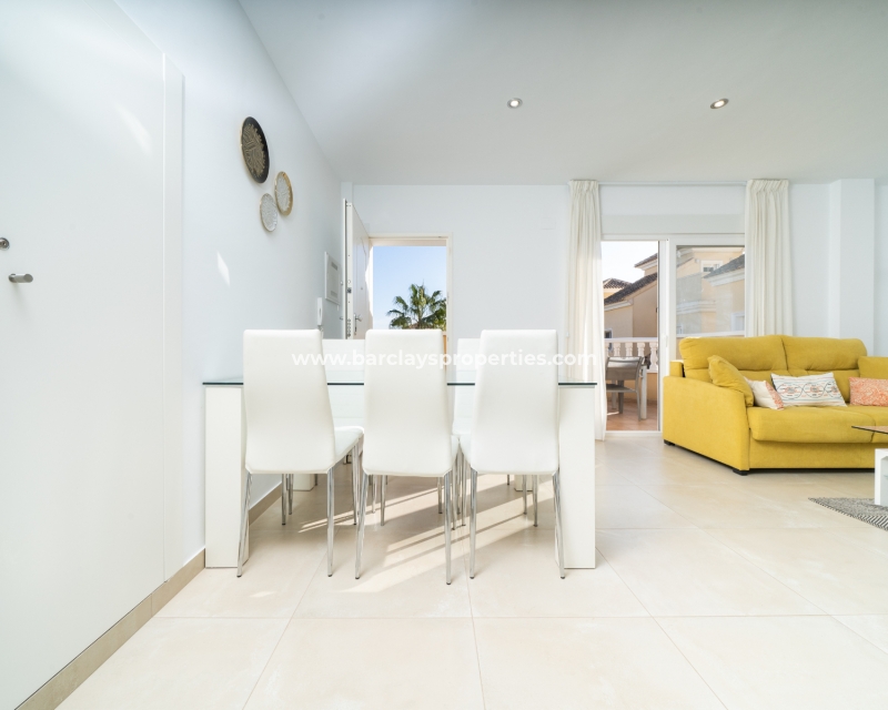 Dit moderne appartement op de bovenste verdieping in Urb. La Marina, gelegen in de gewilde privé gemeenschap "Residencial Villa Sol", is een zeldzame en opwindende vondst. De afgesloten gemeenschap biedt een ✅prachtig gemeenschappelijk zwembad met waterval en aangrenzend kinderbad, goed onderhouden tuinen en een ✅veilige ingang met toegewezen parkeerplaats, waardoor het een uitstekende keuze is voor zowel vakanties als permanent wonen.