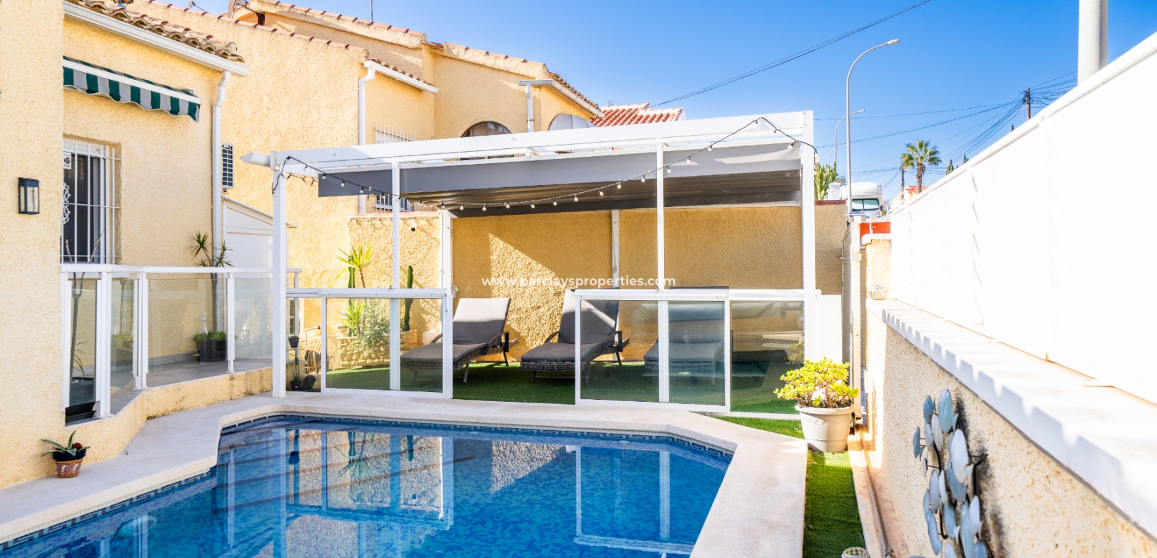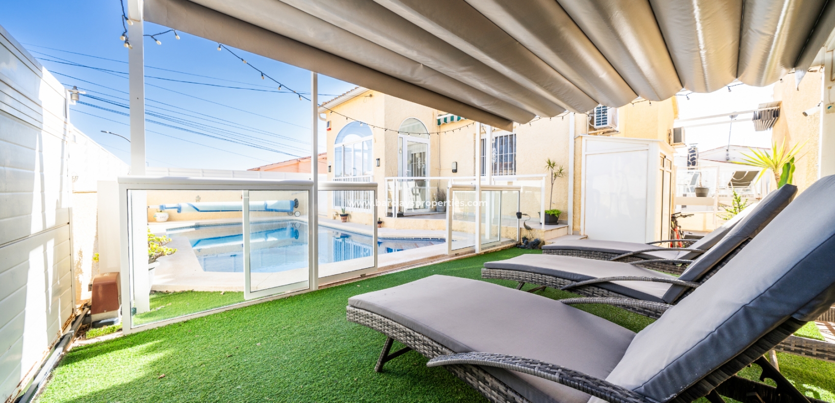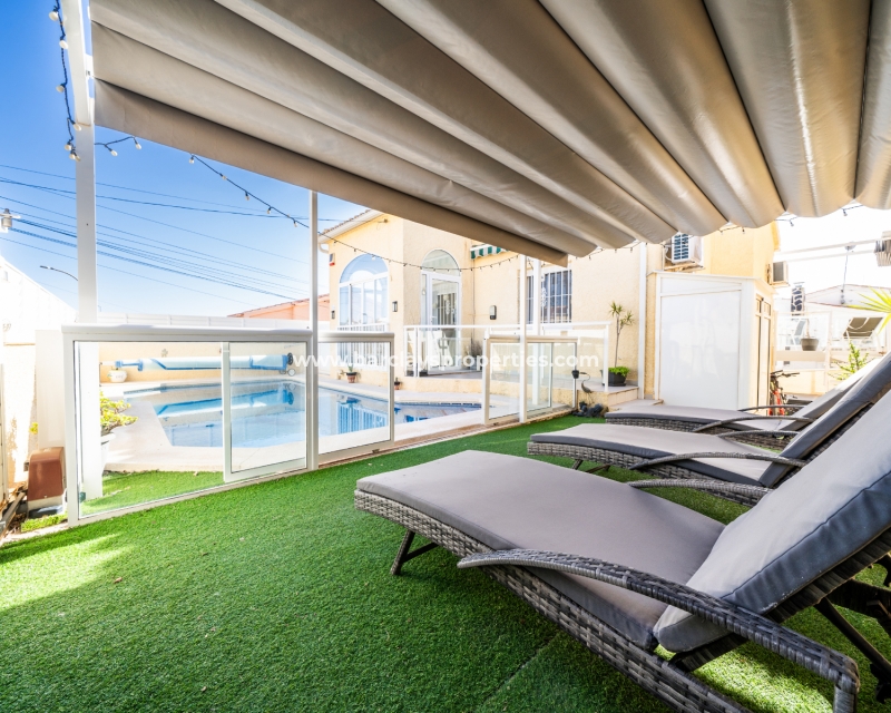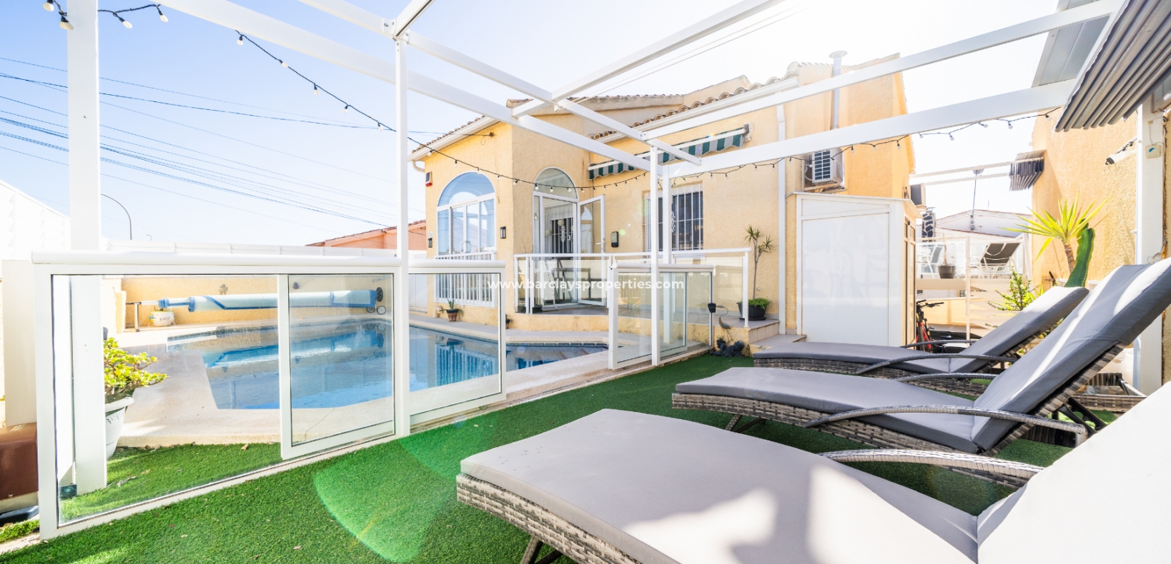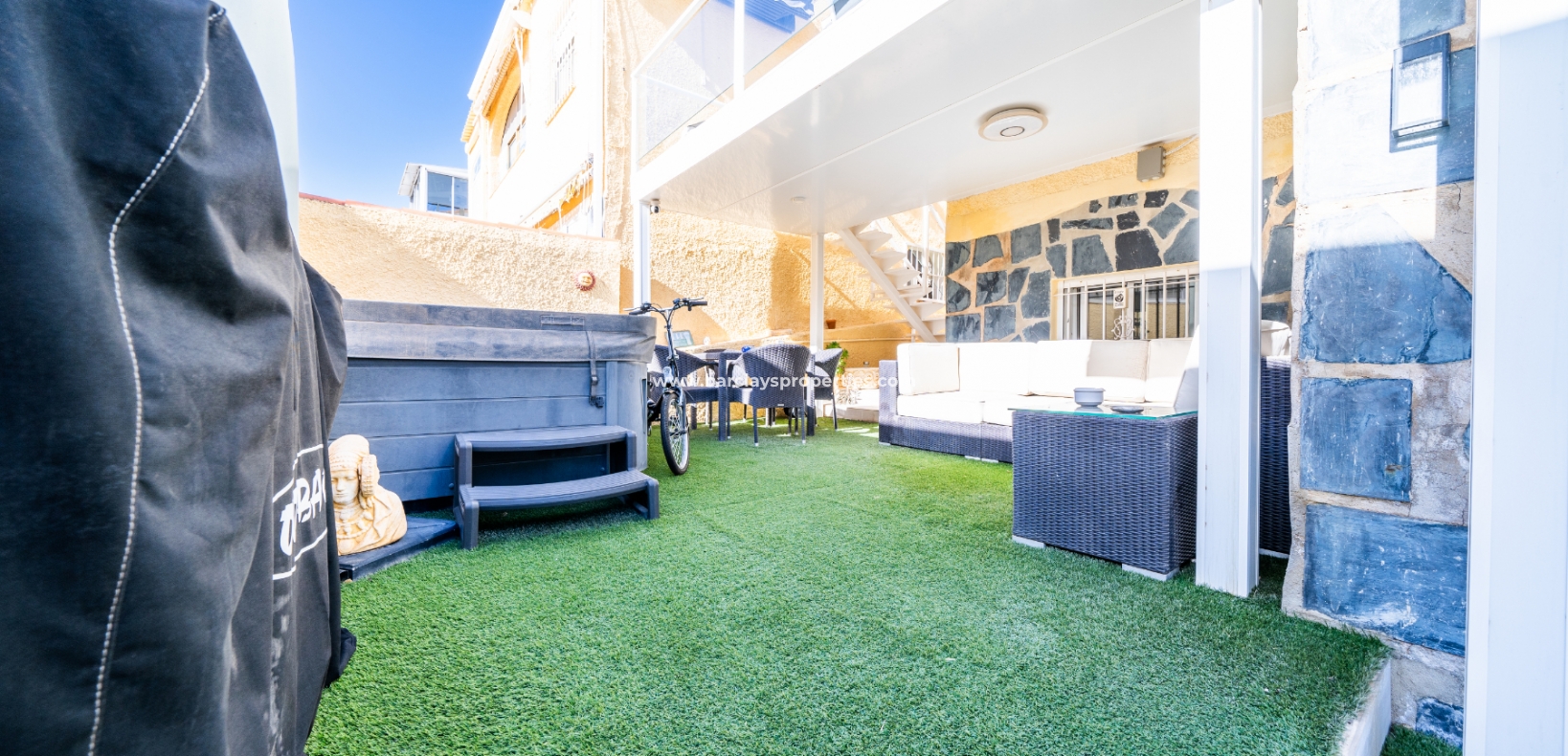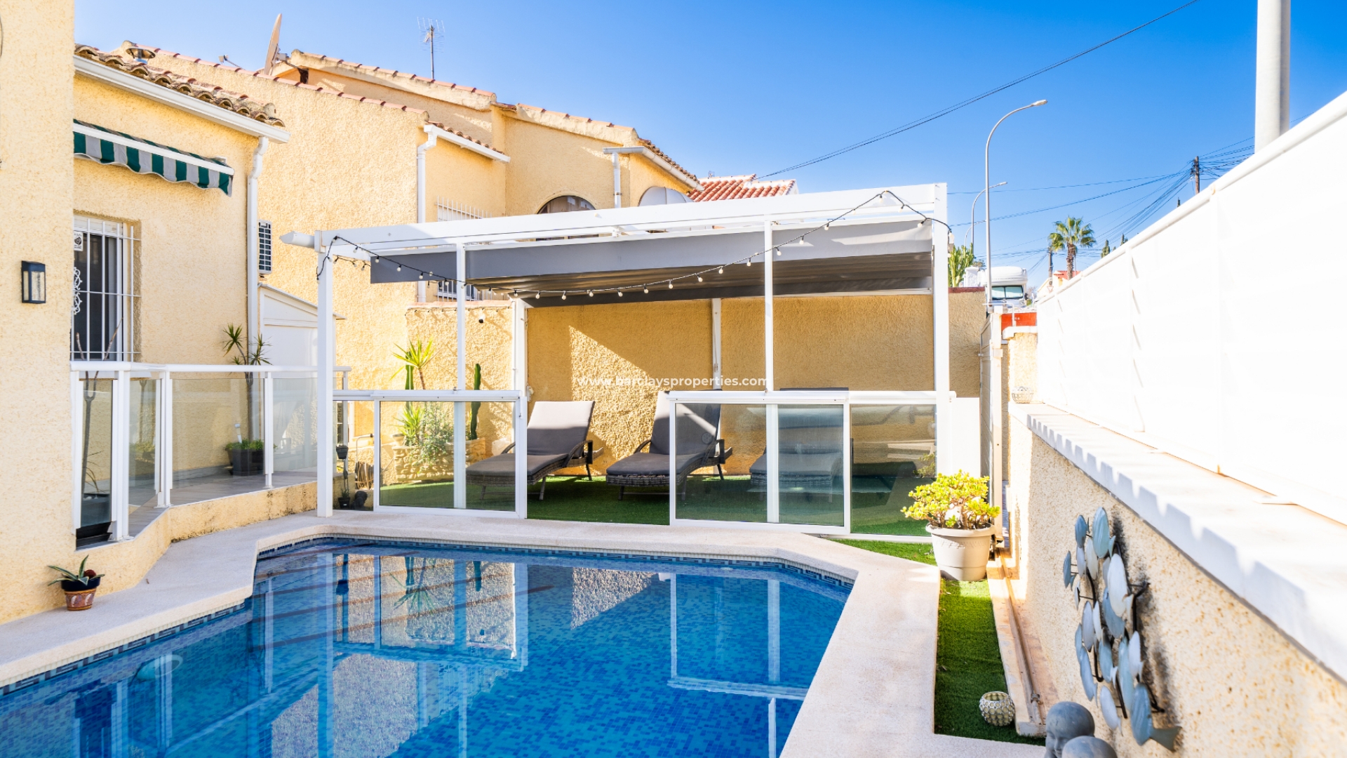 Deze uitgebreide vrijstaande villa in Urb. La Marina biedt ruime woonruimtes met moderne upgrades en uitstekende voorzieningen, waardoor het een veelzijdig pand is voor zowel gezinsleven als het ontvangen van gasten. De villa beschikt over ✅een privé verwarmd zwembad van 7 x 3 meter en een luxueuze jacuzzi voor zes personen, die de perfecte plekken voor ontspanning bieden. De villa is gunstig gelegen, op slechts 10 minuten lopen van het Consum-plein, 5 minuten met de auto van de prachtige stranden van “Playa de La Marina” en Playa del Pinet, en slechts 25 minuten van de luchthaven Alicante-Elche via de nationale route N-332.