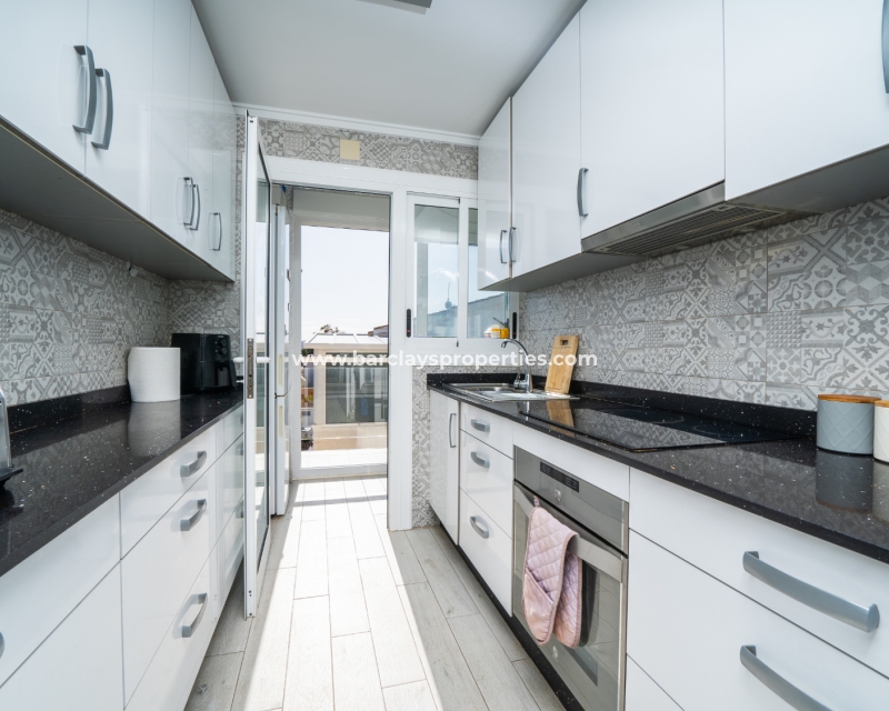 Welkom in het charmante Urb. La Marina in San Fulgencio, Alicante – een oase die moeiteloos de rust van een kustresort combineert met het gemak van moderne voorzieningen. Gelegen in het zuiden van de Costa Blanca, is La Marina slechts 3 km van de zandstranden van La Marina en El Pinet, die zich over kilometers uitstrekken en Santa Pola met Guardamar verbinden. Deze idyllische locatie brengt de bewoners slechts 25 minuten van de luchthaven van Alicante en slechts 10 km van de dichtstbijzijnde golfbaan.