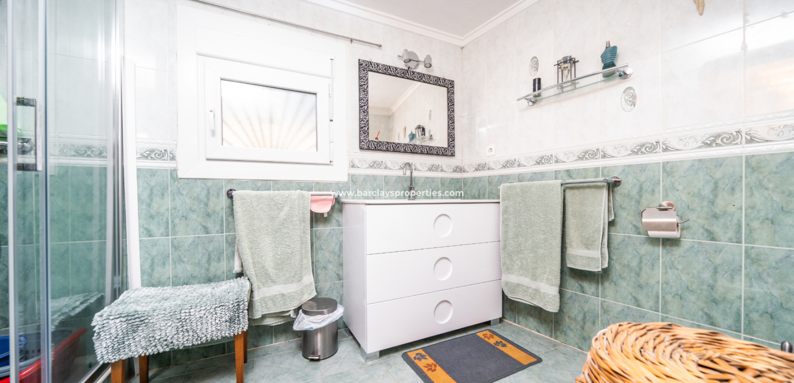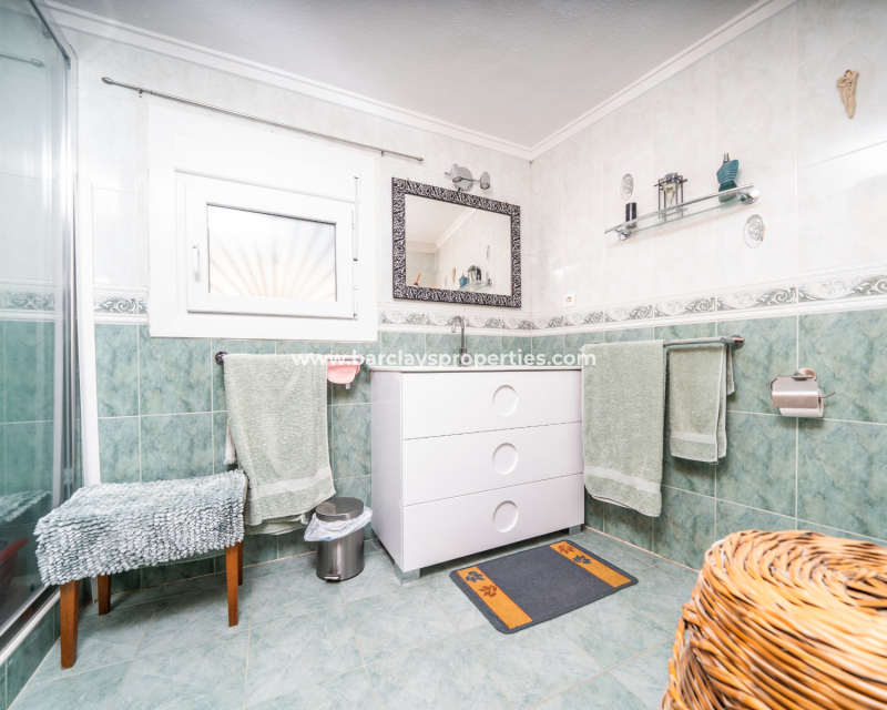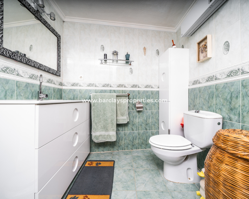 De hoofdbadkamer is onlangs gerenoveerd en voorzien van een wandbrede douche en een stijlvolle wastafel. De eerste slaapkamer is een gezellige tweepersoonskamer met plafondventilatoren, airconditioning en een ruime kledingkast. De master slaapkamer, ontworpen voor comfort, heeft een tweepersoonsbed, plafondventilatoren, airconditioning en een onlangs gerenoveerde en-suite badkamer. De en-suite beschikt over een wandbrede douche met een scherm, een wastafelmeubel en een toilet. Buiten biedt de achtertuin een ontspannende jacuzzi en heeft ruimte om een privézwembad te bouwen.