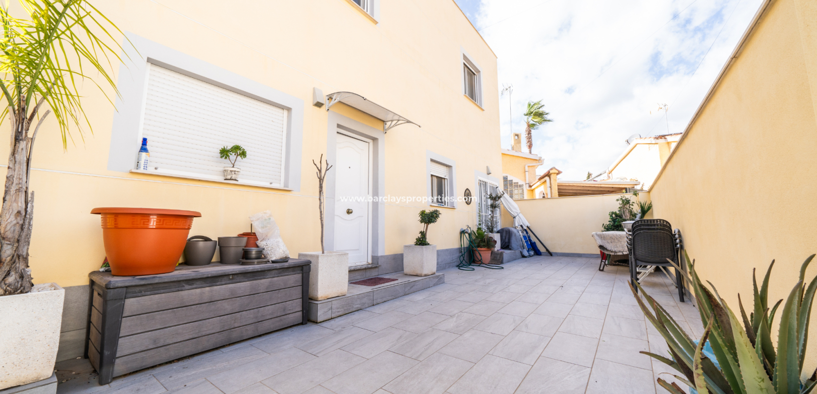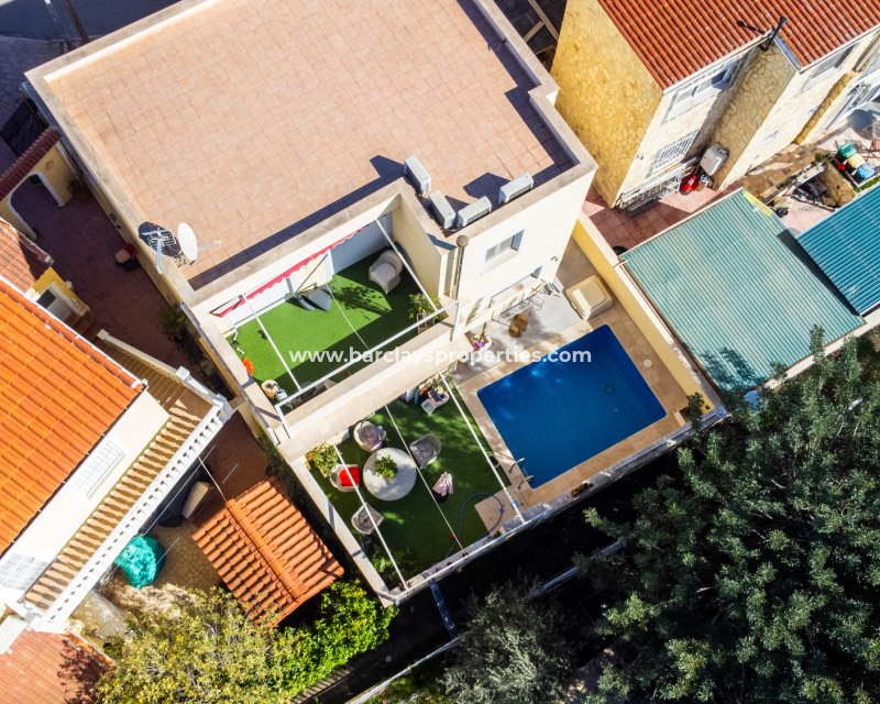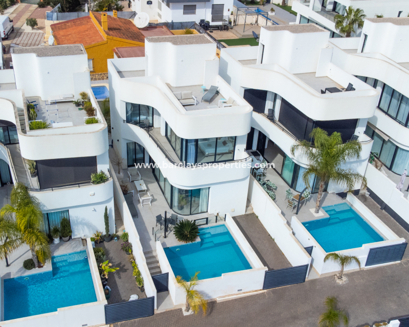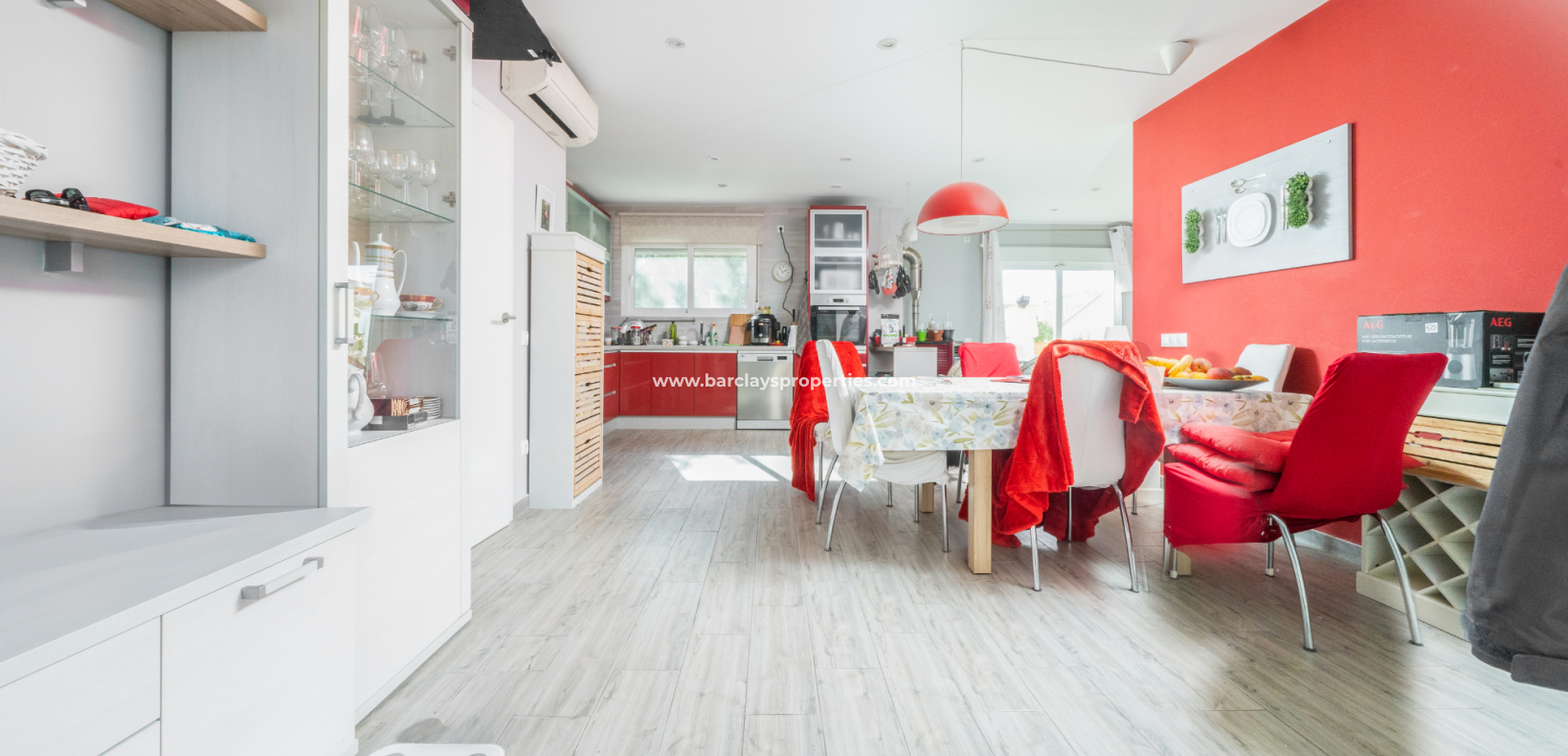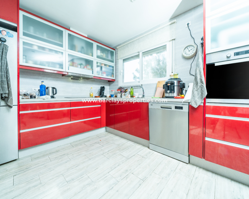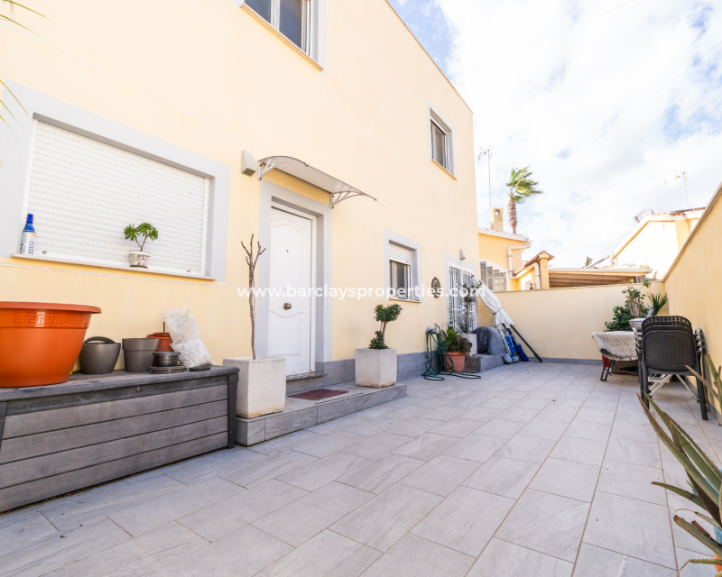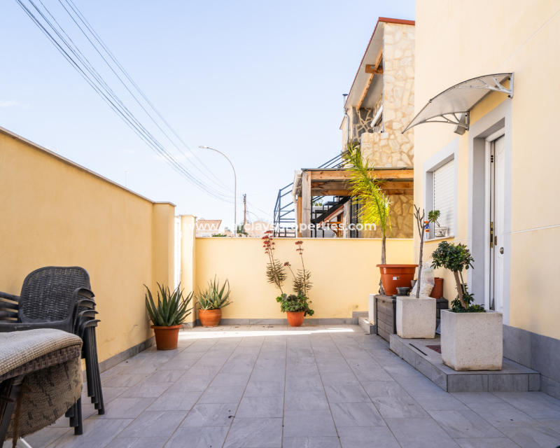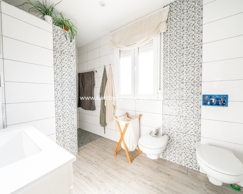Deze prachtig gepresenteerde vrijstaande villa in Urb. La Marina biedt een uitnodigende mix van modern comfort en doordacht design. Uitgebreid en zorgvuldig onderhouden, beschikt het over ➡️ een ruime interieur van ongeveer 155 m² bebouwd (en 130 m² woonoppervlak) en hoogwaardige afwerkingen in het hele huis, wat het ideaal maakt voor wie op zoek is naar een stijlvolle en onderhoudsarme woning in Spanje. De villa ligt op slechts een paar minuten lopen van het dichtstbijzijnde commerciële gebied met een supermarkt, apotheek en een scala aan restaurants en bars, en op slechts 5 minuten rijden van het met een blauwe vlag bekroonde gouden strand van "Playa La Marina".