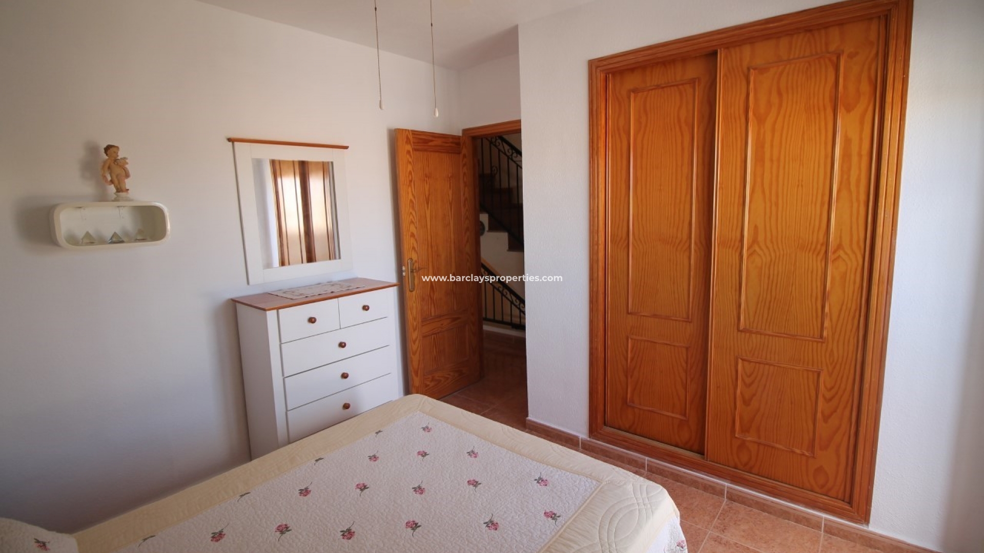 Op de eerste verdieping vinden we nog twee slaapkamers, een met een eigen zonneterras en een badkamer met een groot bad. Een trap leidt vanaf de overloop op de eerste verdieping naar een fantastisch zonneterras met uitzicht op het landschap, de bergen en het gemeenschappelijk zwembad.