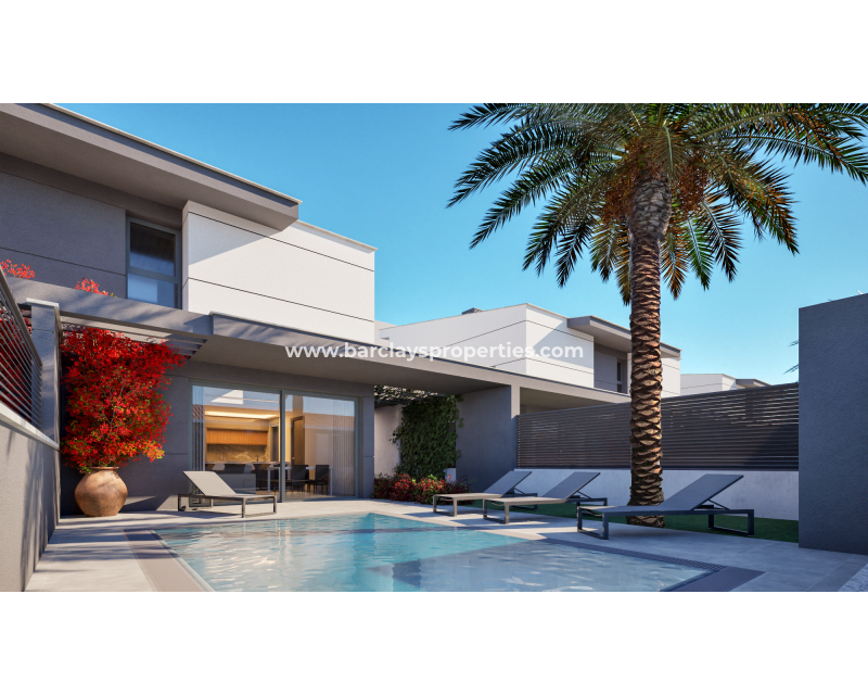 Prachtige nieuwe villa’s met 3 slaapkamers en 3 badkamers te koop in het gewilde Mar Menor-gebied. Deze moderne twee-verdiepingen tellende woningen hebben ➡️ een ruime bebouwing van 128 m² op een perceel van 229 m², compleet met een privézwembad en off-road parkeerplaats. De open keuken en het zonneterras op het dak met een zomerkeuken bieden de ideale ruimtes om van het buitenleven te genieten. Geniet van alle gemakken met zonnepanelen, een aerothermisch watersysteem voor verwarming en de pre-installatie voor airconditioning. ➡️ Gelegen op slechts 150 meter van het strand, 500 meter van lokale voorzieningen en op slechts 42 km van de luchthaven, zijn deze woningen perfect voor zowel ontspanning als investering met een groot verhuurpuntentieel. Versterkte veiligheidsdeur, dubbele beglazing en een garantie van 10 jaar bieden gemoedsrust op een rustige maar toch handige locatie.