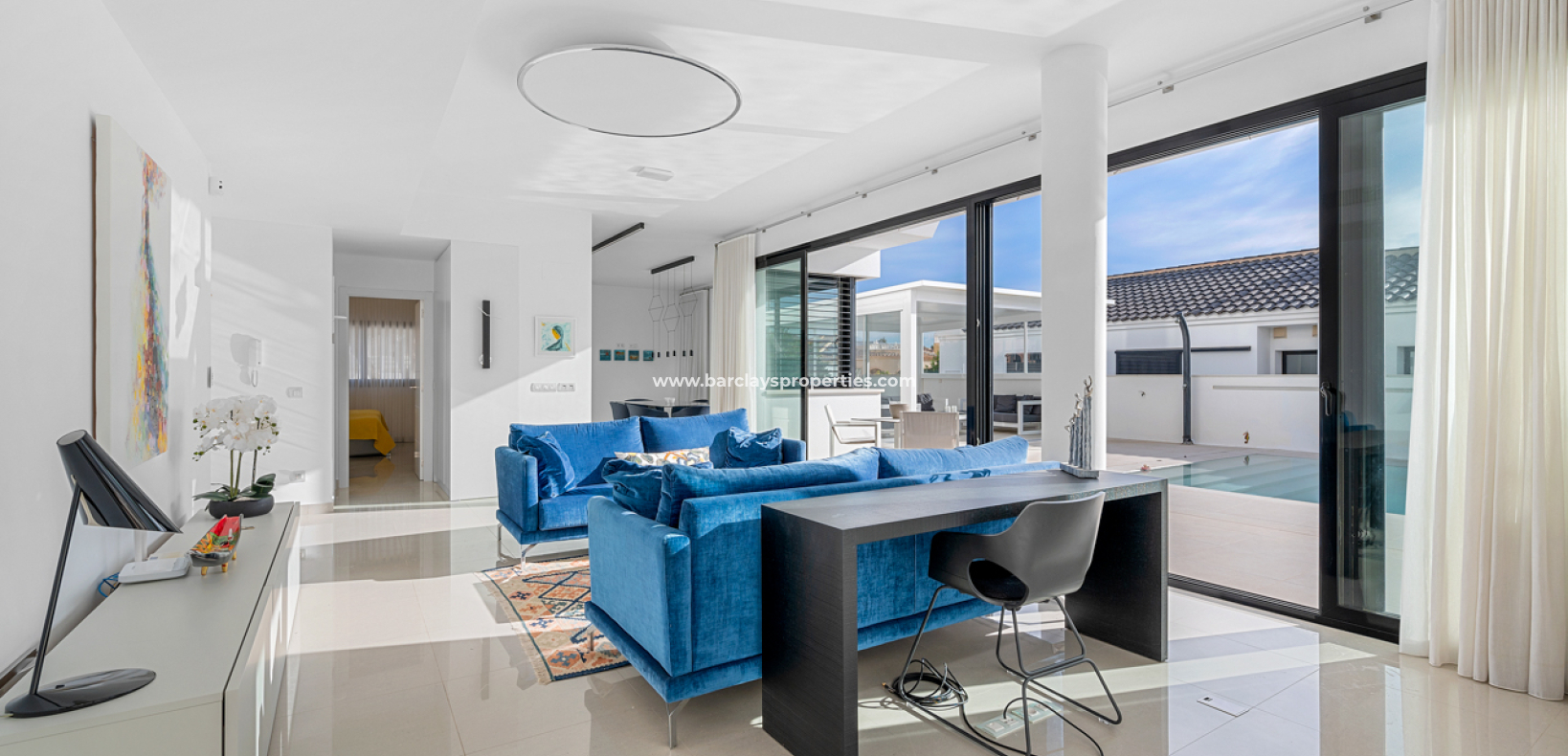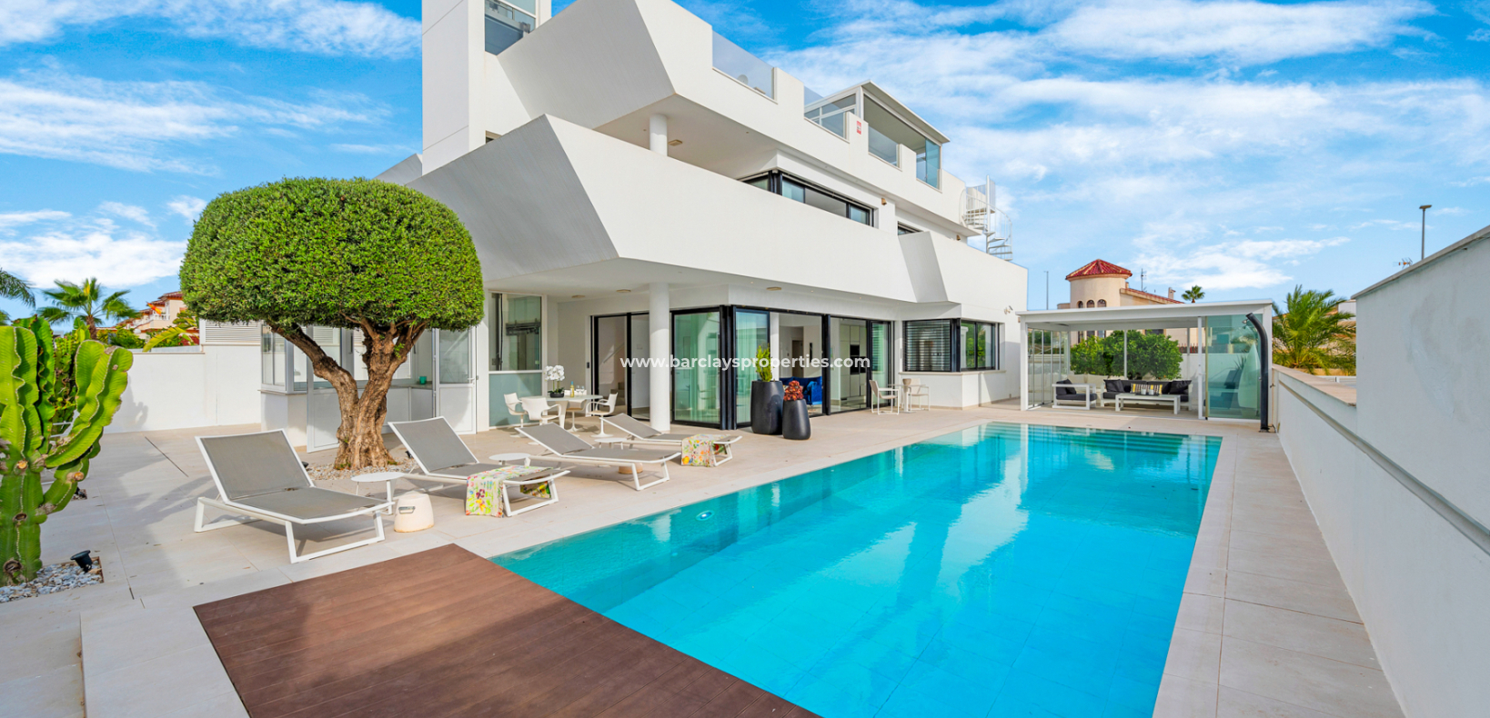 Deze luxe villa te koop in Costa Blanca, La Marina, is een uitzonderlijke gelegenheid voor diegenen die op zoek zijn naar een verfijnde en moderne levensstijl in een van de meest gewilde locaties in Spanje.