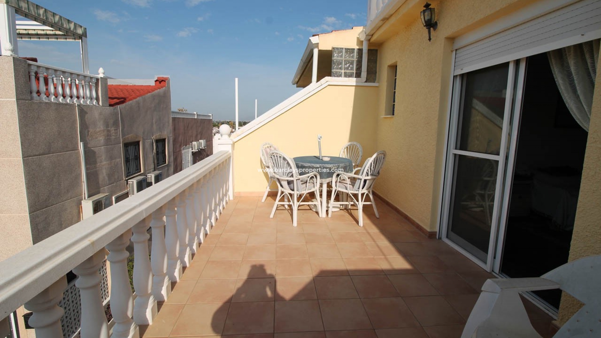 Gelegen tegenover een bewonersplein met voldoende parkeergelegenheid, geeft deze woning toegang via een overdekt zonneterras met een relaxte zithoek en toegang tot de onderbouw die momenteel wordt gebruikt als tweede slaapkamer voor gasten.