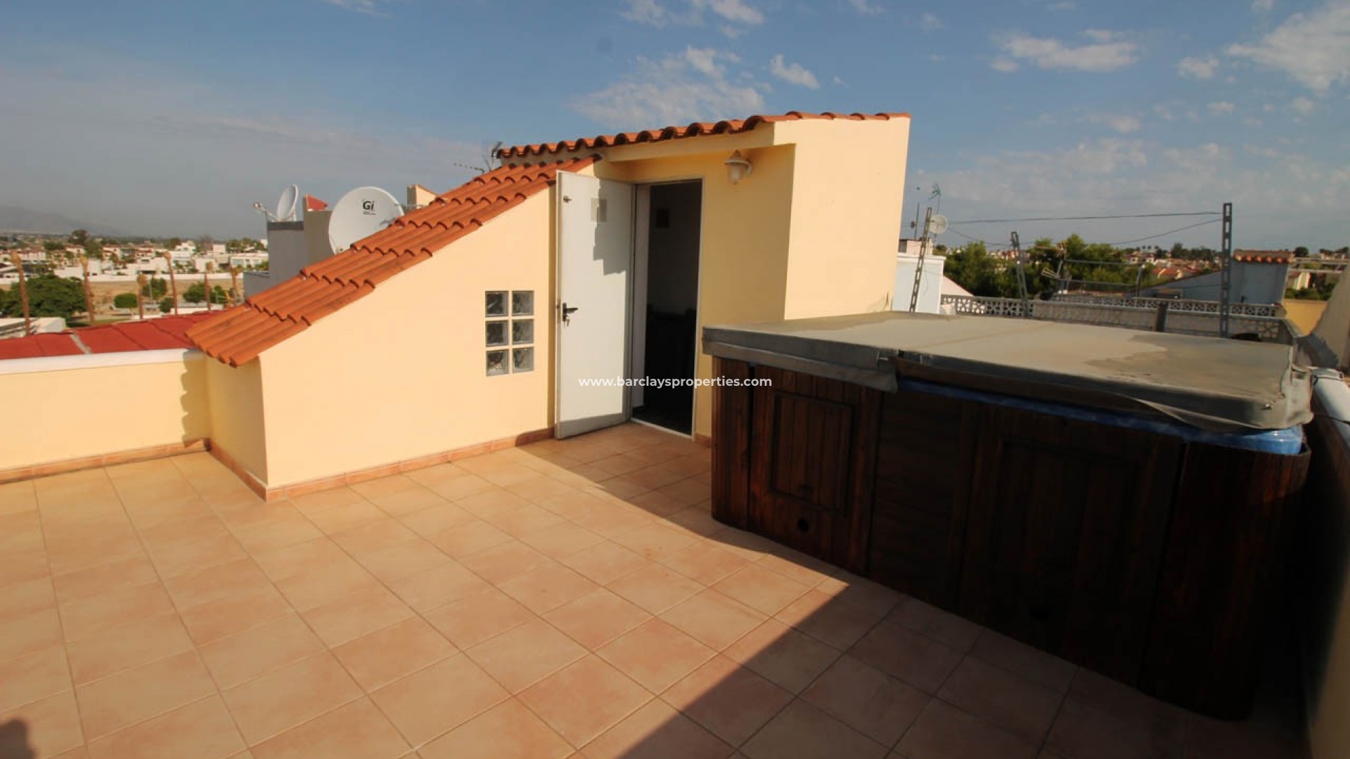 Deze woning heeft een groot zonneterras met een jacuzzi en een prachtig uitzicht op het platteland.