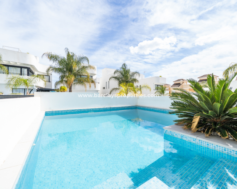 Gelegen in Urbanisatie La Marina, biedt deze prachtige, moderne vrijstaande “Nimbus” villa met 3 slaapkamers en 3 badkamers stijlvol wonen met gemak binnen handbereik. Slechts 10 minuten lopen van voorzieningen en een korte rit van vijf minuten naar het strand, het is perfect gepositioneerd voor zowel ontspanning als dagelijks gemak, wat het de perfecte permanente woning of luxe vakantiehuis maakt.