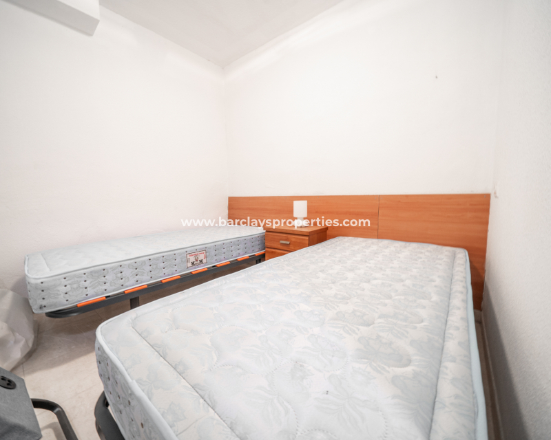 De woning is westelijk georiënteerd en profiteert van recente renovaties, waaronder nieuwe betegeling en een nieuw geplaatste voordeur. De begane grond bestaat uit een lichte woon- en eetkamer met ➡️ geïntegreerde airconditioning, een moderne badkamer met douche, toilet en wastafel. De keuken is uitgerust met elektrische apparatuur en geschikt voor dagelijks gebruik, met een toegangsdeur naar de zijtuin. De eerste slaapkamer is een comfortabele tweepersoonskamer en maakt de begane grond van deze villa compleet.