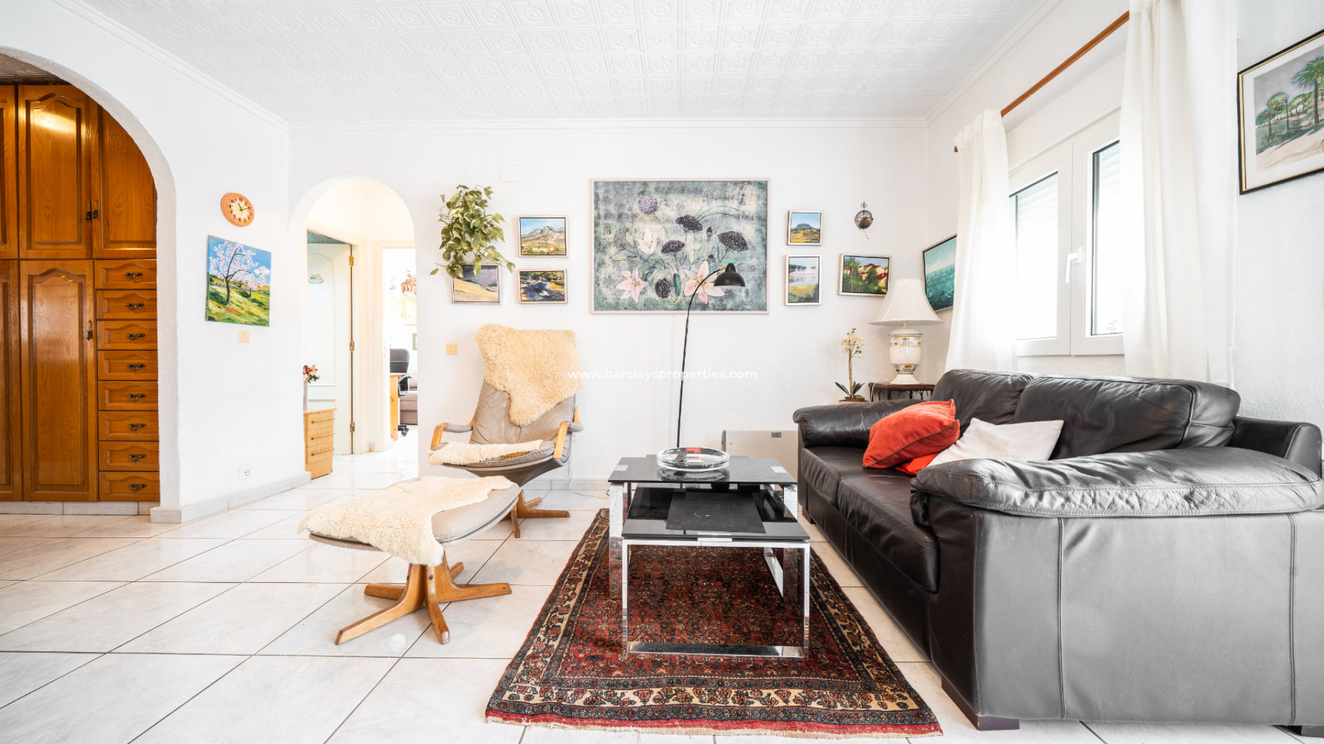 Binnen vindt u een grote, lichte woon-/eetkamer met zowel airconditioning als een houtkachel, wat zorgt voor comfort het hele jaar door. De ruime keuken geeft toegang tot een privé BBQ-ruimte aan de achterzijde – ideaal om buiten te dineren of te genieten met gasten.