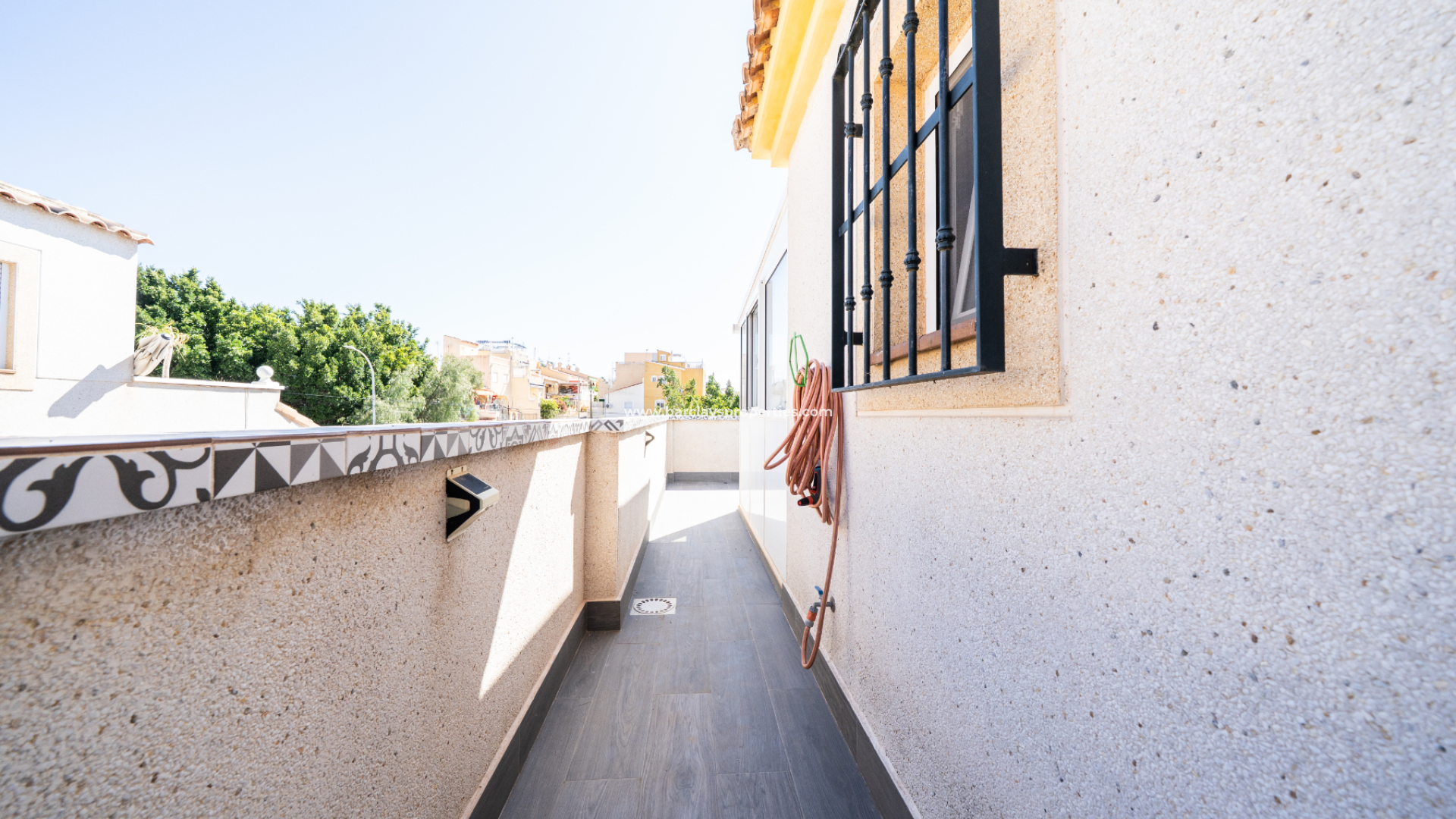 De buitenruimtes zijn ideaal om te genieten van het mediterrane klimaat. Een jacuzzi, zonneschermen aan zowel de voor- als achterkant van de tuin, en een privé garage met veel opbergruimte verhogen de aantrekkelijkheid van de woning. De villa is uitgerust met ✅zonne-energie via zes zonnepanelen en beschikt daarnaast over centrale gasverwarming, wat zorgt voor een energiezuinige woonstijl.
