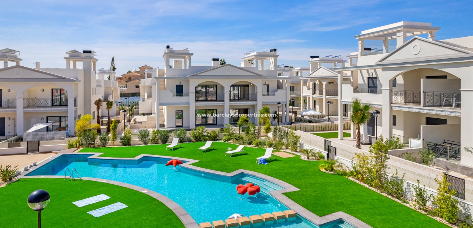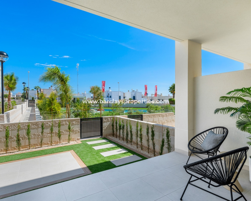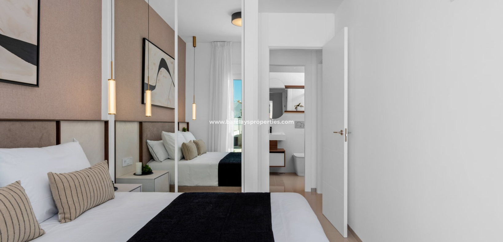 Deze stijlvolle appartementen met 2 slaapkamers en 2 badkamers bieden 79 m² slim ontworpen woonruimte op één niveau, met een open keuken, dubbele beglazing, ➡️ en toegang tot een prachtig gemeenschappelijk zwembad. Gelegen in een rustige maar goed verbonden privécommunity, op slechts 6 km van het strand, 4 km van de golfbaan, 1 km van alle voorzieningen en 54 km van de luchthaven. ➡️ Elk appartement beschikt over een privéparkeerplaats en uitstekend verhuurpotentieel. Er zijn twee indelingen beschikbaar: kies tussen 2 of 3 slaapkamers. Begane grondmodellen beschikken over ruime privé-tuinen van 90 tot 155 m², terwijl de bovenverdiepingen beschikken over privé dakterrassen – ideaal om te genieten van het mediterrane klimaat.