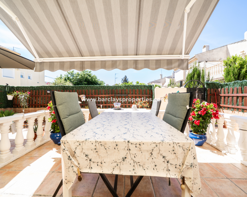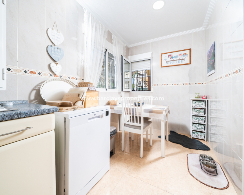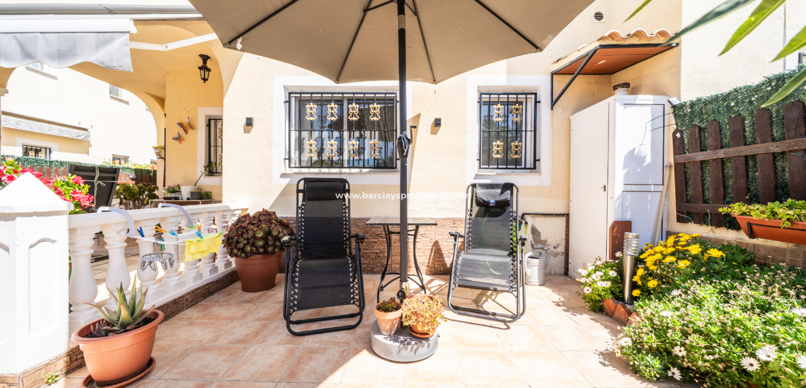 Gelegen in een vriendelijke gemeenschap, is deze goed onderhouden quad-villa, een model genaamd (Isla Cristina), te vinden in Urb. El Oasis, op slechts 5 minuten lopen van de nabijgelegen voorzieningen van Urbanisatie La Marina, 5 minuten rijden van het strand en slechts 25 minuten van de luchthaven van Alicante. Deze prachtig gepresenteerde quad ➡️ biedt bewoners toegang tot het gemeenschappelijke zwembad, dat zich dicht bij de woning bevindt in het hart van de gemeenschap, beveiligd met een codesysteem voor de veiligheid van uw gezin. Deze fantastische villa heeft een bebouwde oppervlakte van 93m2 en 81m2 woonruimte.