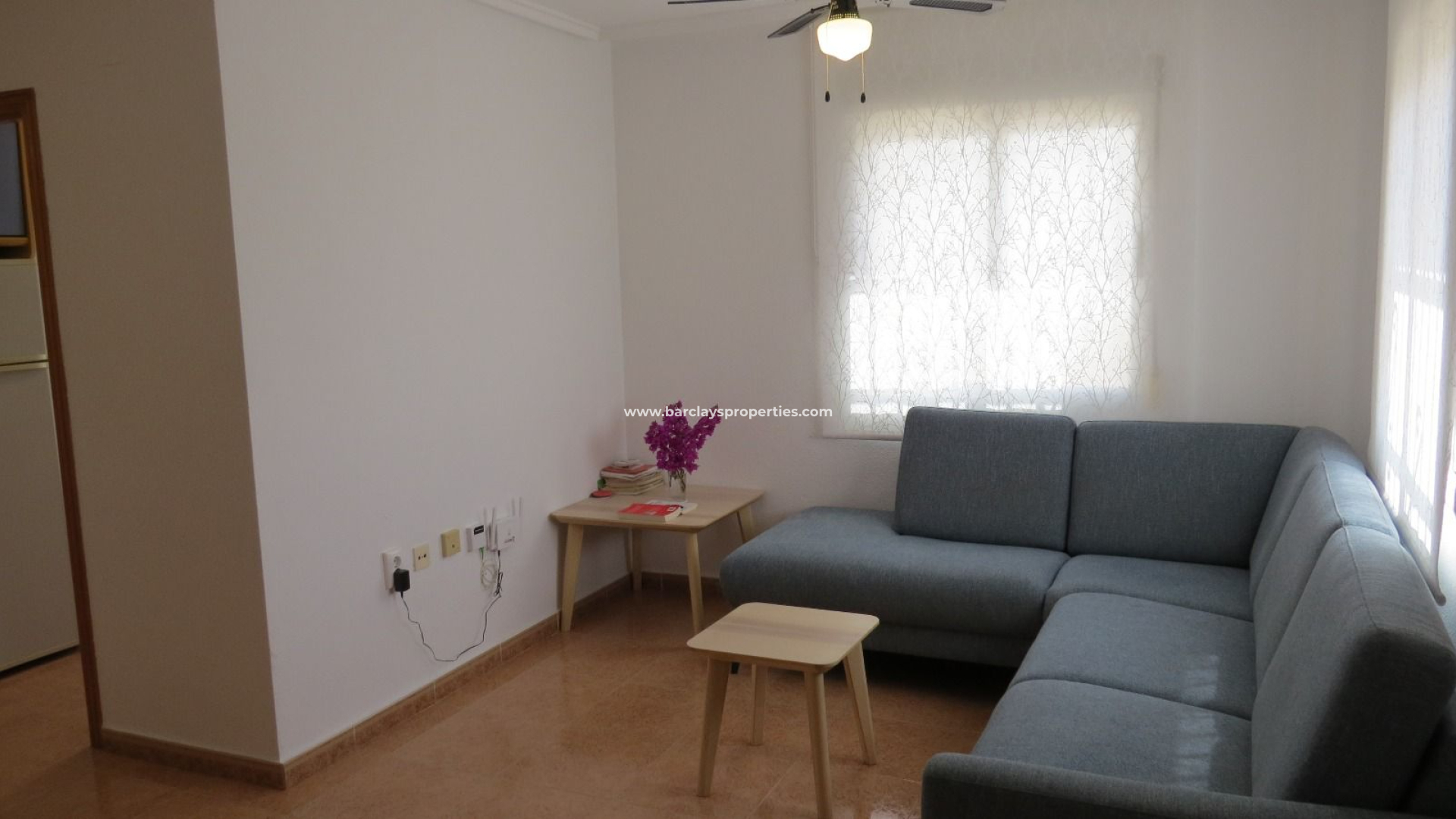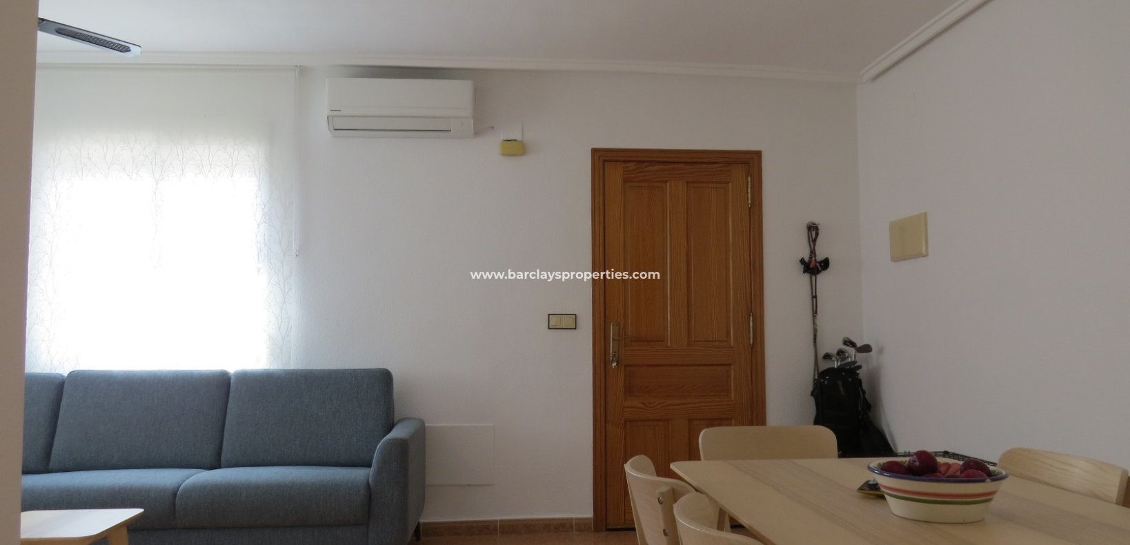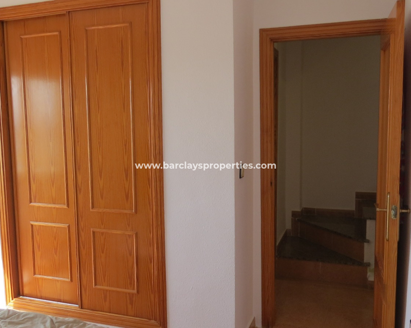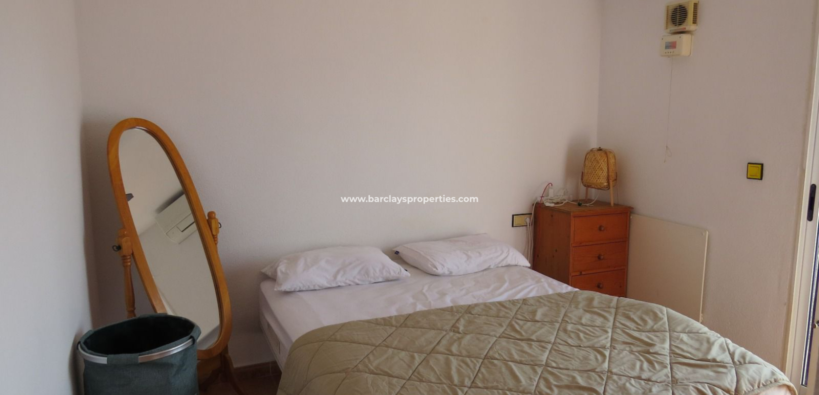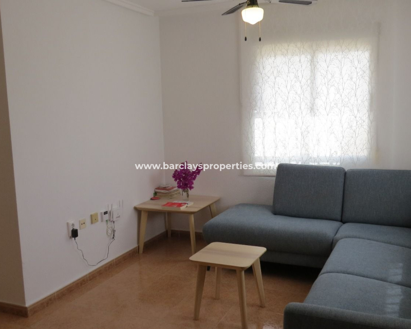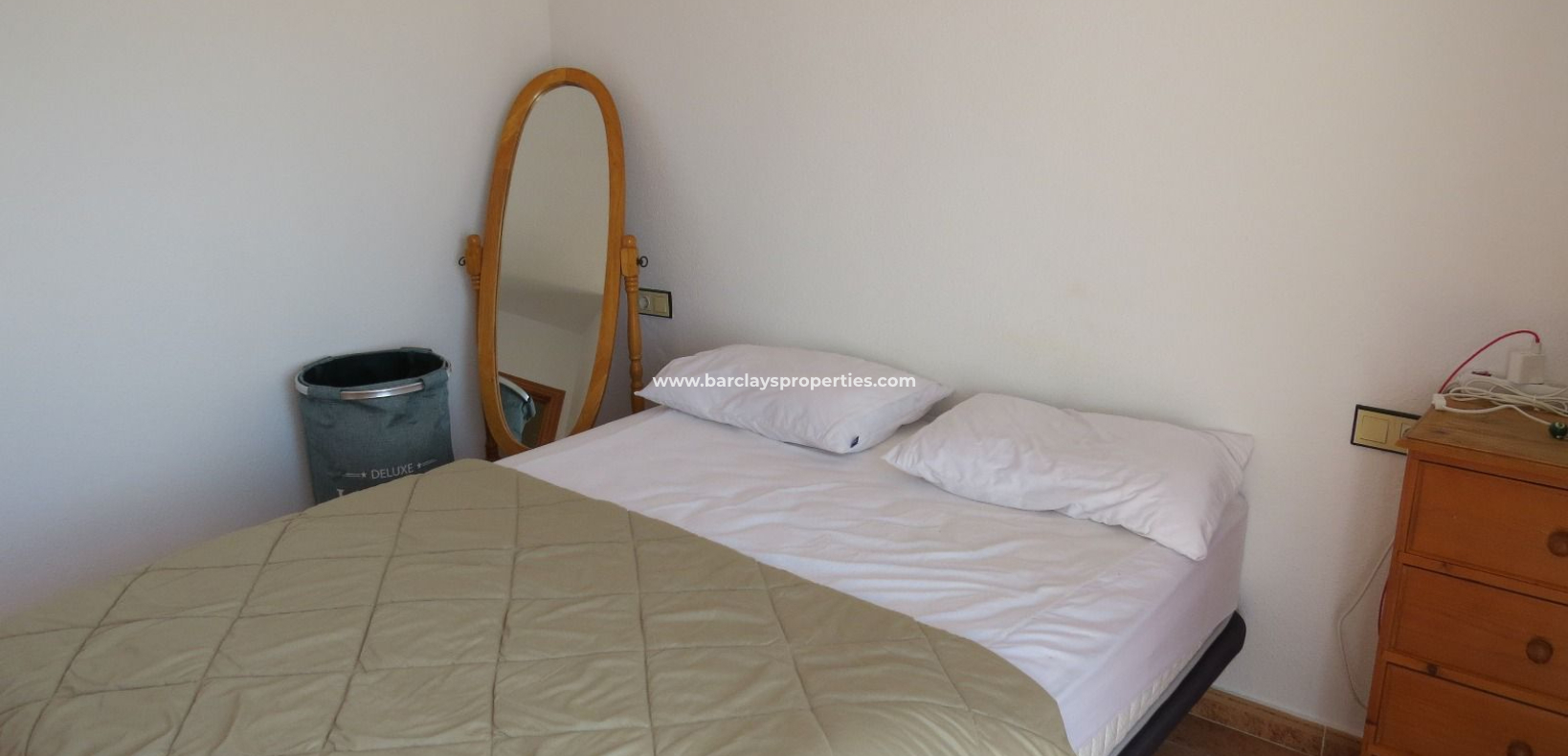 Deze goed onderhouden twee verdiepingen tellende quad villa is gelegen in een rustige doch centraal gelegen privé-gemeenschap in de populaire urbanisatie La Marina, San Fulgencio. De woning biedt 3 slaapkamers, 2 badkamers en een royale woonoppervlakte van 81m². Het beschikt over een onafhankelijke keuken, dubbele beglazing, airconditioning, witgoed, een versterkte veiligheidsdeur en een berging. Geniet van ontspanning op het ruime voorterras met parkeerplaats of dineer op het verhoogde zijterras in de schaduw. Het huis heeft een gezellig balkon, een lichte woonkamer en een dakterras met panoramisch uitzicht op de omgeving en de verre bergen. De hoofdslaapkamer heeft een eigen privéterras. ➡️ Slechts 3 km van het strand en 500 meter van alle essentiële voorzieningen, maakt de woning deel uit ➡️ van een privé-gemeenschap met toegang tot een groot gemeenschappelijk zwembad en tuinen, wat uitstekend verhuurpotentieel biedt dankzij de nabijheid van golfbanen, de luchthaven van Alicante (25 km) en de rustige doch levendige omgeving.