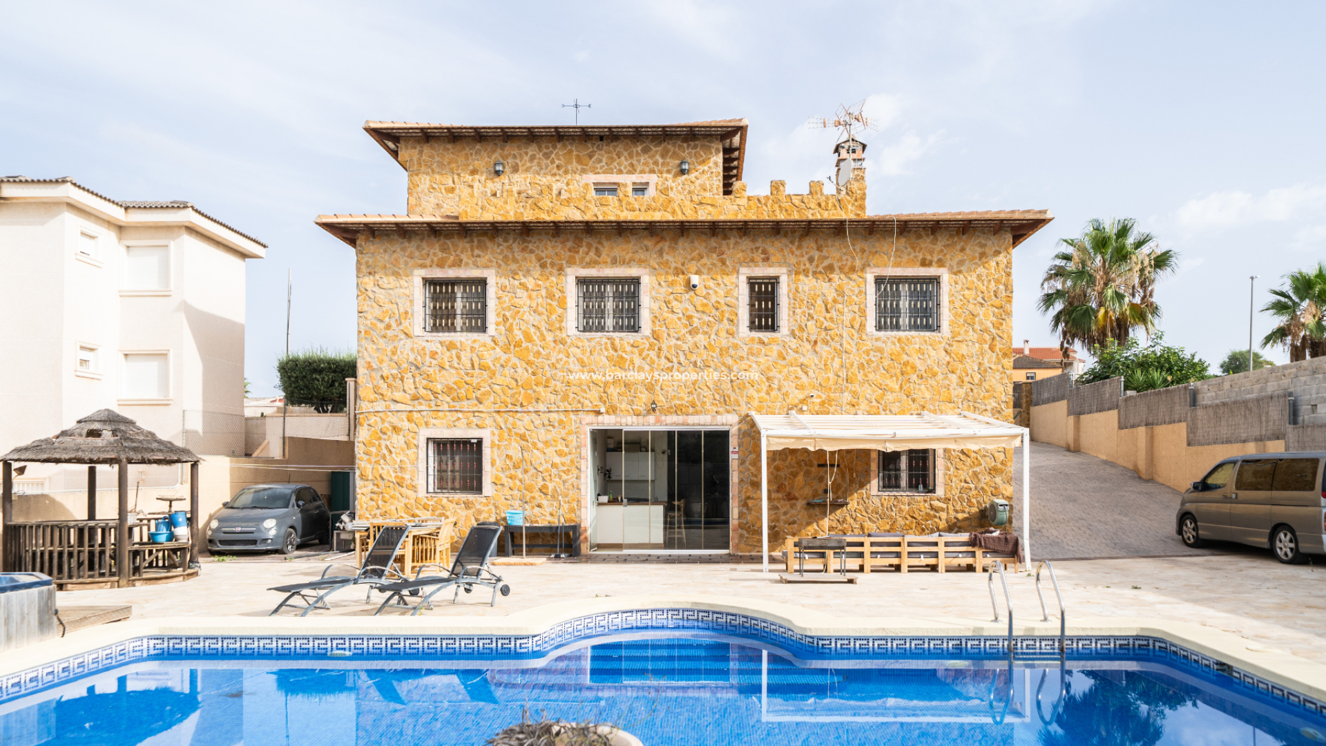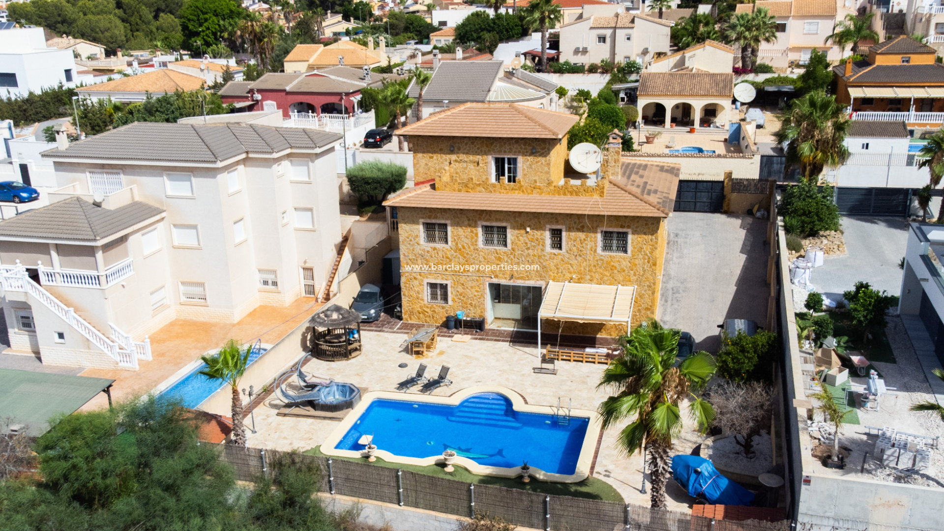 Laat je verrassen door deze ruime, onberispelijke vrijstaande familievilla, gelegen in de gewilde urbanisatie La Escuera in San Fulgencio. Slechts 3 minuten rijden van het zandstrand van “La Marina Village”, 25 minuten van de luchthaven van Alicante en op slechts 10 minuten loopafstand van de voorzieningen van de nabijgelegen urbanisatie La Marina.
