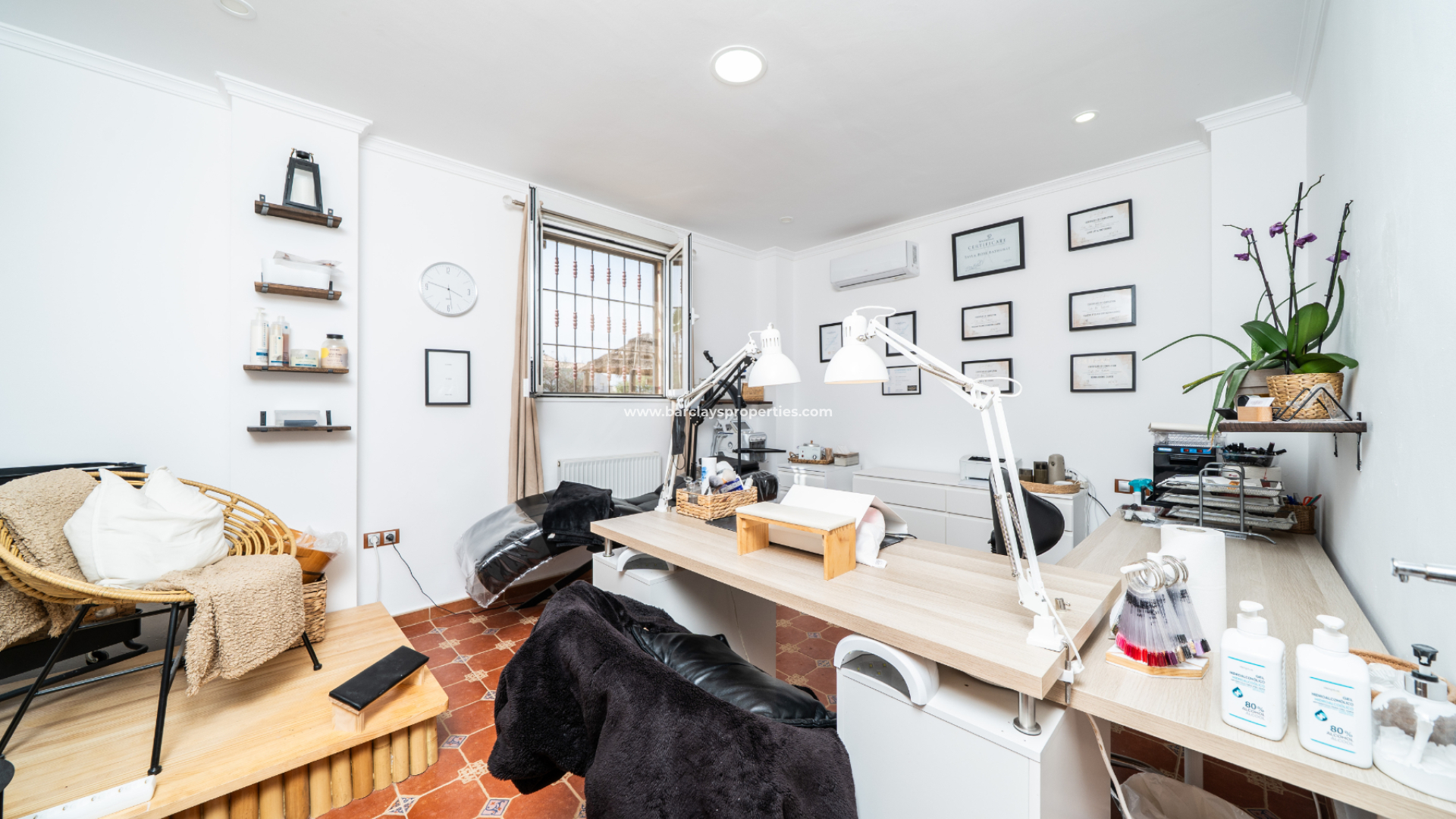 Het souterrain is flexibel in te richten en biedt verschillende mogelijkheden. Er zijn twee mogelijke slaapruimtes: één is momenteel in gebruik als schoonheidssalon, en de andere heeft airconditioning, ingebouwde kasten en een grote en-suite badkamer met douche, wastafelmeubel en toilet. Daarnaast is er een tweede volledig elektrische en ruime keuken, en een recent gebouwde garagekamer die extra potentie biedt.