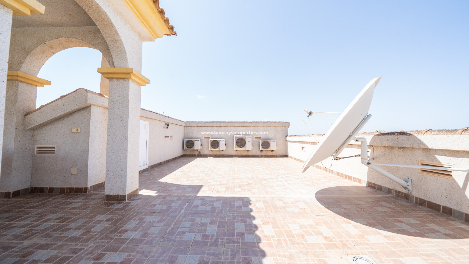 De woning beschikt over een enorme kelder met ramen en centrale verwarming – ideaal voor opslag of toekomstige verbouwing. Een solarium is ook binnen handbereik, bereikbaar via een buitentrap met een gebouwde pergola en een schaduwrijke zithoek, perfect om comfortabel van de zon te genieten.