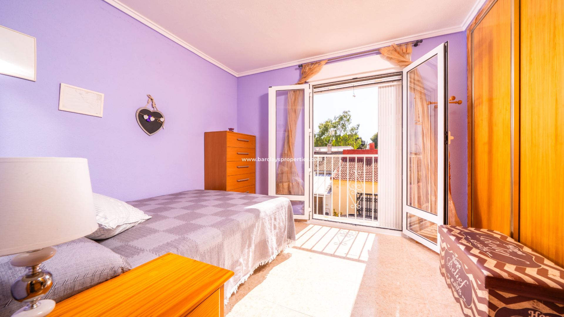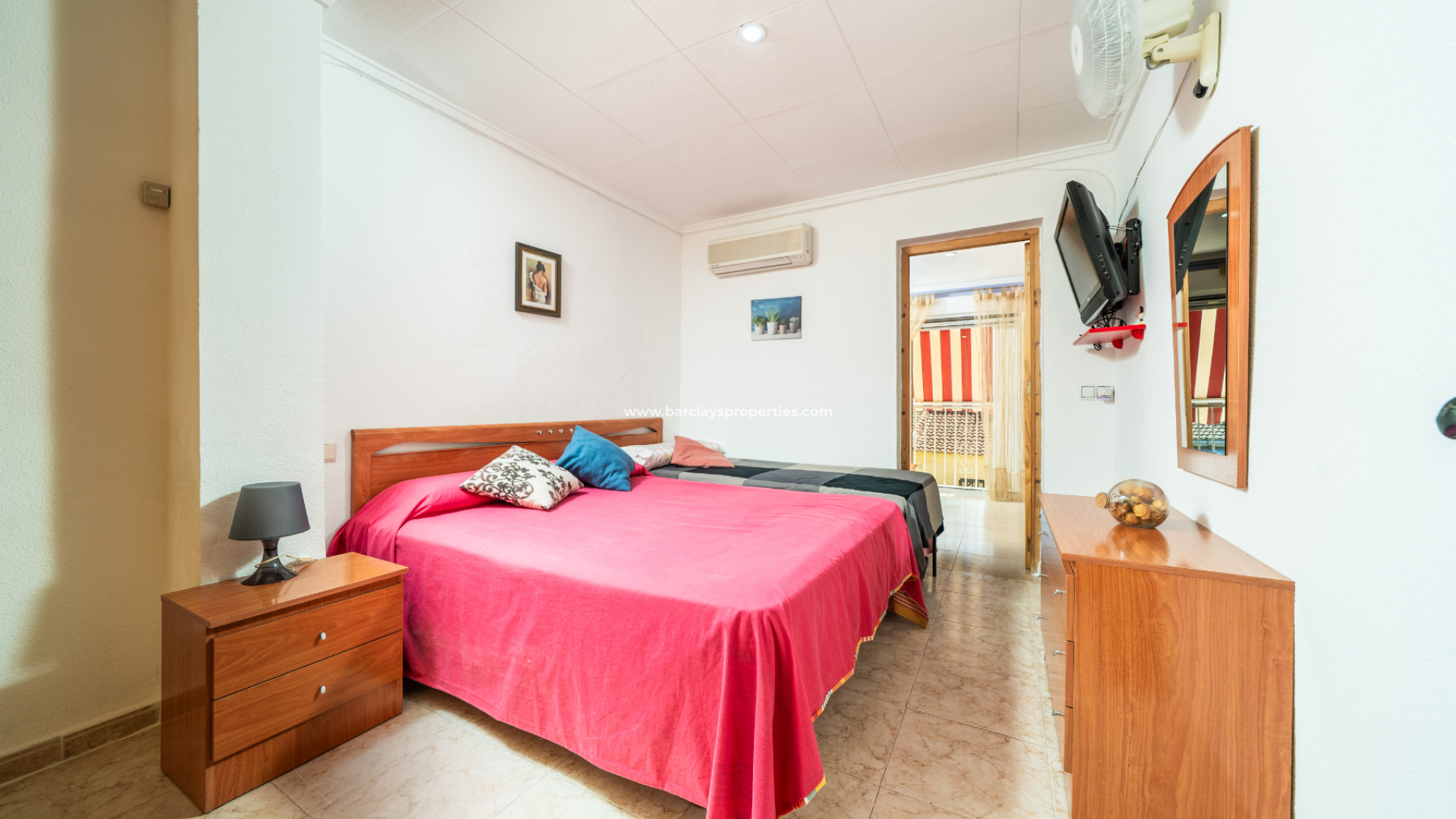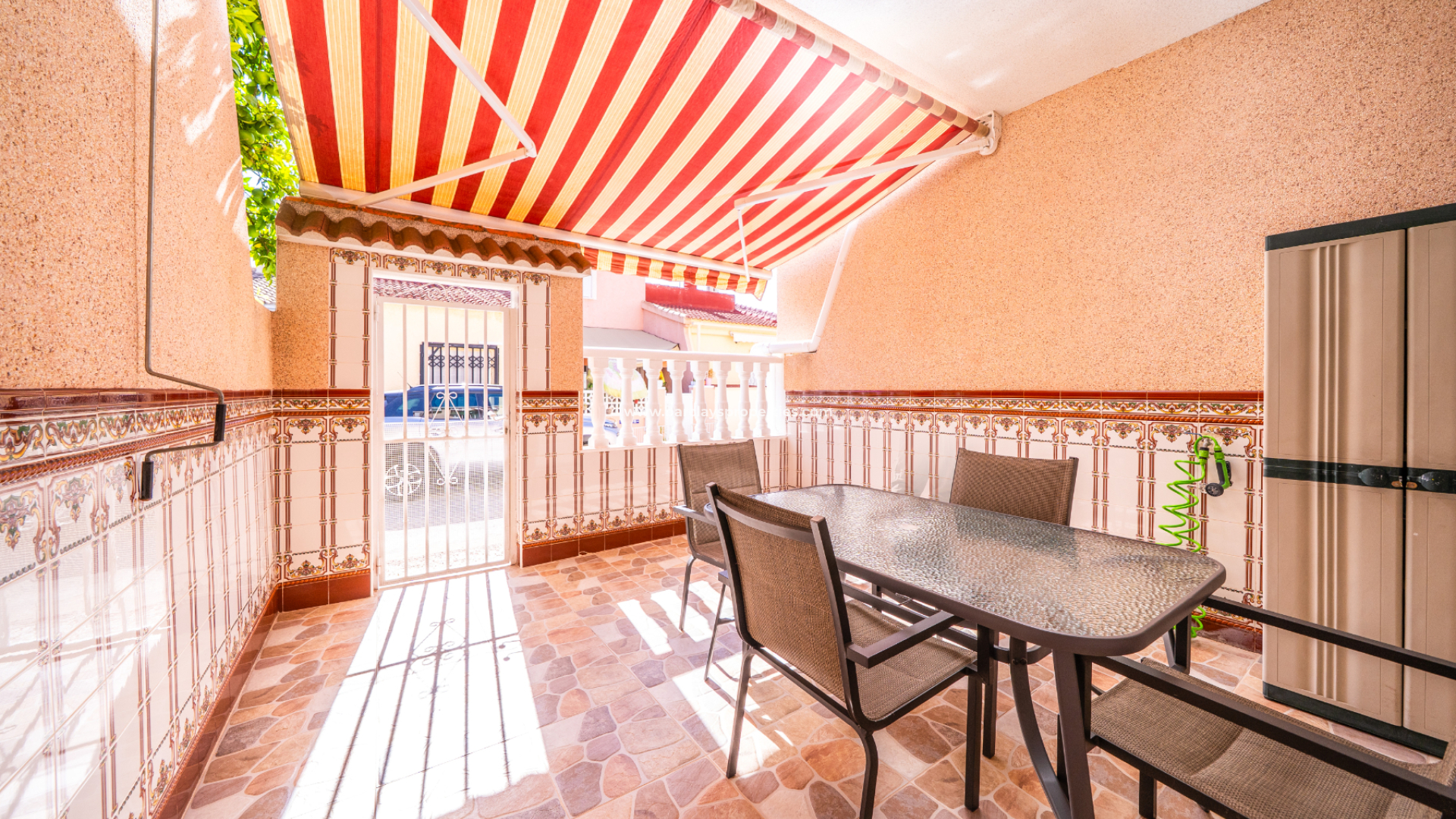 Deze uitgebreide “Evita” tussenwoning biedt veel ruimte en comfort in een centrale maar rustige omgeving. Op korte loopafstand vindt u cafés, restaurants, bars en supermarkten, terwijl het strand slechts enkele minuten met de auto ligt en de luchthaven van Alicante op ongeveer 25 minuten afstand.