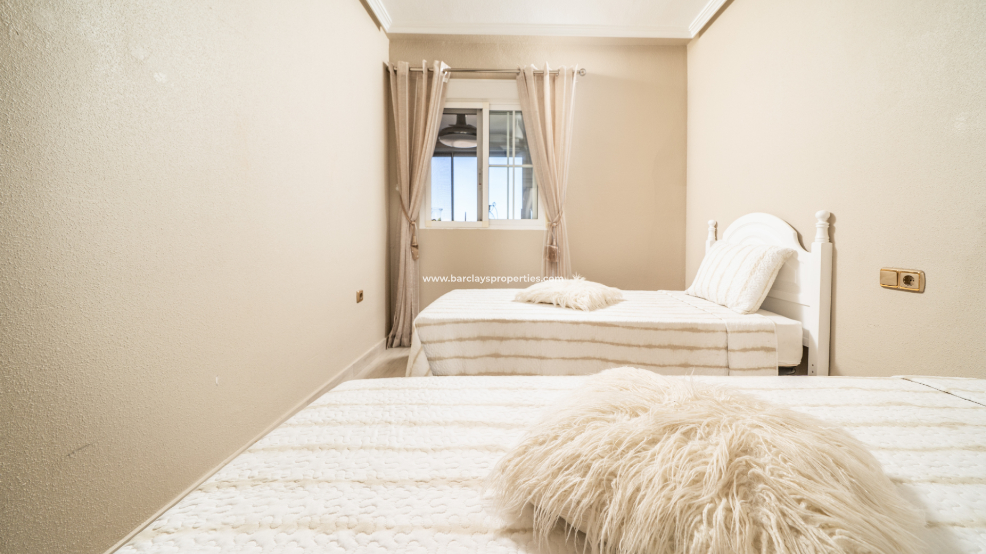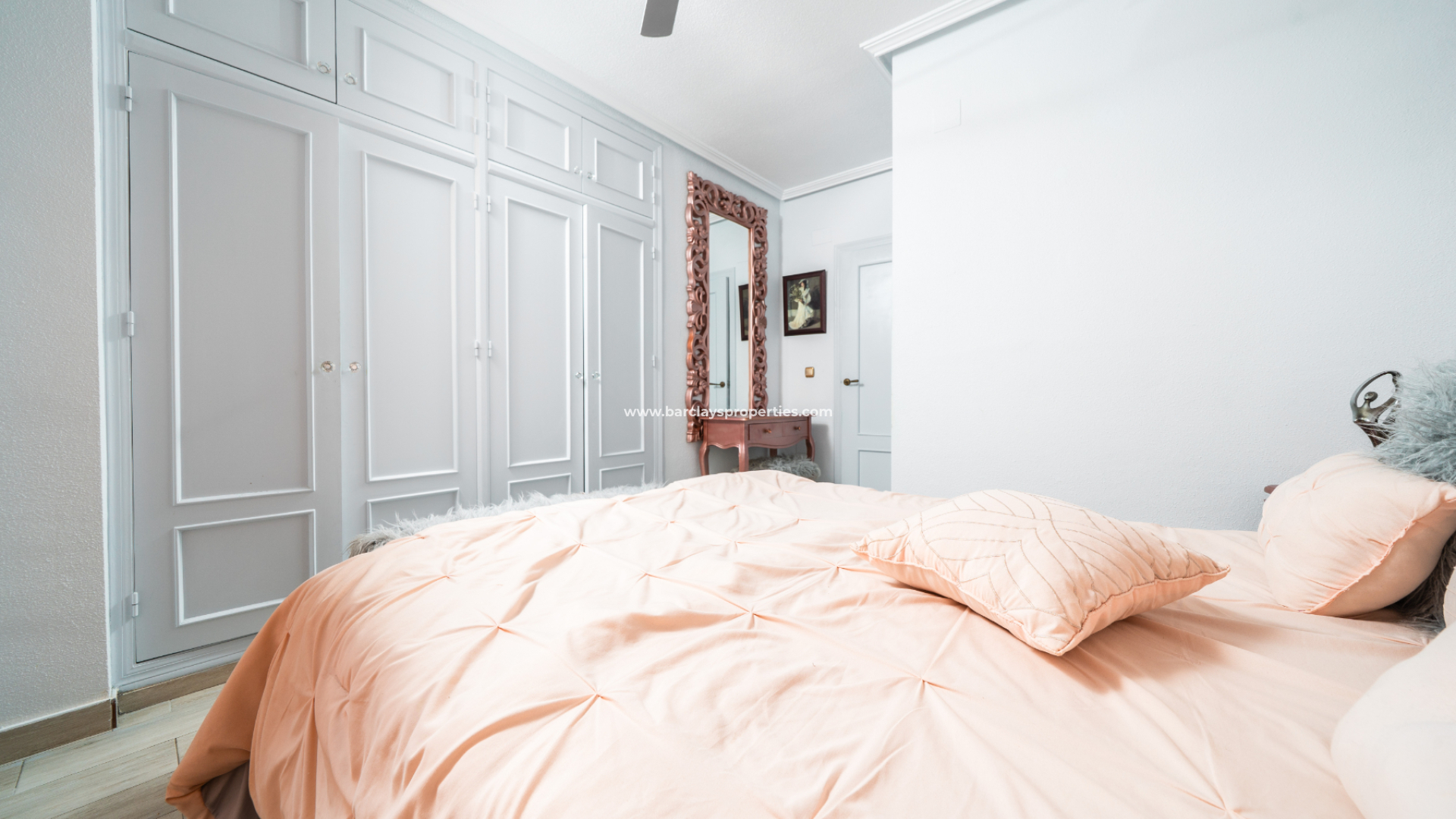 De hoofdslaapkamer is een comfortabele tweepersoonskamer met vierdeurs inbouwkasten met dubbele opbergruimte aan de bovenkant. De tweede slaapkamer is ook een tweepersoonskamer, met ingebouwde spiegelkasten met opbergruimte aan de bovenkant en een plafondventilator.