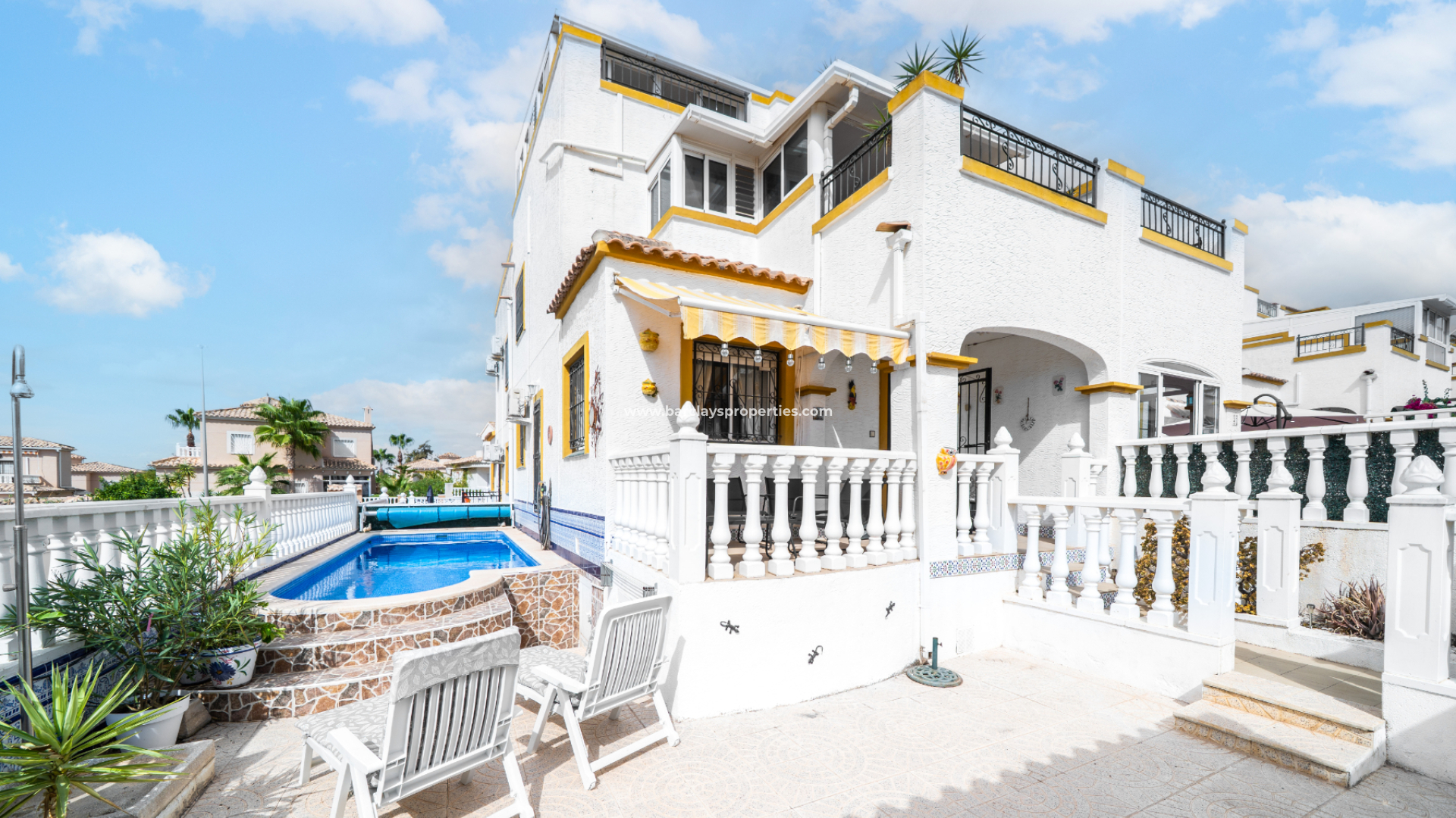 Dit model quad "Isabel" biedt een zeldzame kans om een ruime woning met 3 slaapkamers en 2 badkamers te kopen op een ruim hoekperceel met een eigen privézwembad. ➡️ Perfect gepositioneerd op het zuidwesten, geniet de woning de hele dag van veel natuurlijk licht en ligt op slechts een paar minuten lopen van de lokale voorzieningen, waaronder winkels, restaurants, een supermarkt, een bank en meer. De gouden zandstranden van La Marina liggen op slechts 5 minuten rijden, terwijl de luchthaven van Alicante in slechts 25 minuten te bereiken is.