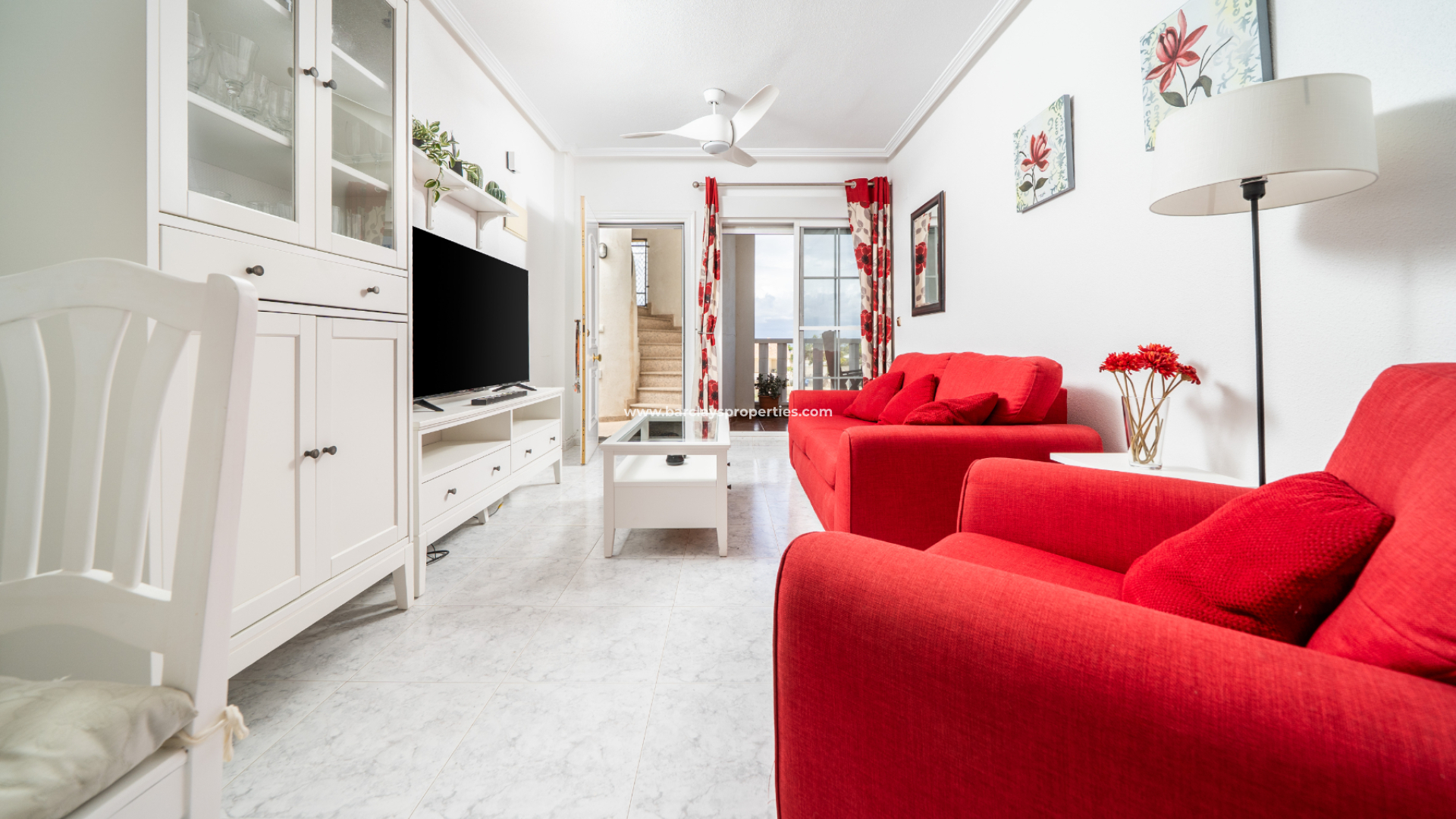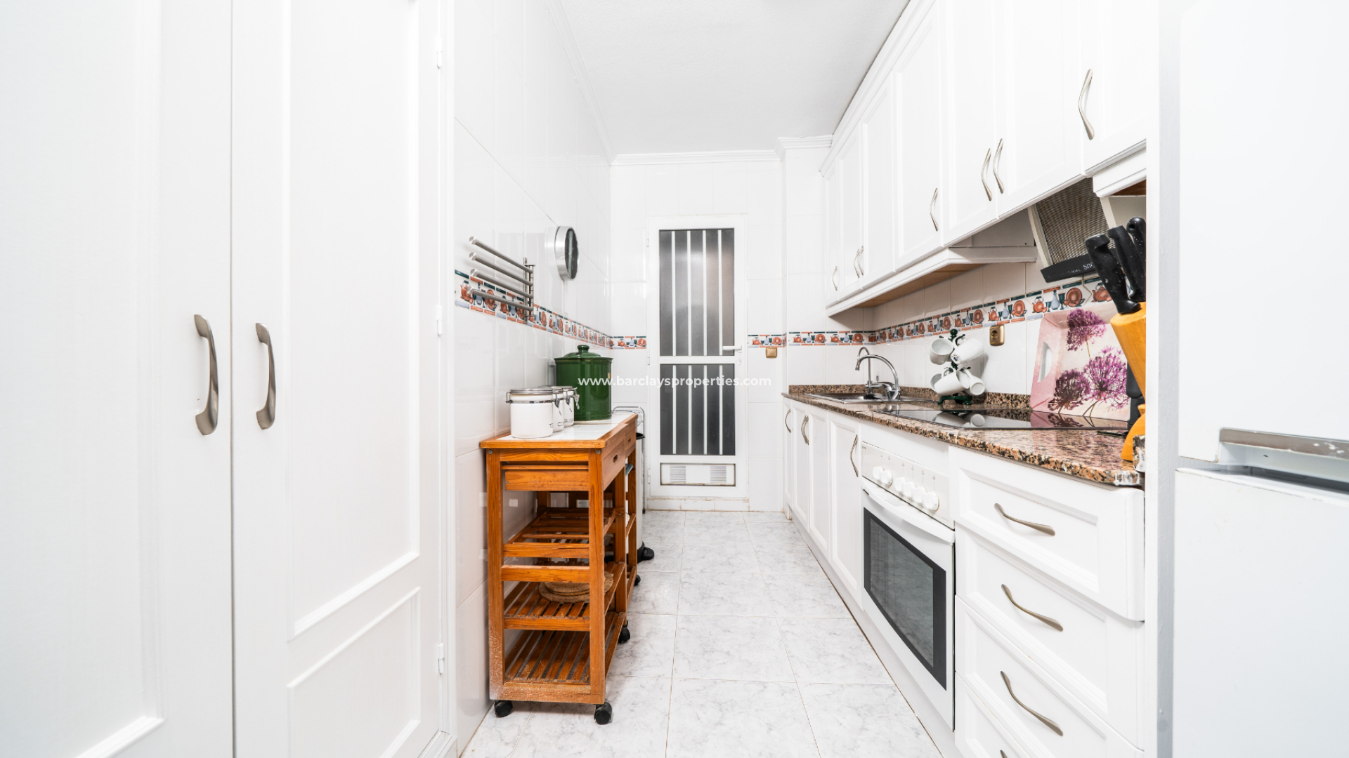 Binnenin is de lichte woonkamer uitgerust met airconditioning en een plafondventilator voor comfort het hele jaar door en toegang tot een ruim balkon, perfect voor de ochtendkoffie of avondontspanning met een verreikend uitzicht op de nabijgelegen zoutmeren. De volledig elektrische keuken omvat een bijkeuken met wasmachine en boiler, wat alles biedt wat u nodig heeft voor gemak.