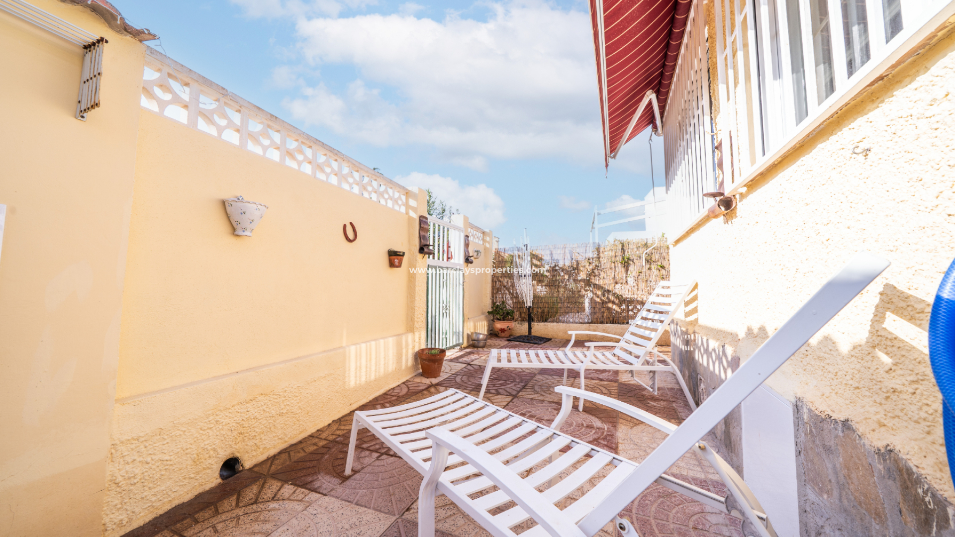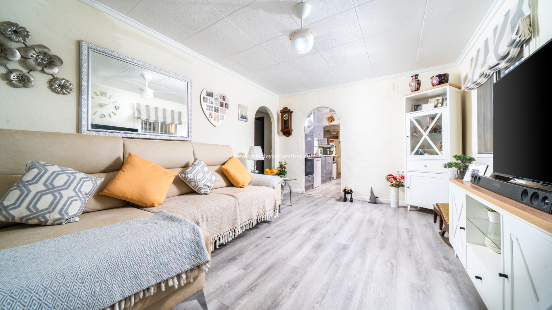 Binnen komt de woning uit op een glazen entreeportiek die leidt naar een lichte, comfortabele woonkamer. De nieuw geplaatste moderne keuken is zowel stijlvol als functioneel, aangevuld met een extra woon-/eetkamer. De ruime hoofdslaapkamer met airconditioning en plafondventilator beschikt ook over spiegelde inbouwkasten, een extra opbergkast / kledingkast en een grote en-suite badkamer met een inloopdouche. De tweede slaapkamer heeft toegang tot een veelzijdige kamer die gemakkelijk kan worden gebruikt als kleedkamer, hobbyruimte of opslag (deze wordt momenteel gebruikt als gastenverblijf). Het interieur van deze prachtige villa wordt gecompleteerd door een eigentijdse familiebadkamer met een hoek-inloopdouche.