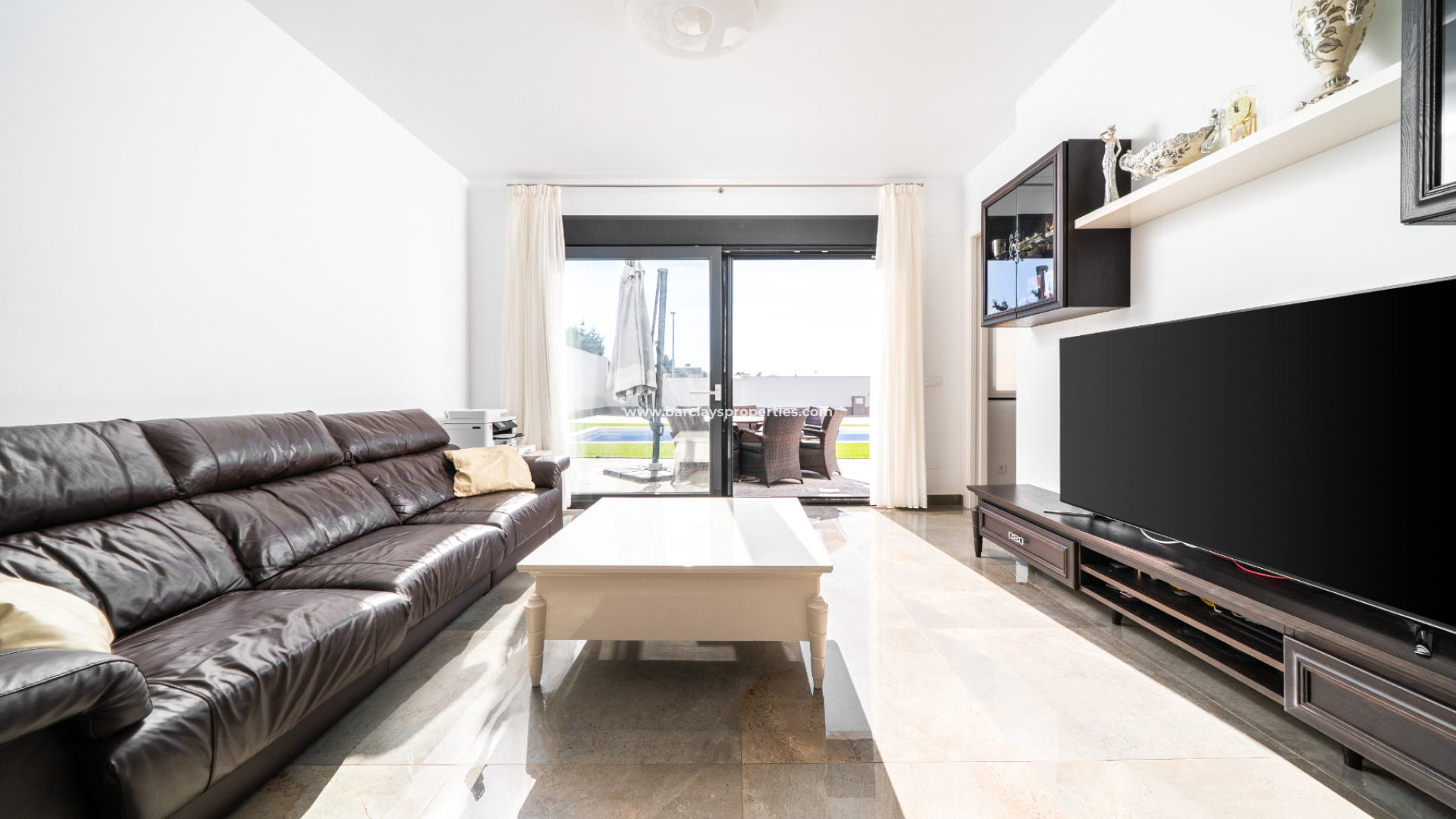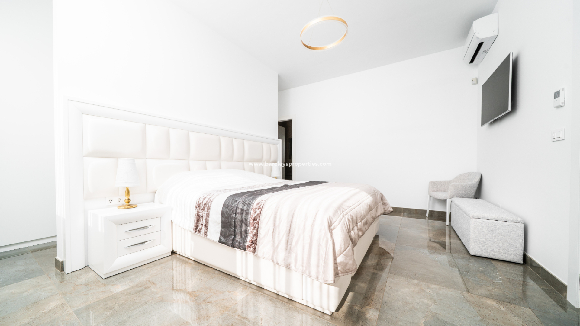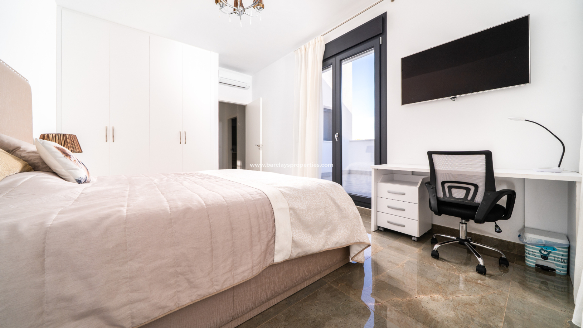 De derde slaapkamer is een royale tweepersoonskamer met ingebouwde kasten, airconditioning en een privé zonneterras.