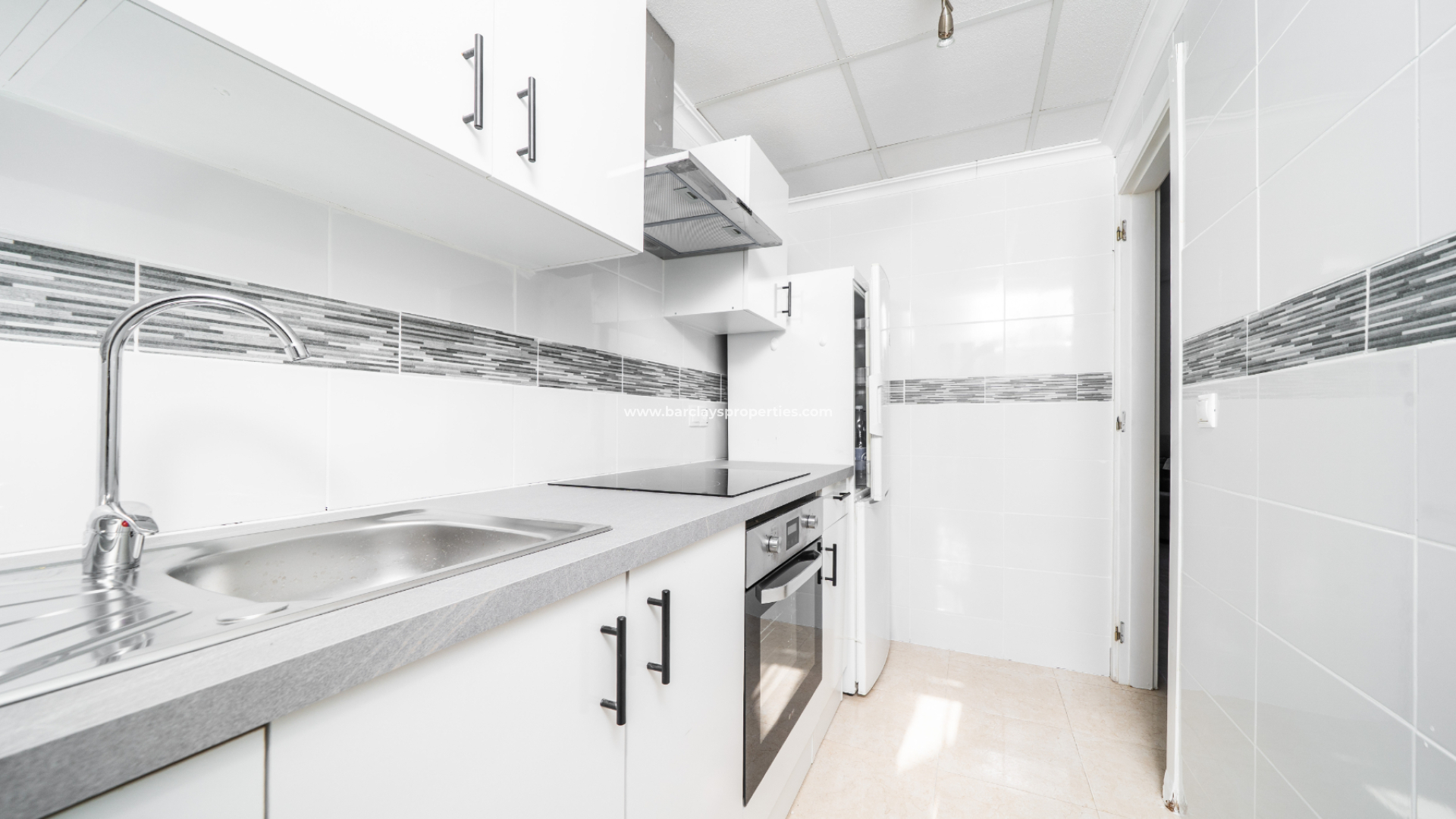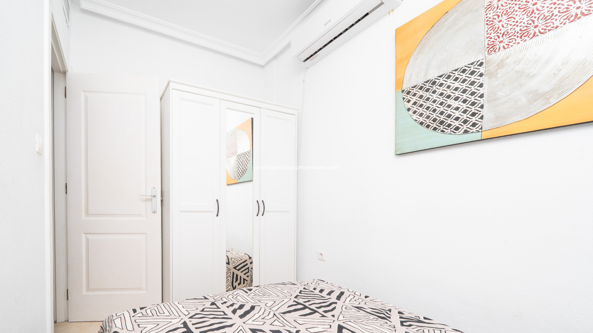 De begane grond beschikt over een lichte en luchtige woon- / eetkamer met een aantrekkelijke gebogen raamformatie, een goed uitgeruste, onlangs gerenoveerde aparte keuken met toegangsdeur naar de tuin, een tweepersoonsslaapkamer met airconditioning en plafondventilator en een badkamer met inloopdouche.