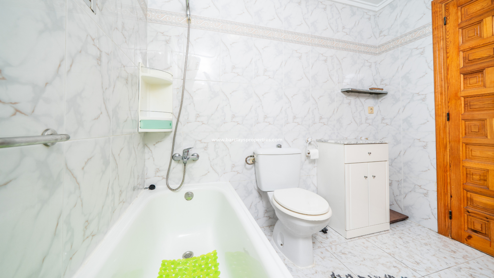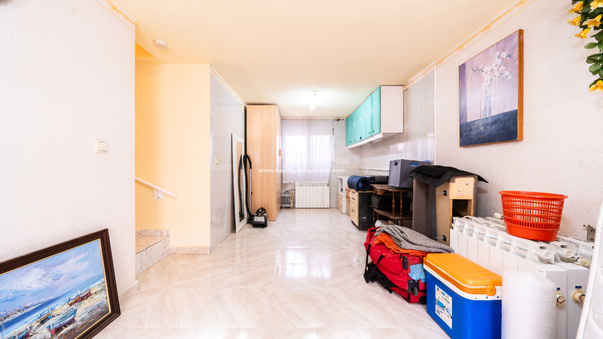 Deze charmante vrijstaande villa, gelegen in een rustige gemeenschap aan de Costa Blanca, biedt ➡️ 130 m² aan bebouwde ruimte op een perceel van 228 m². Het beschikt over twee comfortabele slaapkamers en twee badkamers, samen met een onafhankelijke keuken inclusief witgoed. De woning is ontworpen voor het mediterrane leven met een barbecueplek, airconditioning, dubbele beglazing en een fantastisch dakterras (solarium) voor zonaanbidders. Een opvallend kenmerk is ➡️ de grote, veelzijdige onderbouw, die aanzienlijk potentieel biedt om te worden gebruikt als thuiskantoor, extra opslagruimte of zelfs een extra slaapvertrek. Het privéperceel biedt parkeergelegenheid voor één auto, een berging en ➡️ directe toegang vanuit de tuin tot een rustige gemeenschappelijke groene zone aan de achterzijde, perfect voor ontspanning. De villa is gedeeltelijk gemeubileerd en bevindt zich op een aantrekkelijke locatie—slechts 800 meter van voorzieningen, 3 km van het strand, 25 km van de luchthaven en 10 km van een golfbaan—wat een groot verhuurpotentieel vertegenwoordigt.