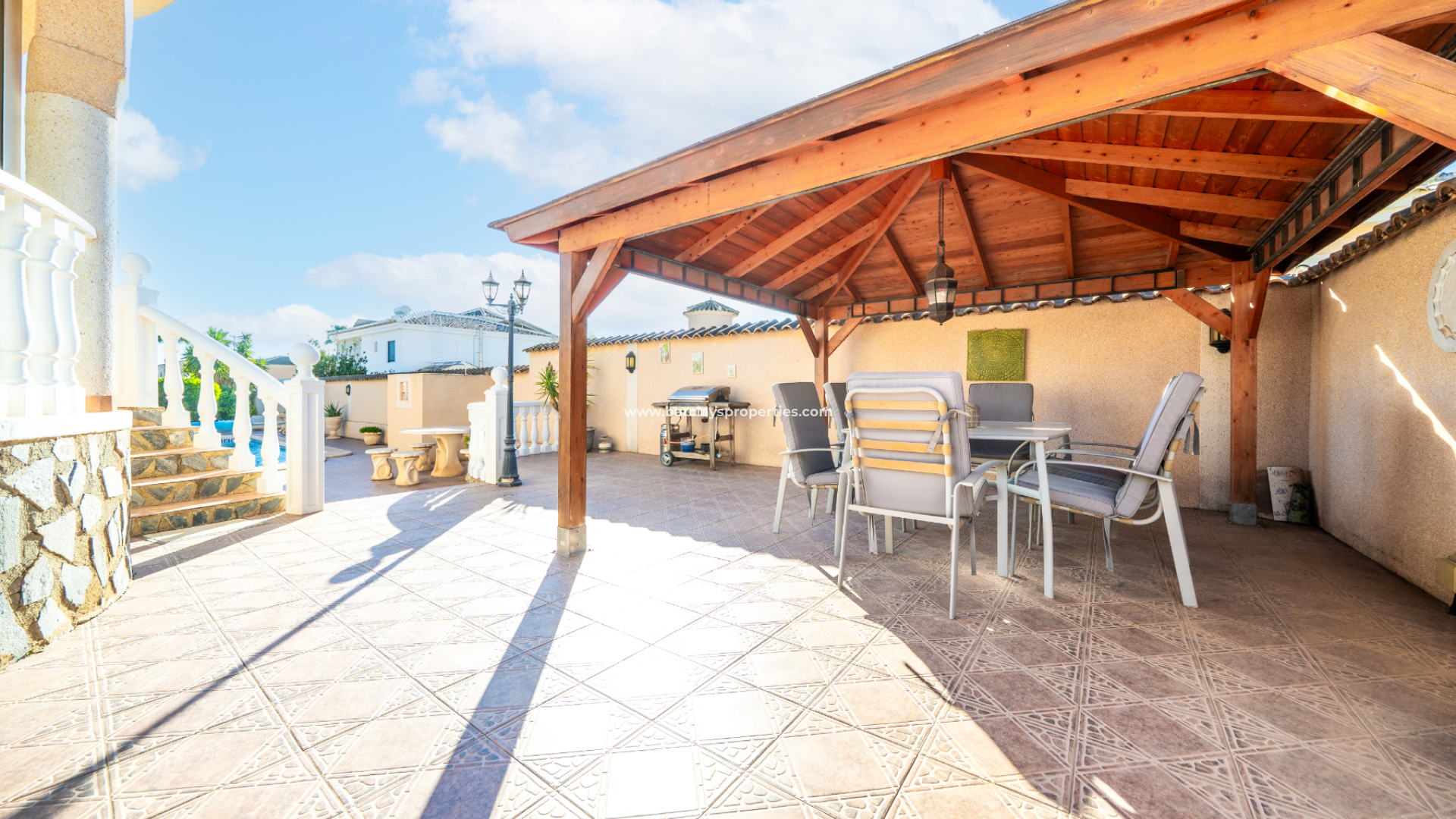 Deze villa biedt een goed geproportioneerd interieur, buitenruimte die geschikt is voor het hele jaar door en een gunstige locatie binnen de populaire La Marina-gemeenschap.