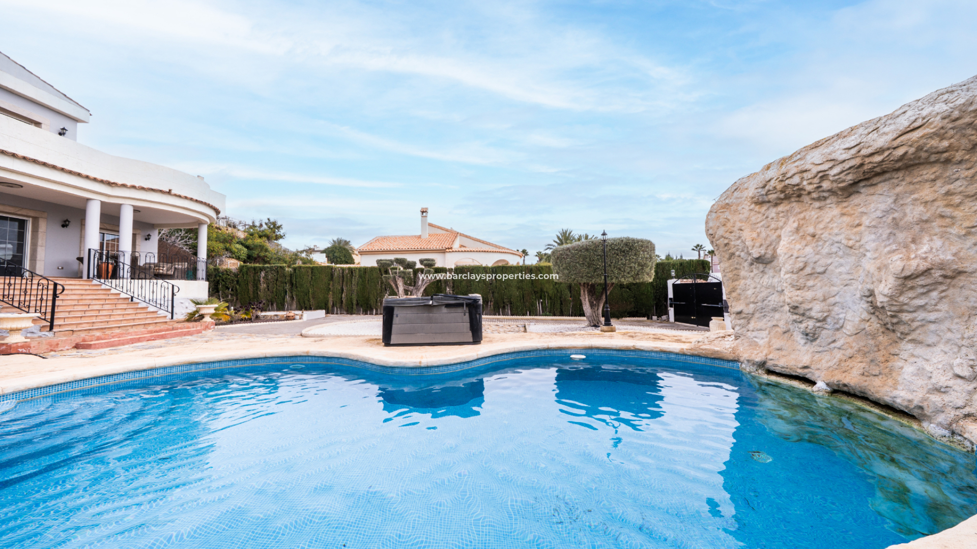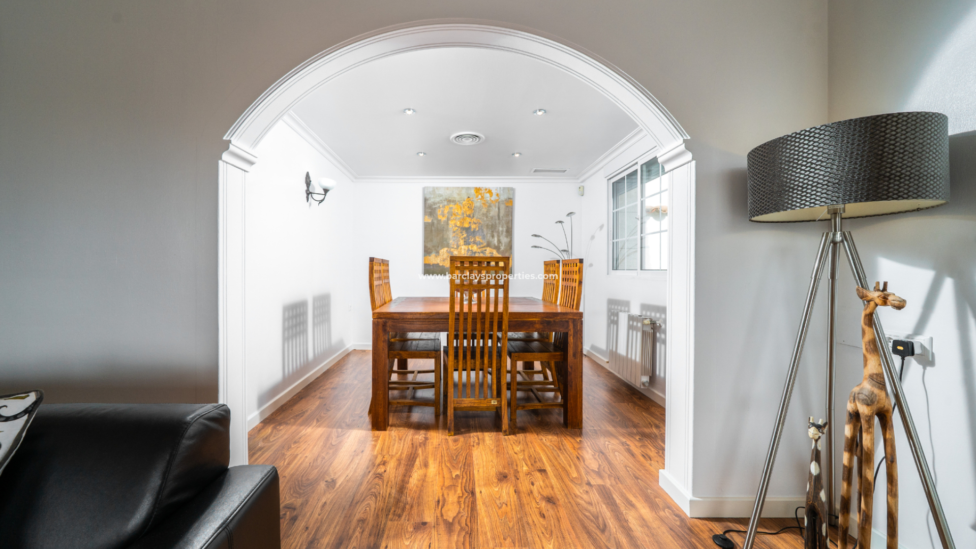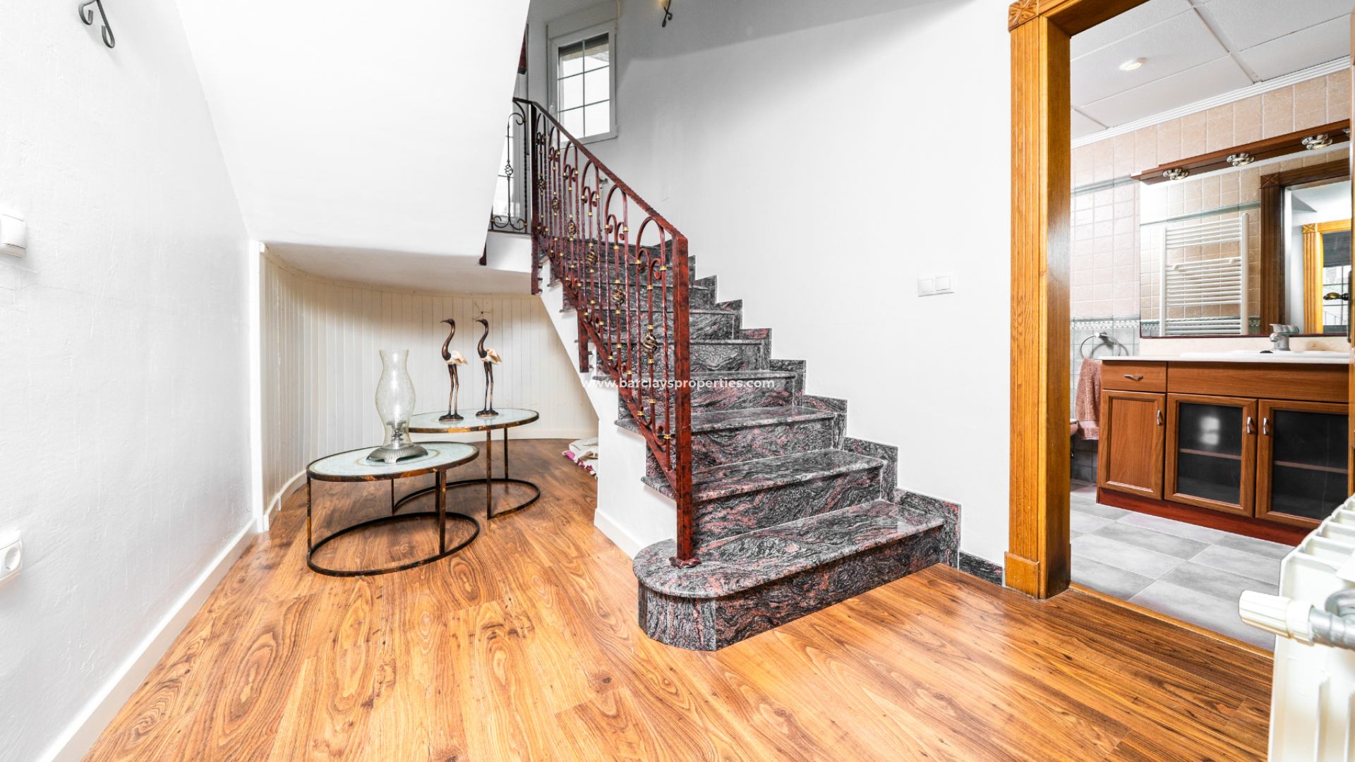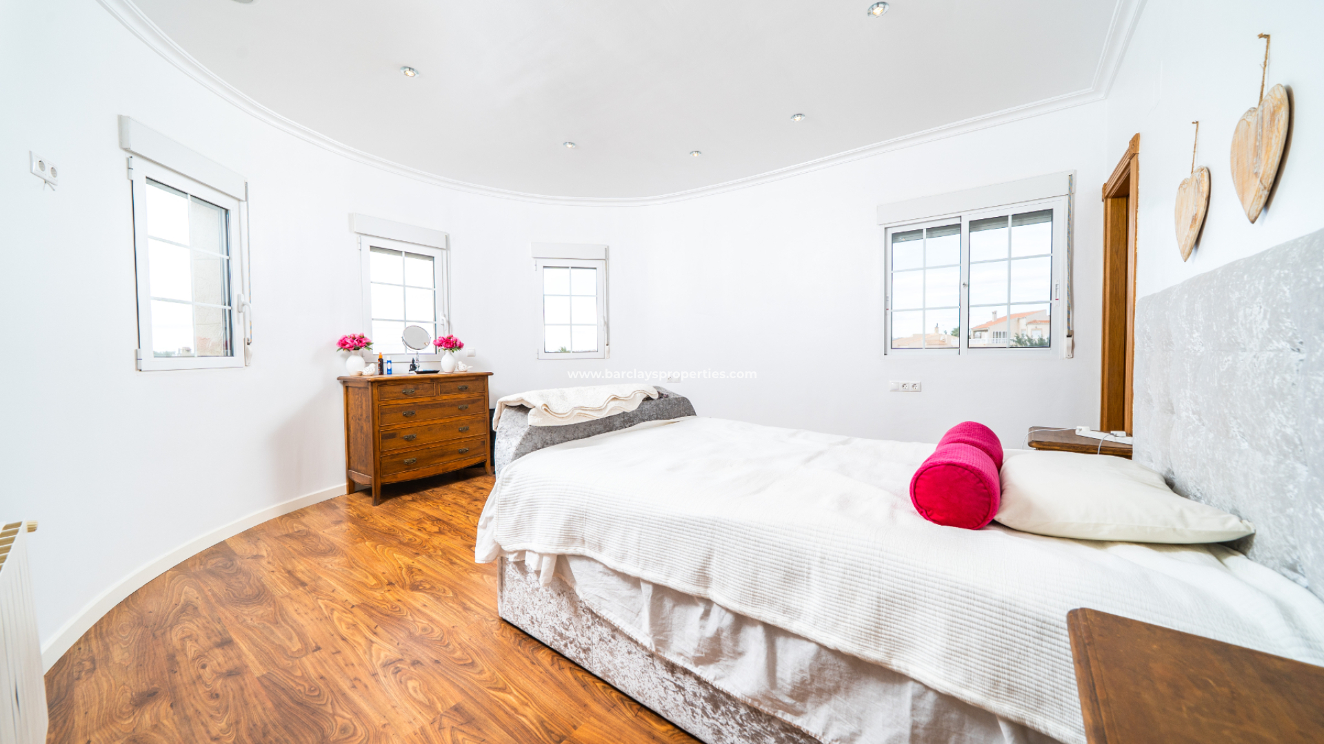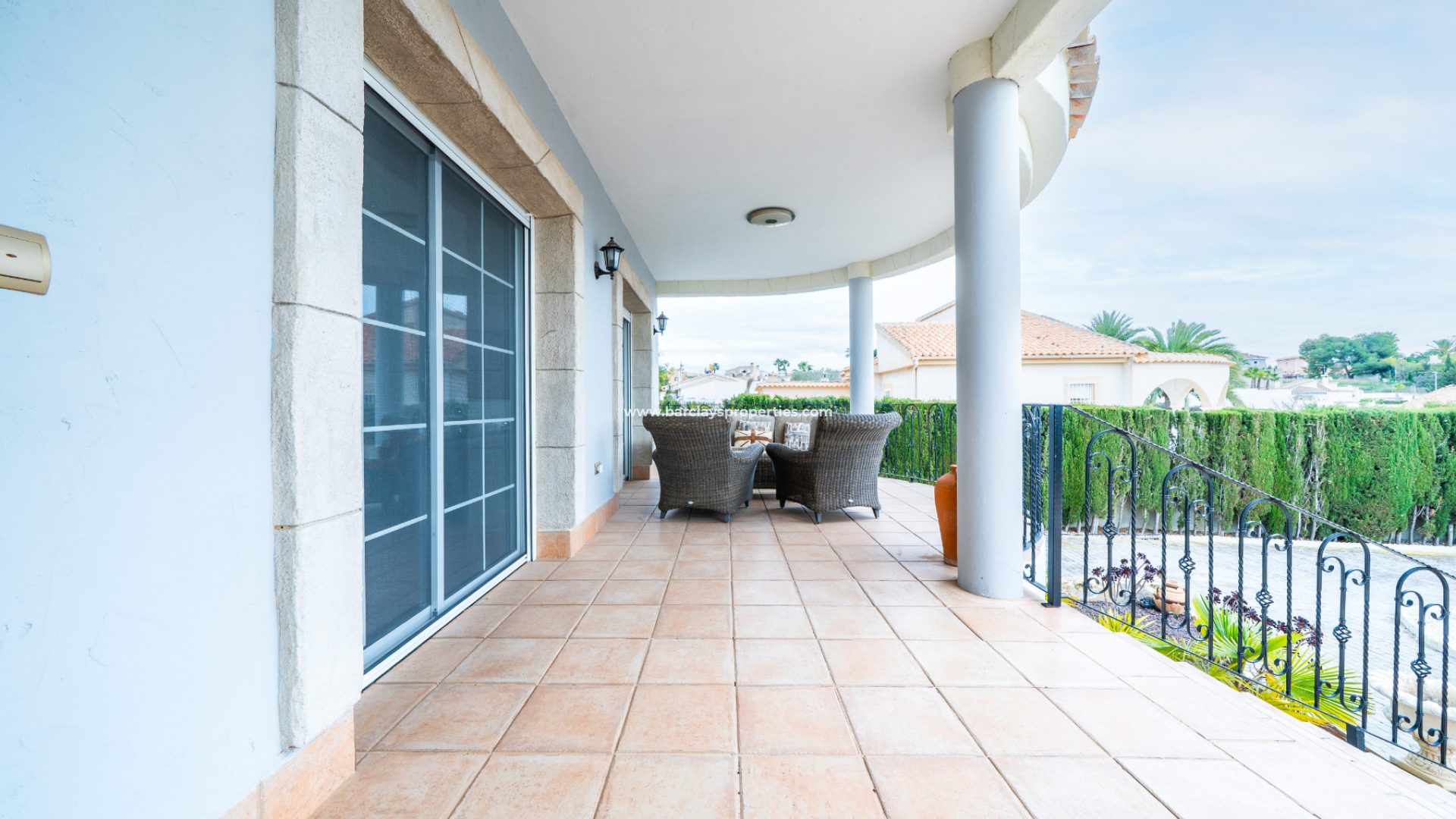 Gelegen in de gevestigde urbanisatie La Escuera in San Fulgencio, biedt ➡️ deze indrukwekkende vrijstaande villa van 243 m2 royale leefruimte en uitstekende buitenfaciliteiten op ➡️ een groot perceel van 829 m2. De voorzieningen van de naburige urbanisatie La Marina liggen op slechts 10 minuten lopen of een paar minuten rijden. ➡️ Een privézwembad in de goed onderhouden voortuin en een verhoogd gebogen terras met zuilenontwerp verwelkomen u in deze prachtige villa.