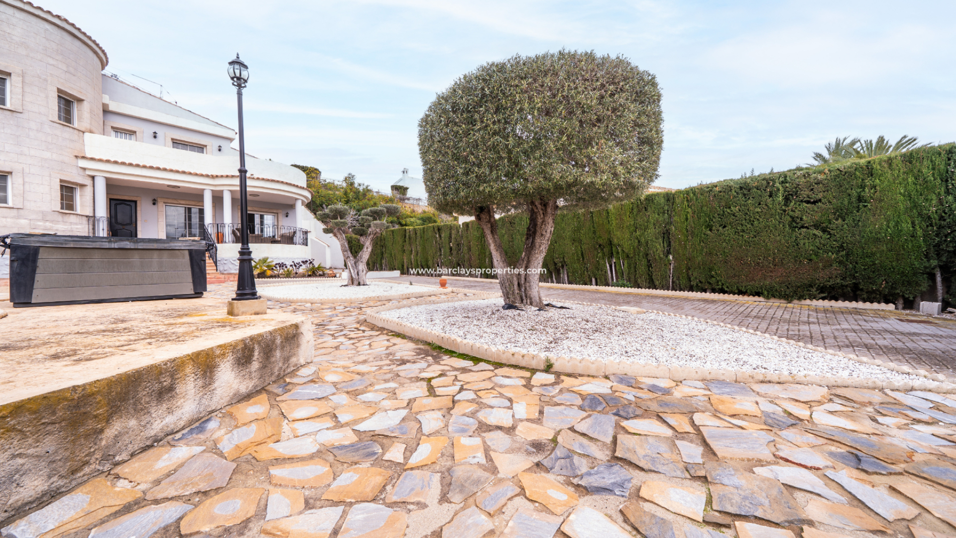 Buiten is de woning ontworpen om te genieten van de mediterrane levensstijl, met elektrische poorten, een whirlpool, het eerder genoemde privézwembad en een indrukwekkende buitenkeuken met barbecueplaats en pizza-oven. Er is ook een pomphuis met douche en toilet, ideaal voor gebruik buitenshuis. Een garage biedt veilig parkeren en extra opslagruimte.