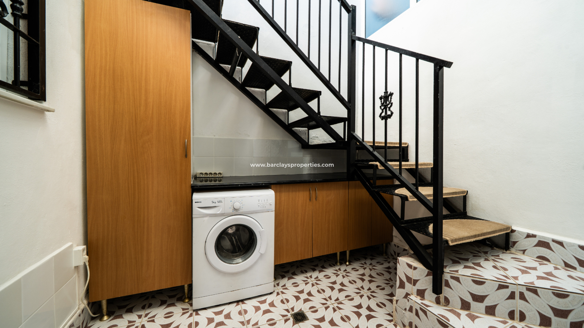 De ingerichte keuken is volledig elektrisch en leidt naar de binnenplaats / bijkeuken. Boven vinden we een serre en een ruim solarium met vrij uitzicht over het landschap richting Guardamar en de zee.