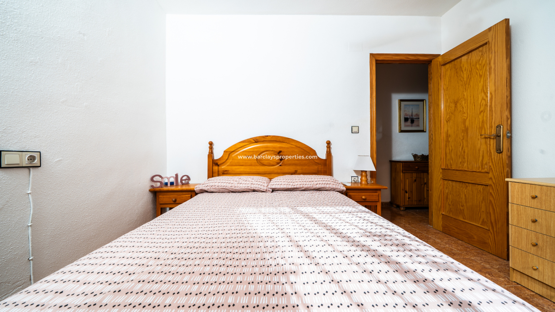 Er zijn in totaal drie slaapkamers. De eerste slaapkamer is een tweepersoonskamer met inbouwkasten, plafondventilator en airconditioning. De tweede slaapkamer is een kamer met twee aparte bedden, eveneens met inbouwkasten, plafondventilator en airconditioning. De derde slaapkamer is nog een tweepersoonskamer, uitgerust met een plafondventilator en airconditioning. De badkamer is voorzien van een bad, toilet, badmeubel en een elektrische handdoekradiator.