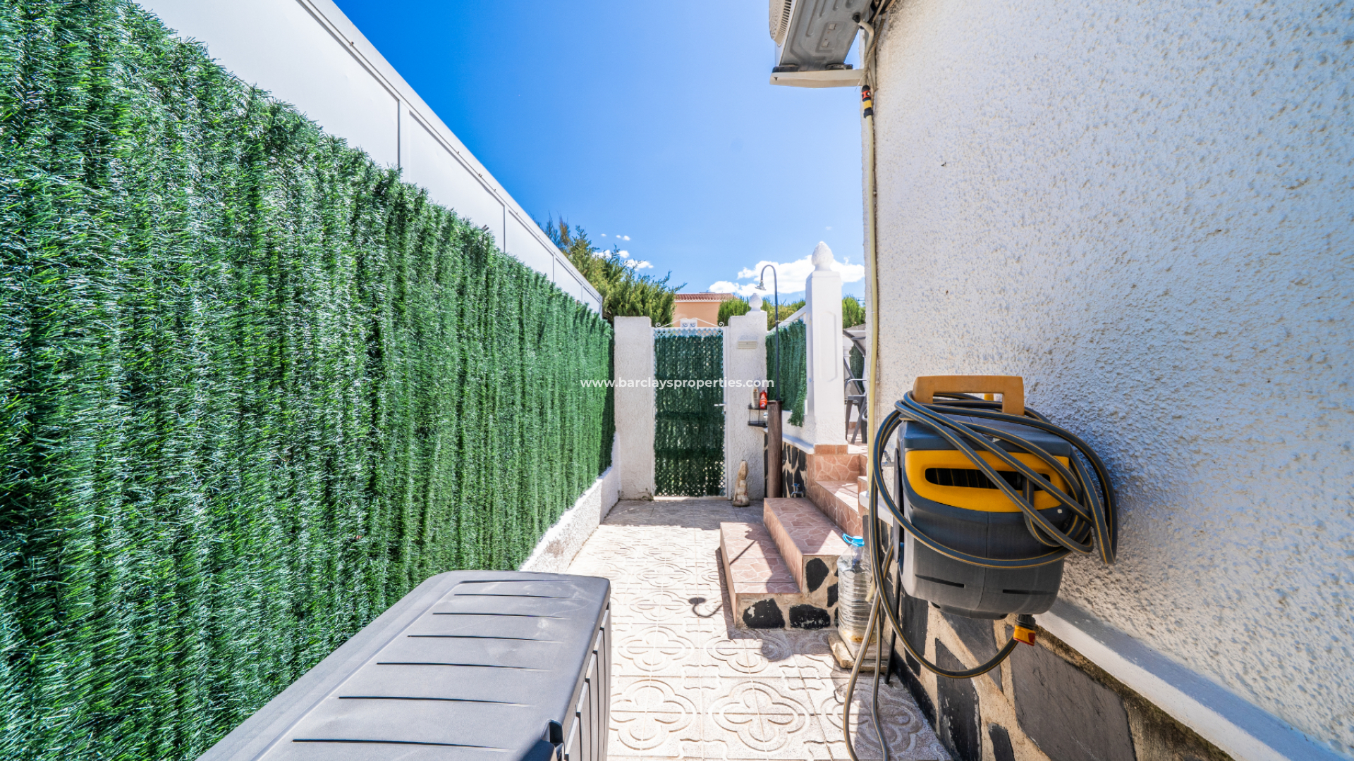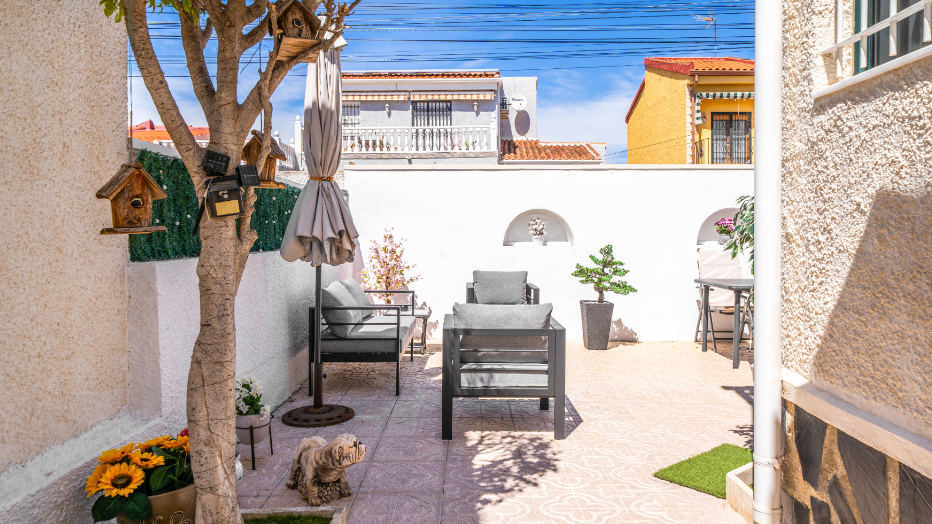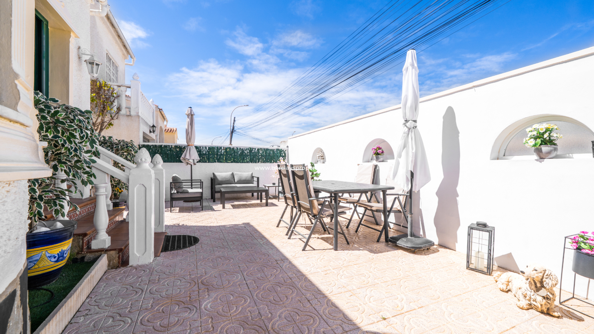 Deze charmante vrijstaande woning van het model "Lola" is gelegen in de gewilde Urb. La Marina. Deze woning beschikt over een volledig betegelde voortuin en een terras op het zuiden, uitgerust met zonneschermen voor uw comfort. Deze woning bevindt zich ➡️ op slechts 5-10 minuten wandelen van het populaire "Consum Square"-gebied, met supermarkten en een scala aan bars en restaurants. Verderop in de straat vindt u "The Grey Area" met nog meer eetgelegenheden en bars; al met al een uitstekende keuze voor iedereen.