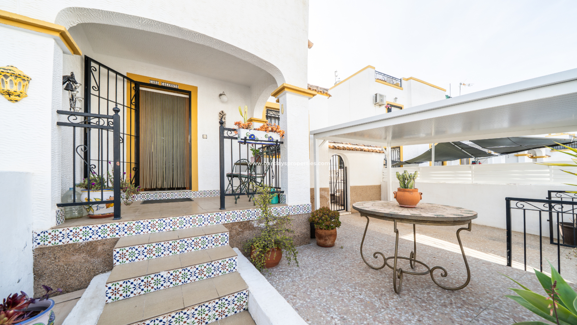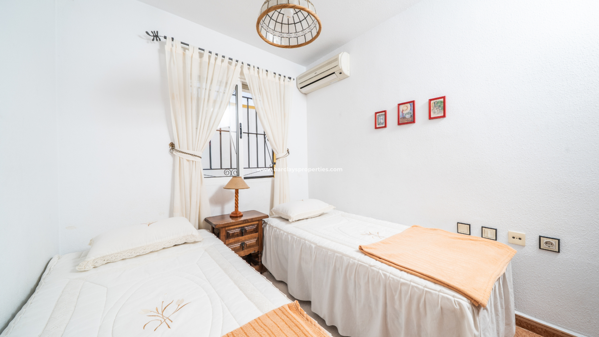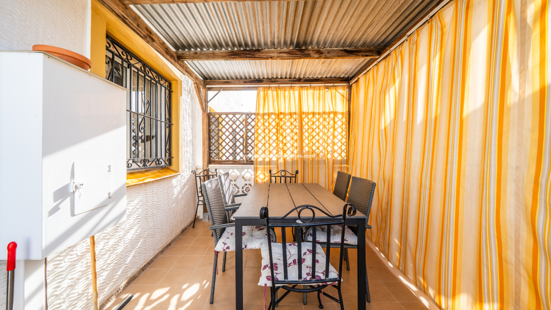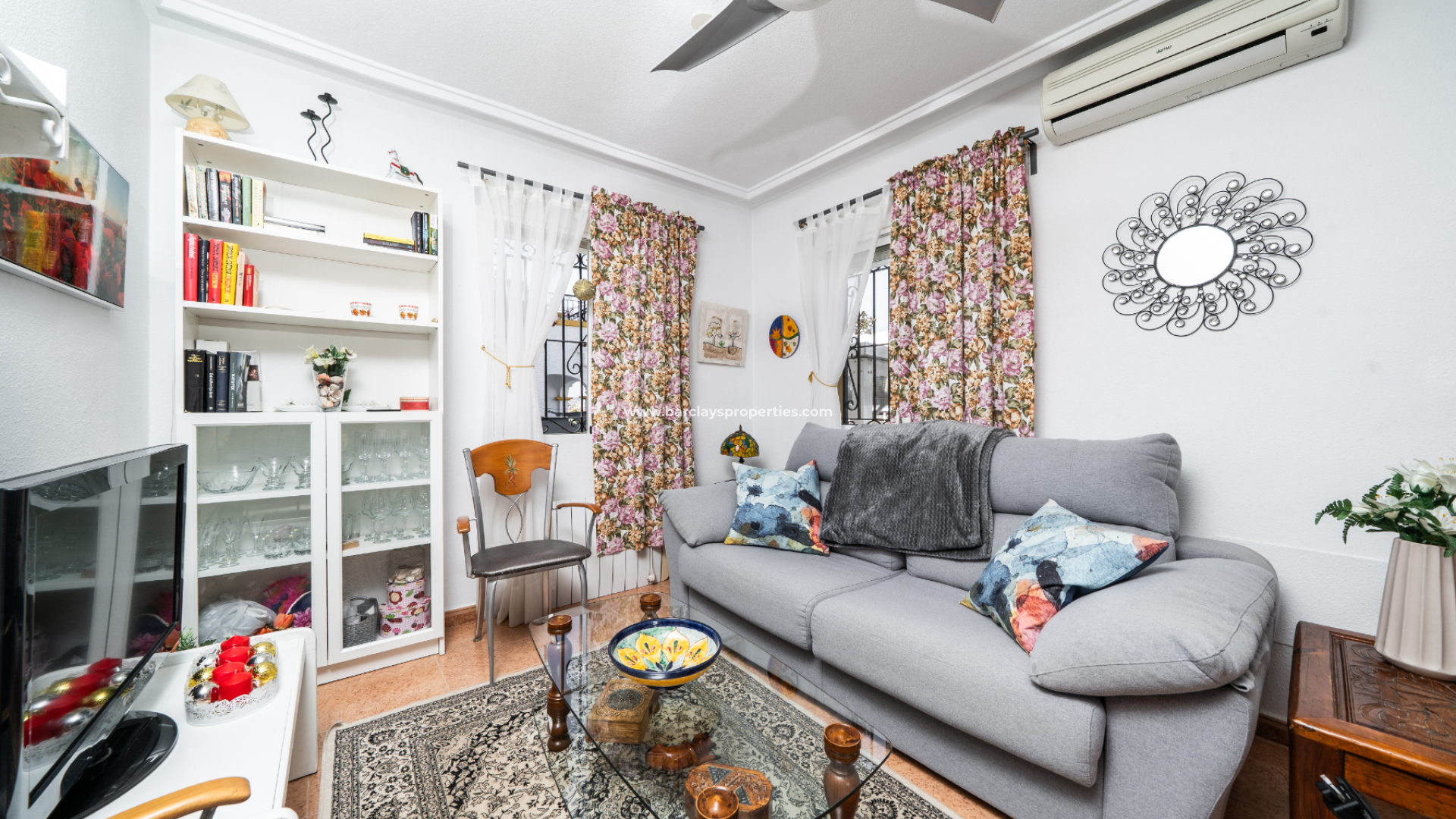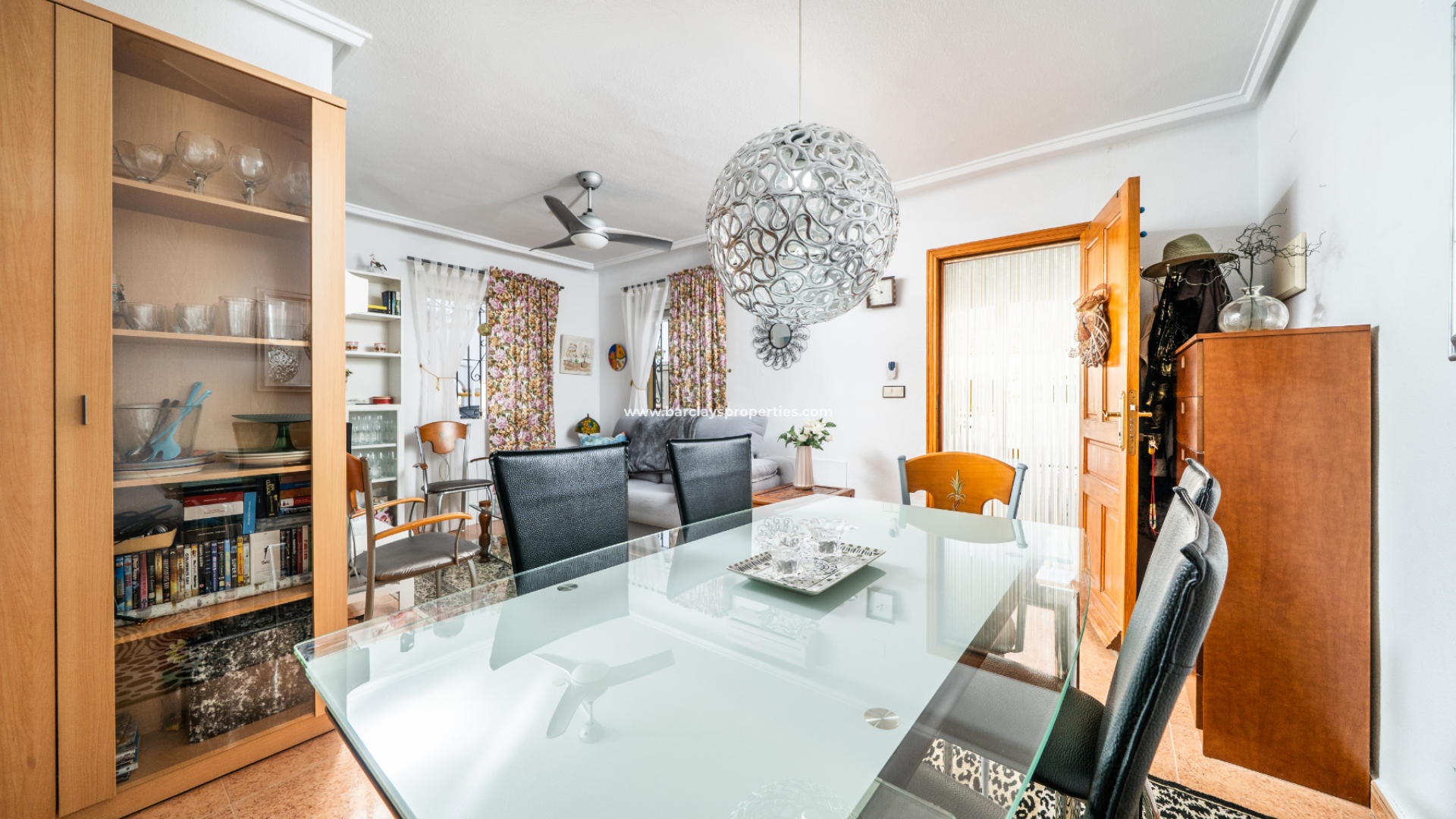 Binnen beschikt de ruime woonkamer over airconditioning, een plafondventilator und een aparte eethoek, wat een comfortabele und praktische ruimte creëert voor het dagelijks leven. De aparte keuken is volledig uitgerust und biedt directe toegang tot het achterterras.