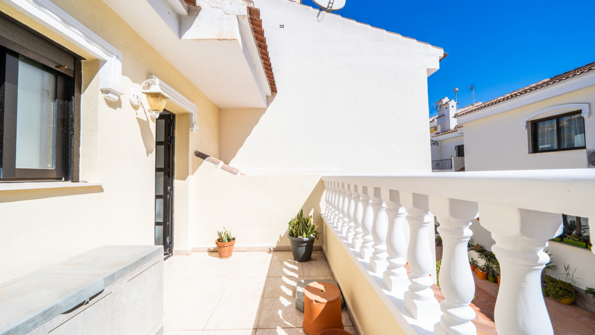 Een extra balkon aan de andere zijde van de woning kijkt uit over de gemeenschappelijke voetgangersstraat, wat bijdraagt aan de aantrekkingskracht van de woning. Dit huis combineert een groot potentieel met een uniek uitzicht, waardoor het een ideale optie is voor wie in een gevestigde wijk van Rojales wil wonen.