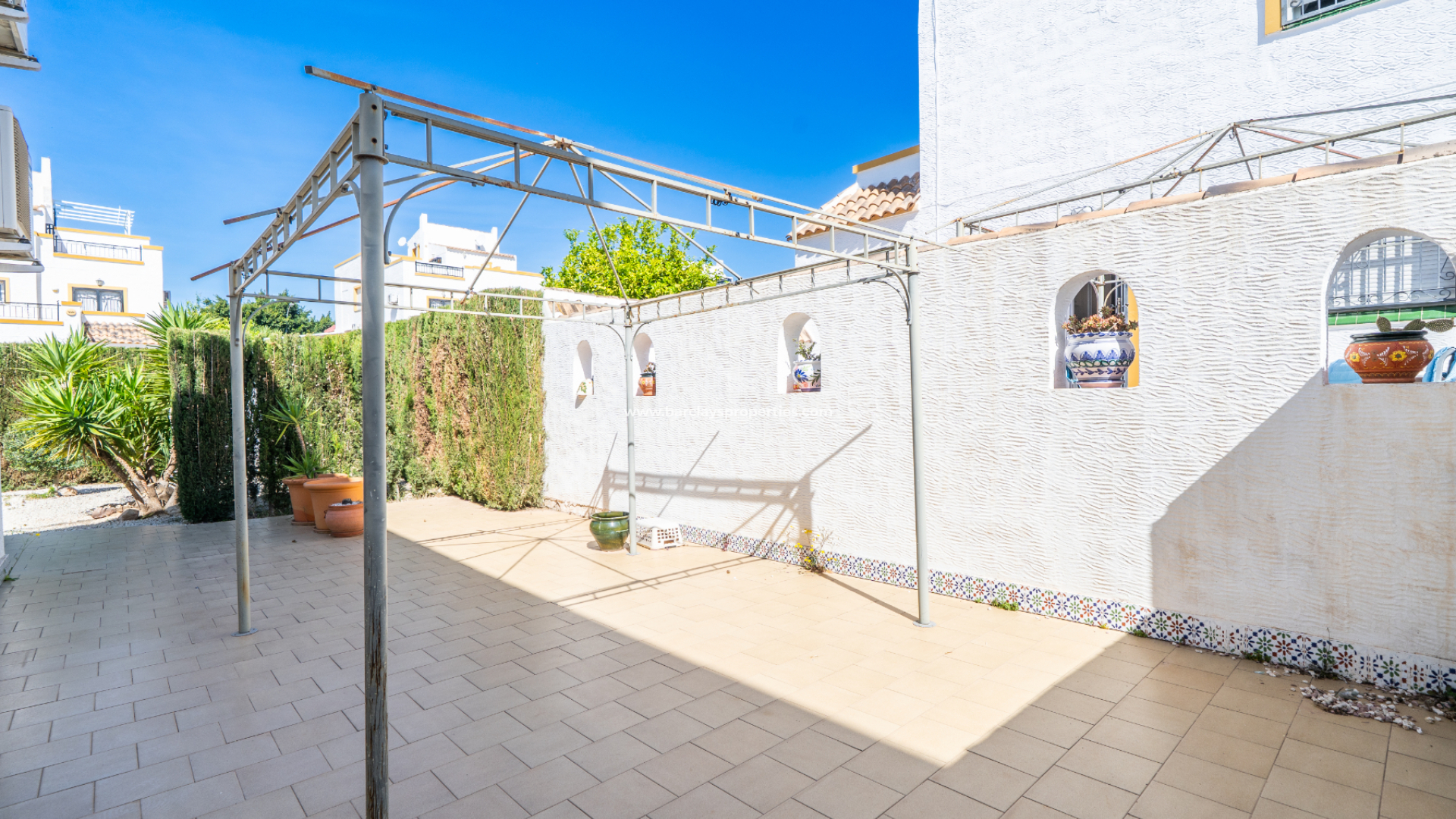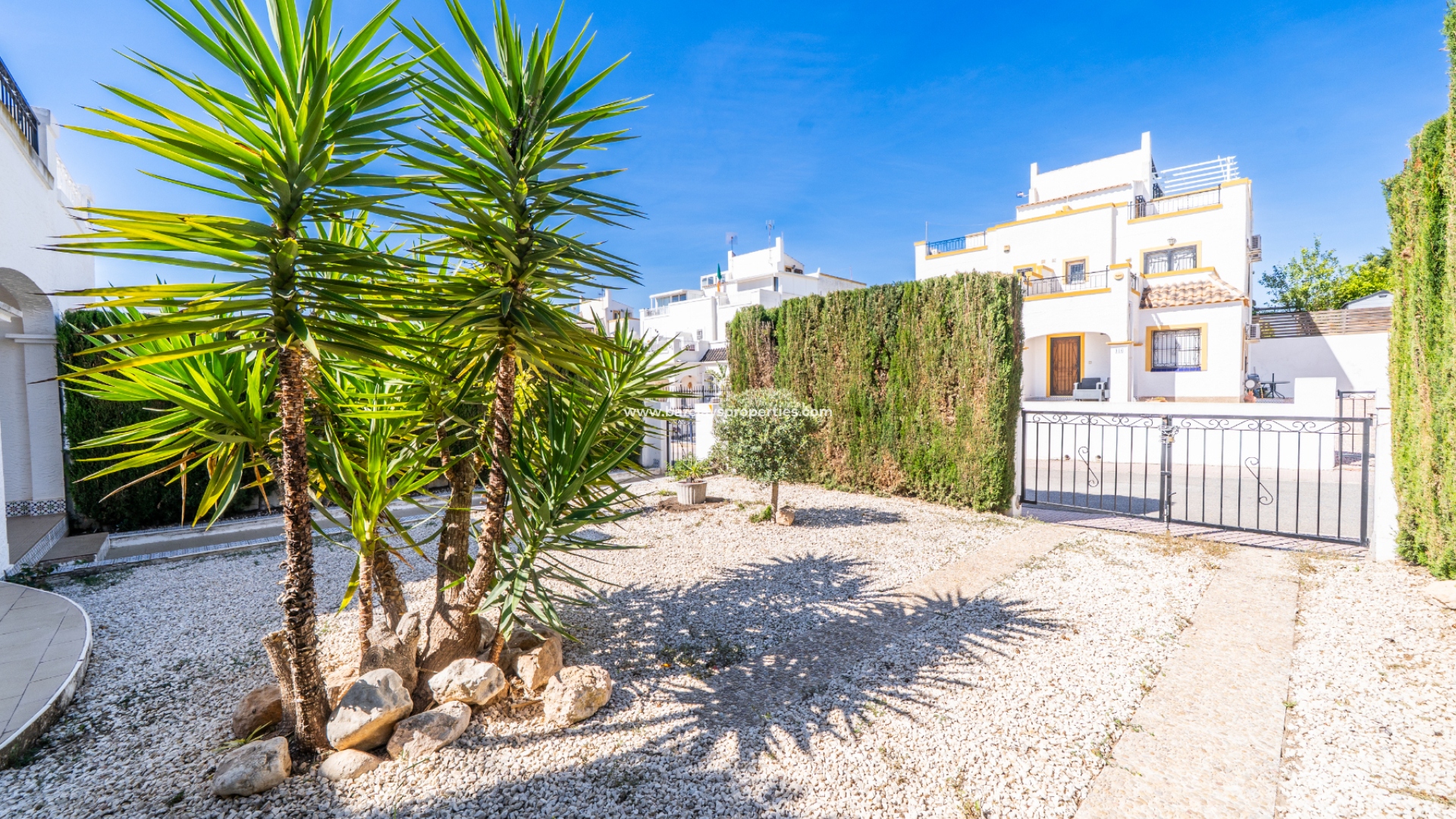 Deze woning in quad-stijl, model "Isabel", is gelegen in een ➡️ goed onderhouden gemeenschap met toegang tot een gemeenschappelijk zwembad en tuinen. De locatie is gunstig, op slechts 10 minuten lopen van twee nabijgelegen commerciële zones.