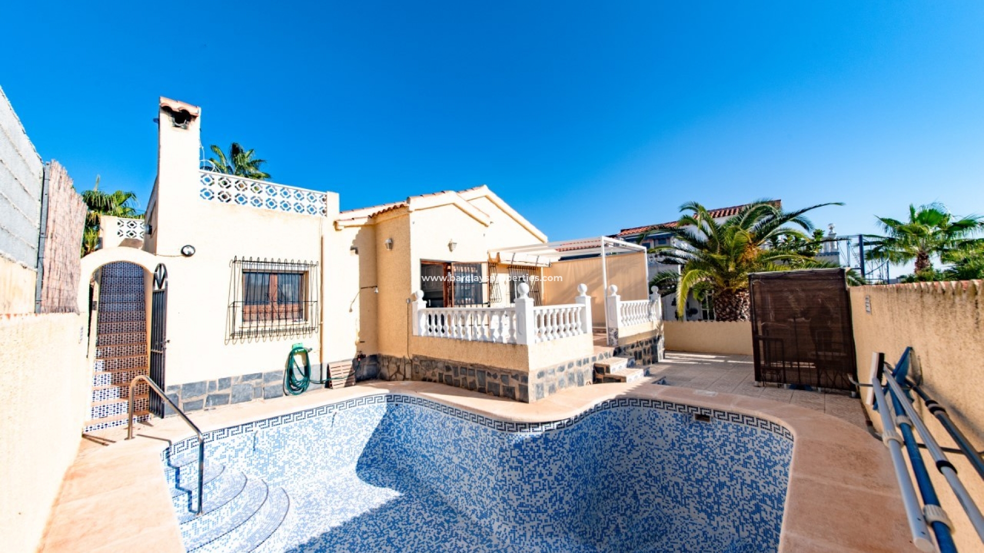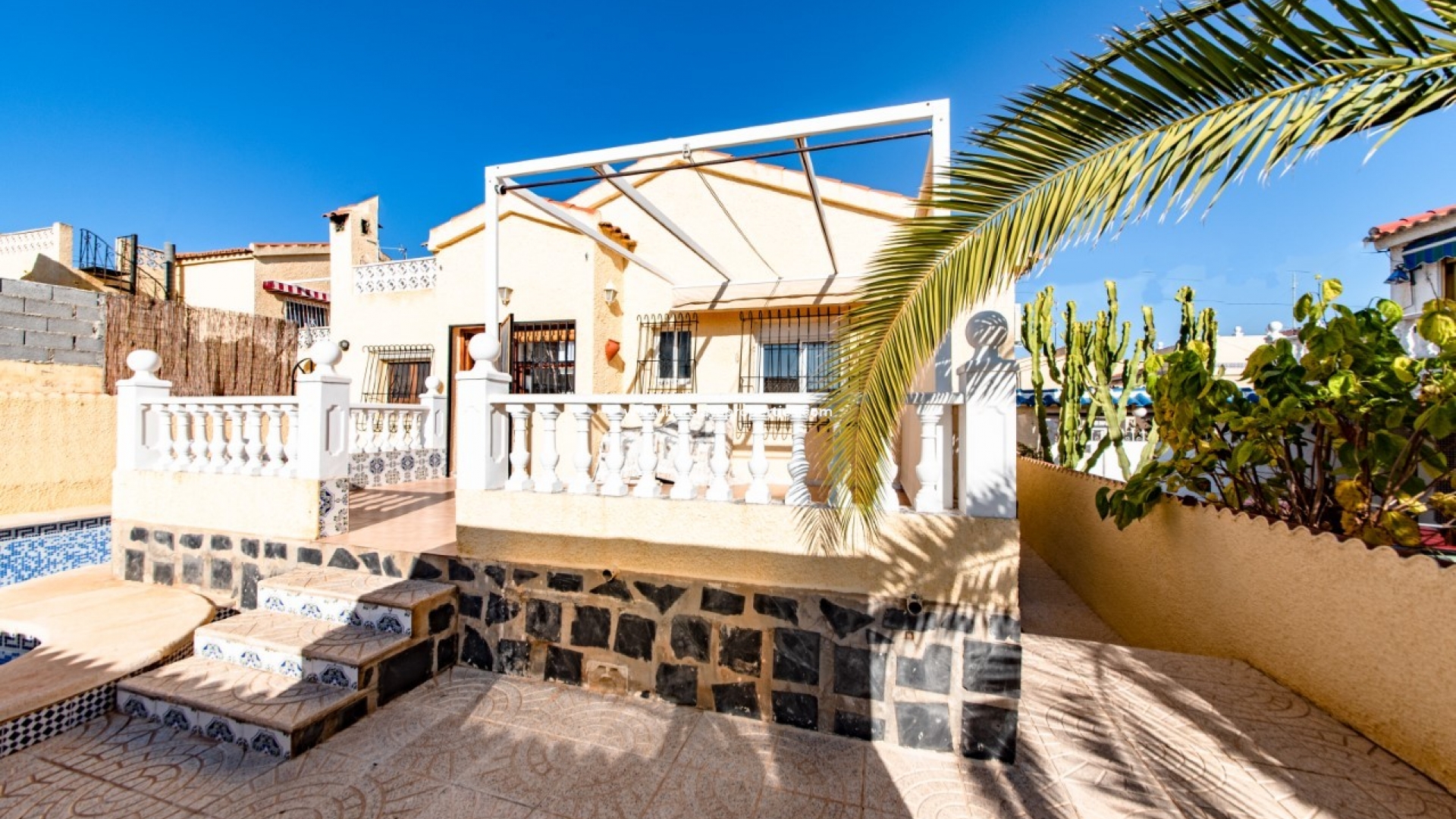 UITSLUITEND presenteert deze indrukwekkende vrijstaande woning, een model "Rosa" die te koop is in een rustige buurt van de urbanisatie La Marina. Gelegen op een groot hoekperceel in een rustige doodlopende straat, biedt deze prachtige woning op het zuiden off-road parking aan de voorkant, een privézwembad van 5 x 5 en een goed onderhouden groene zone aan de achterkant. Bovendien, met slechts 10 minuten lopen naar het dichtstbijzijnde commerciële gebied, bevindt deze woning zich op een toplocatie met een prachtig uitzicht op de bergen vanaf het zonneterras op het dak.