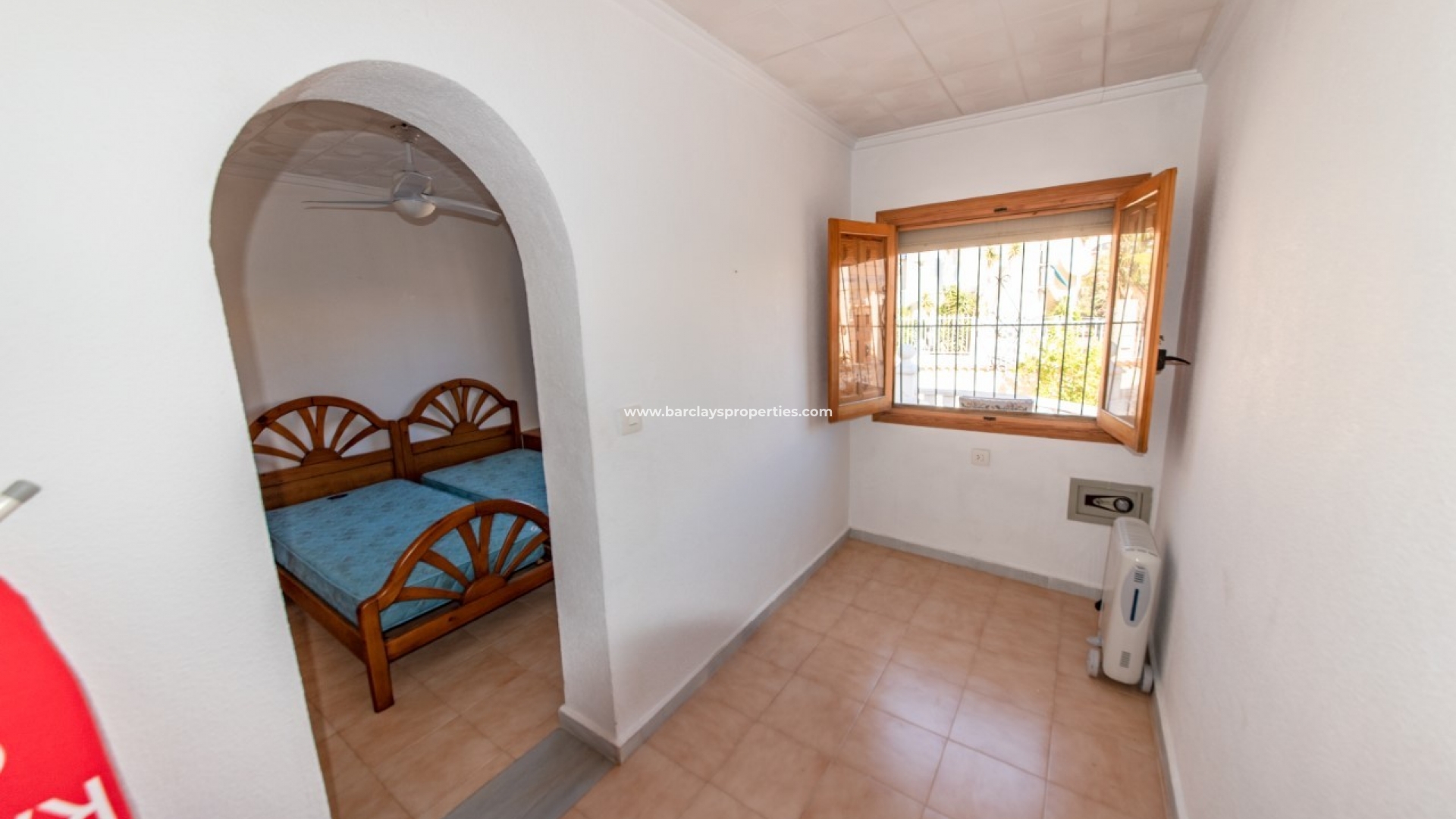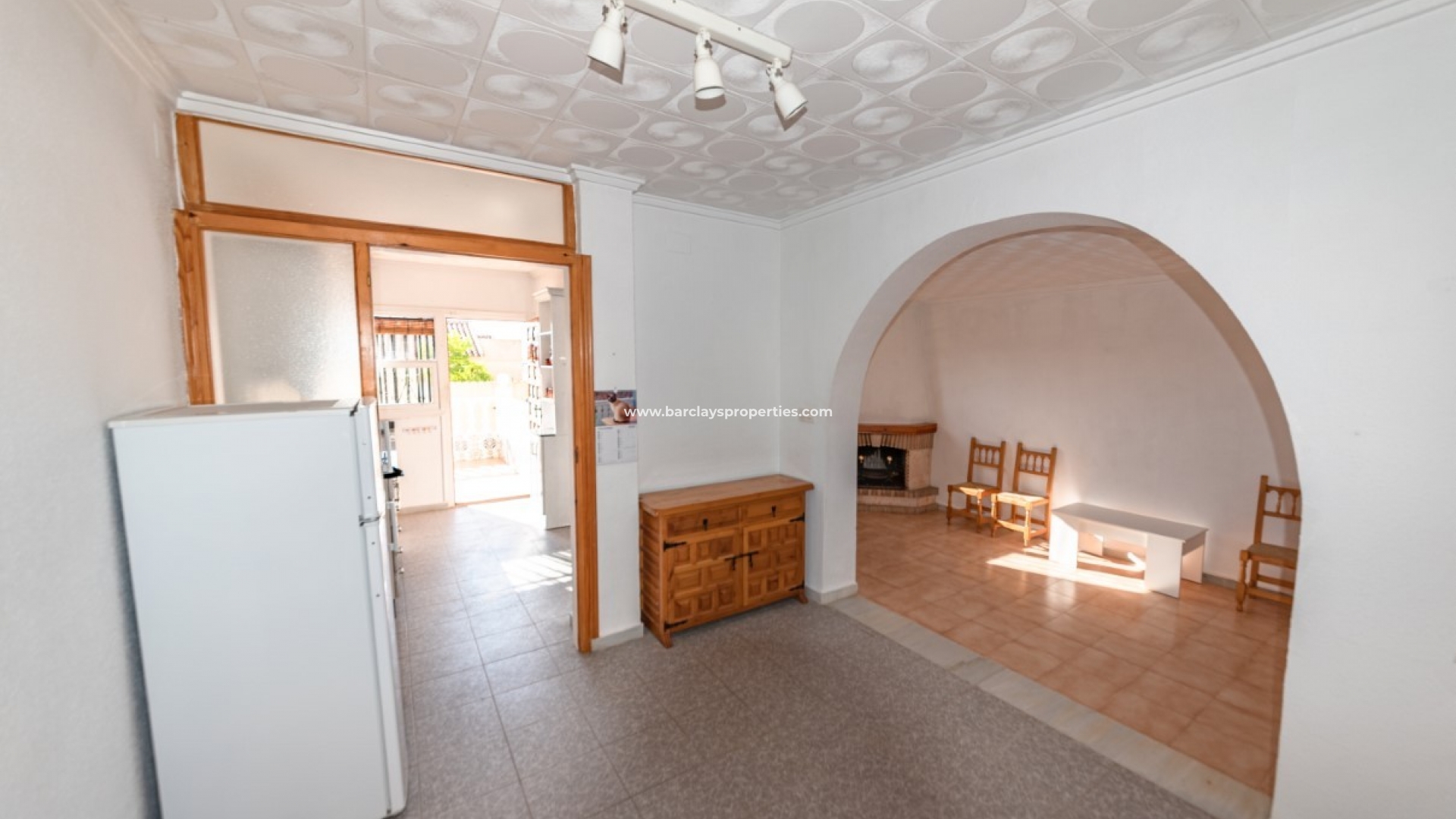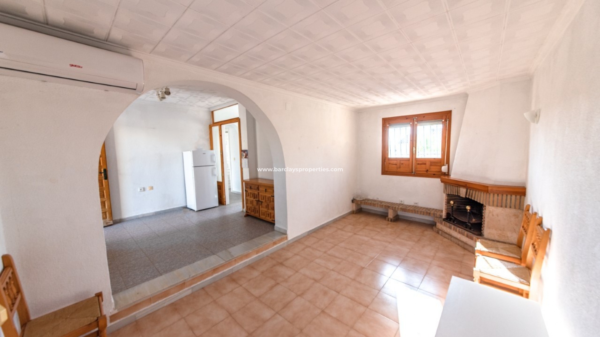 Intern biedt dit gerenoveerde pand een ontvangstruimte / eetkamer die leidt naar de lichte en ruime woonkamer met open haard, een aparte keuken met toegang tot het zonneterras aan de achterkant en de achtertuin, twee slaapkamers (waarvan een met een walk-in in kleerkast / studeerkamer) en een ingerichte badkamer met douche. Voor de warmere maanden van het jaar zijn airconditioning en plafondventilatoren aangebracht.
