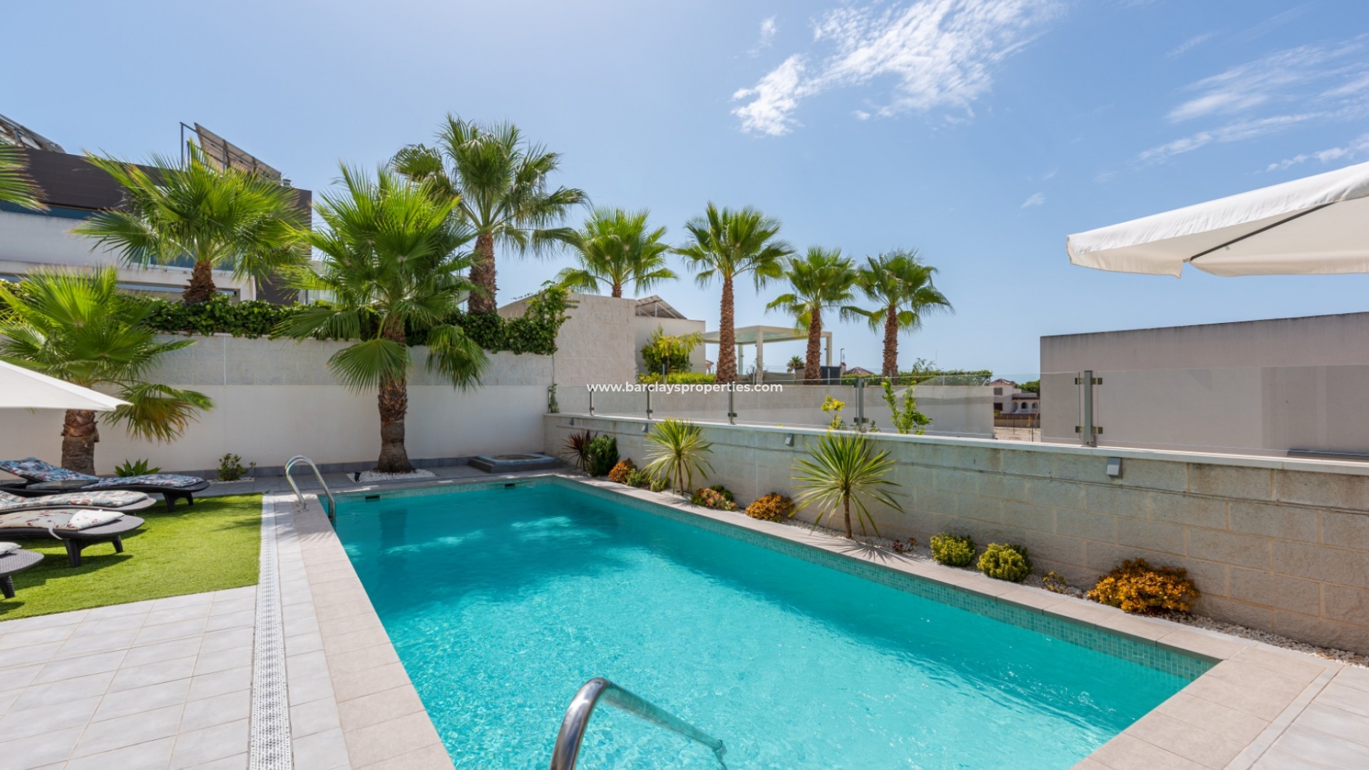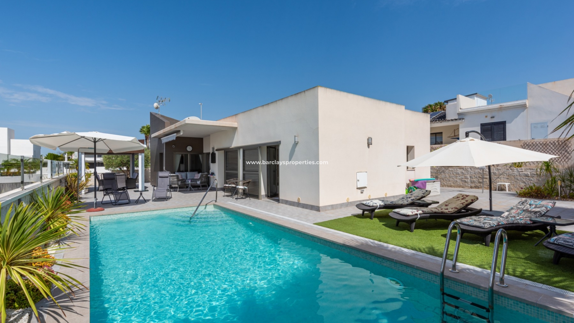 Maak kennis met deze prachtige vrijstaande villa die is gelegen in een rustige omgeving van de immer populaire urbanisatie La Marina, San Fulgencio in de provincie Alicante. Het pand ligt op korte loopafstand van alle voorzieningen, waaronder die van supermarkten, winkels, bars, restaurants, apotheek, dokterspraktijk, dierenartsen enz.