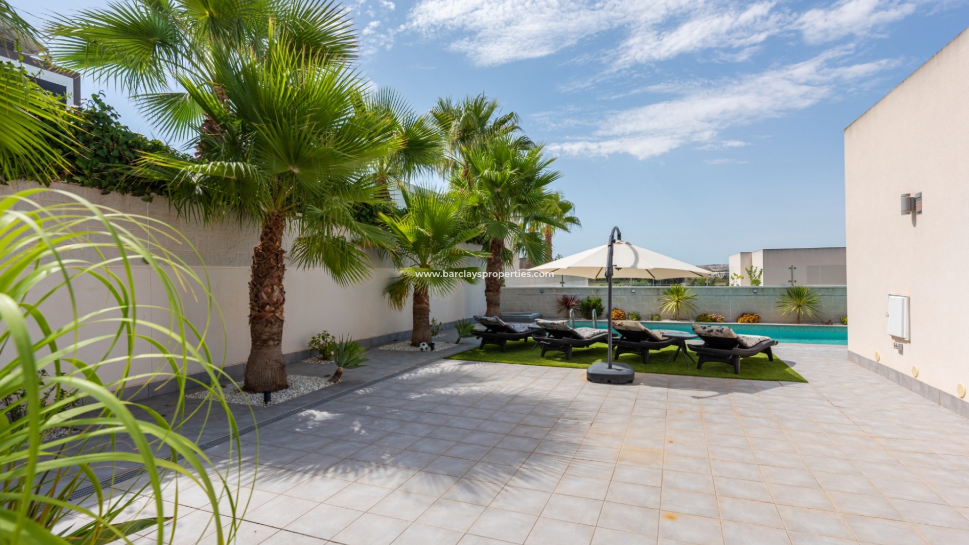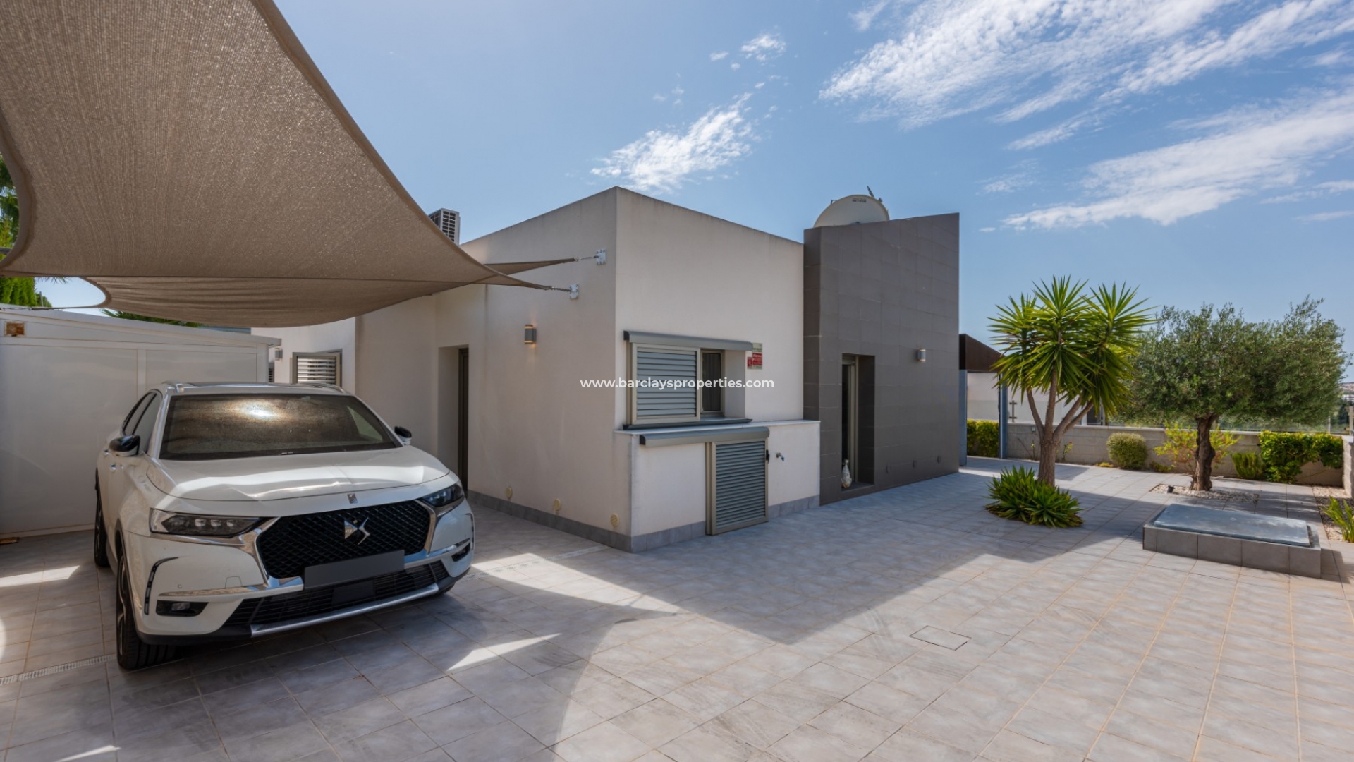 De aangelegde tuin is volledig geplaveid voor weinig onderhoud en biedt off-road parking met carport, een prachtig privé zwembad met zonneweide met kunstgras en diverse zitjes inclusief het overdekte terras en tuinhuisje om gewoon te relaxen of te dineren "Al fresco" in het prachtige Spaanse klimaat hier aan de Costa Blanca.